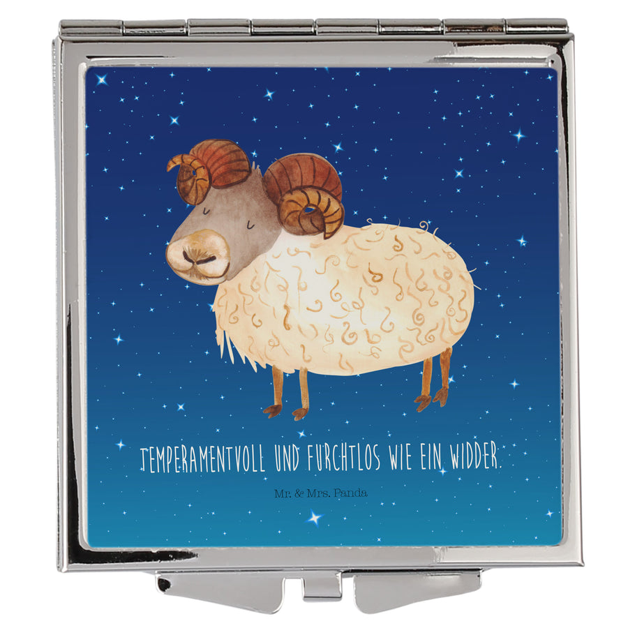 Handtaschenspiegel quadratisch Sternzeichen Widder - mit Spruch - Sternenhimmel Blau