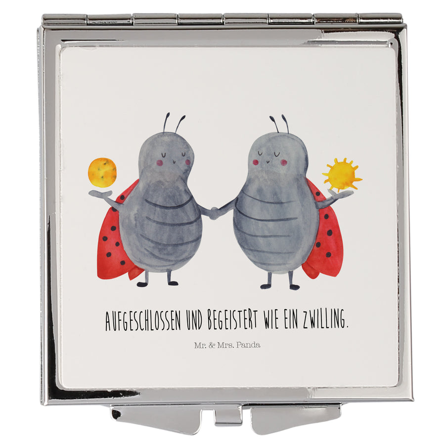 Handtaschenspiegel quadratisch Sternzeichen Zwilling - mit Spruch - Weiß