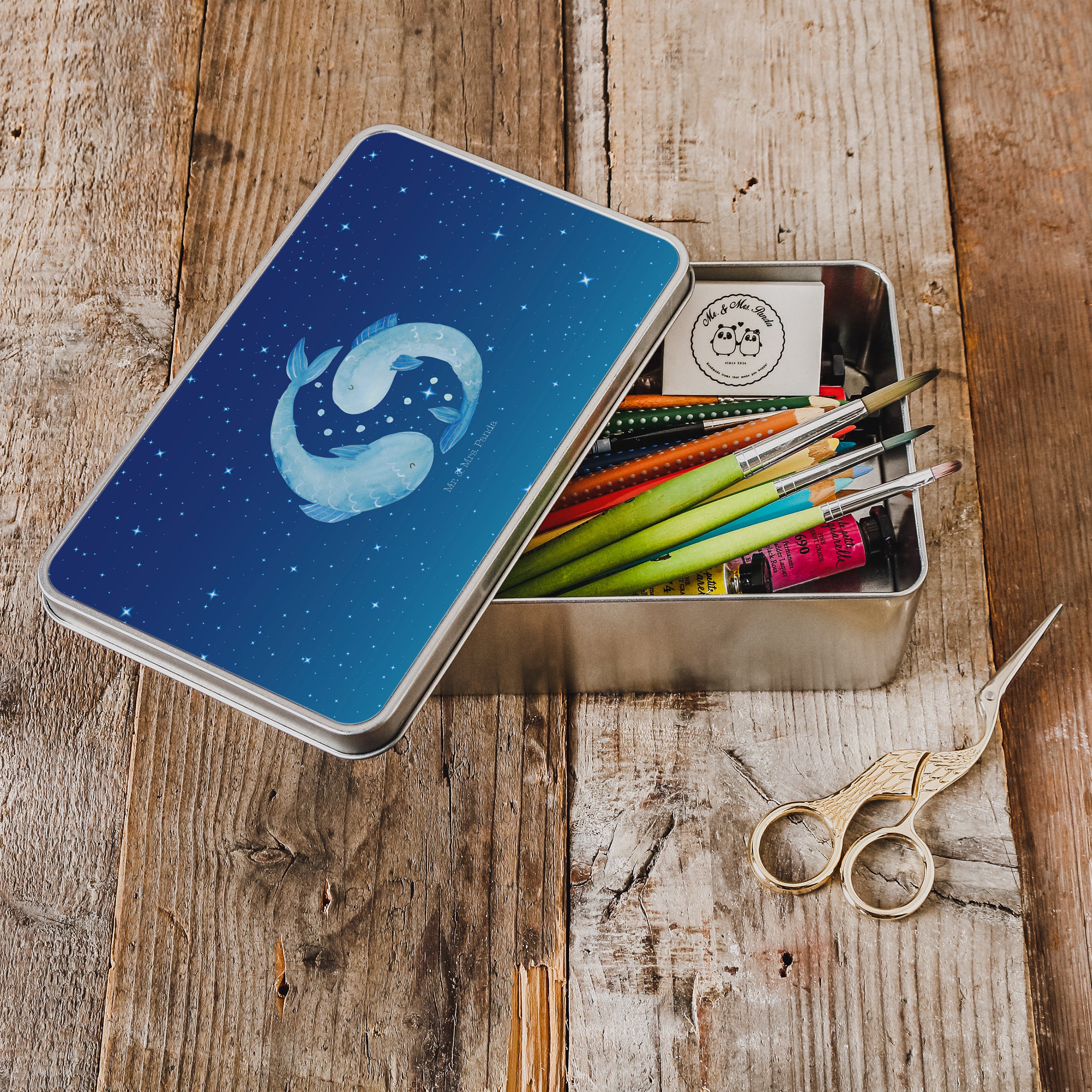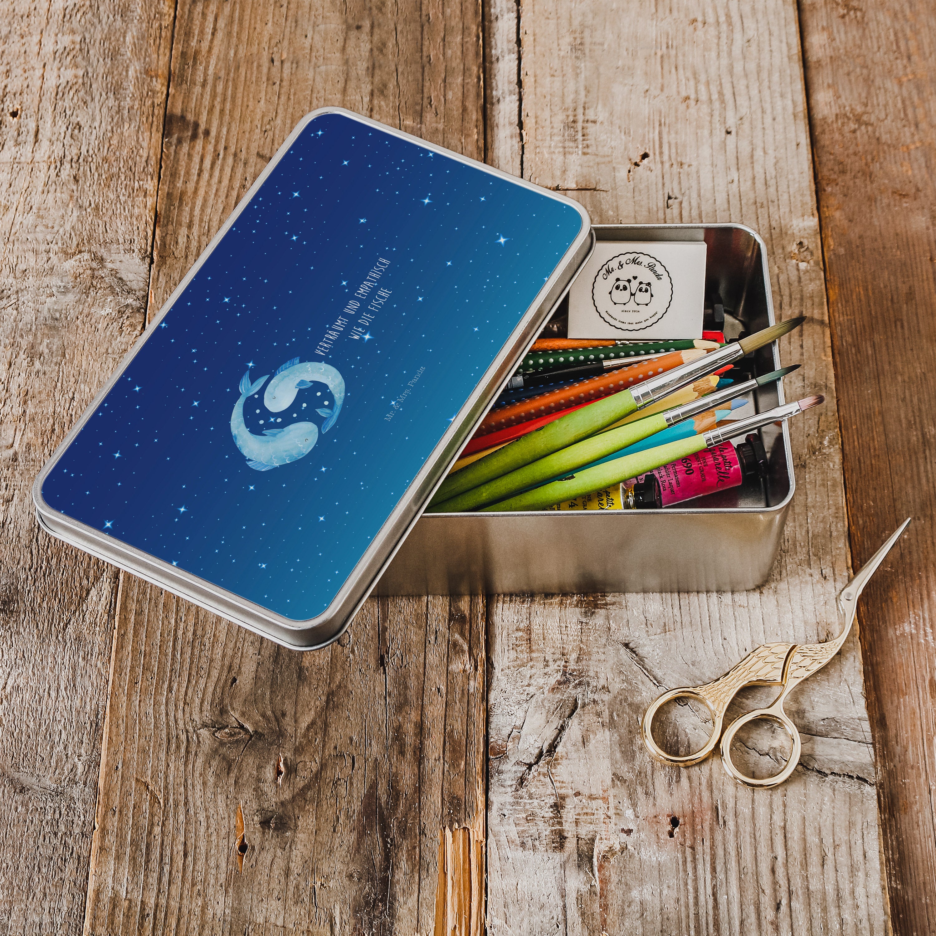 Metalldose rechteckig Sternzeichen Fische - mit Spruch - Sternenhimmel Blau