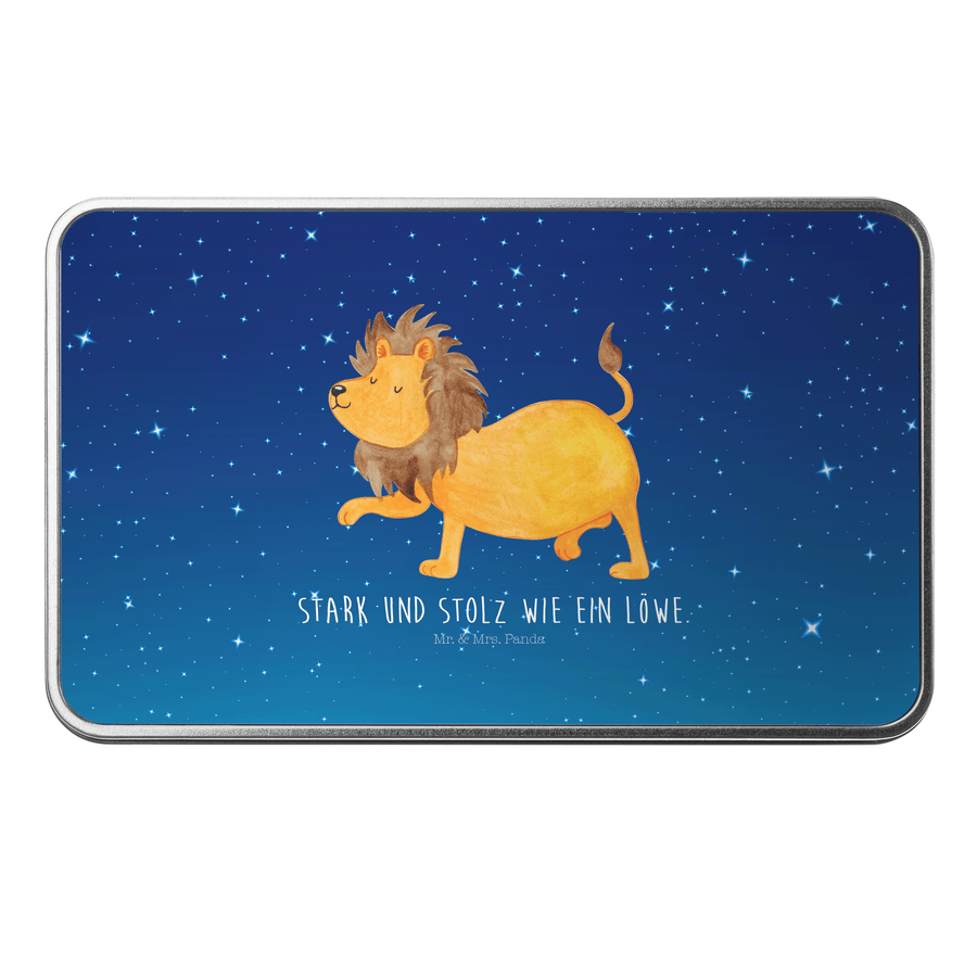 Metalldose rechteckig Sternzeichen Löwe - mit Spruch - Sternenhimmel Blau