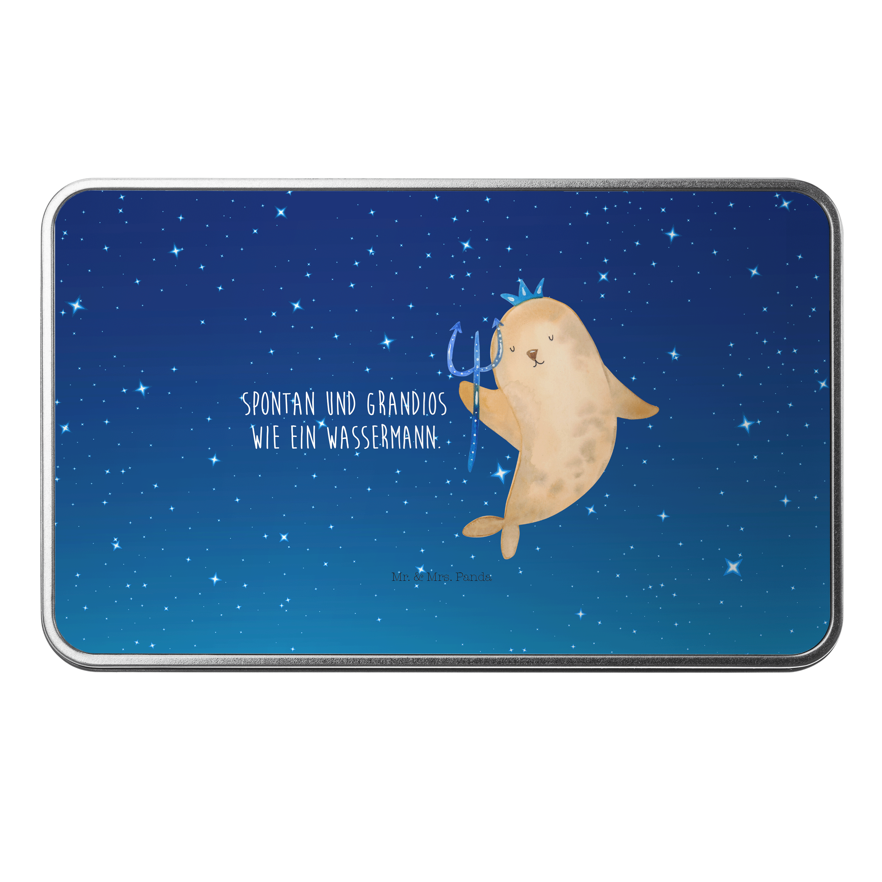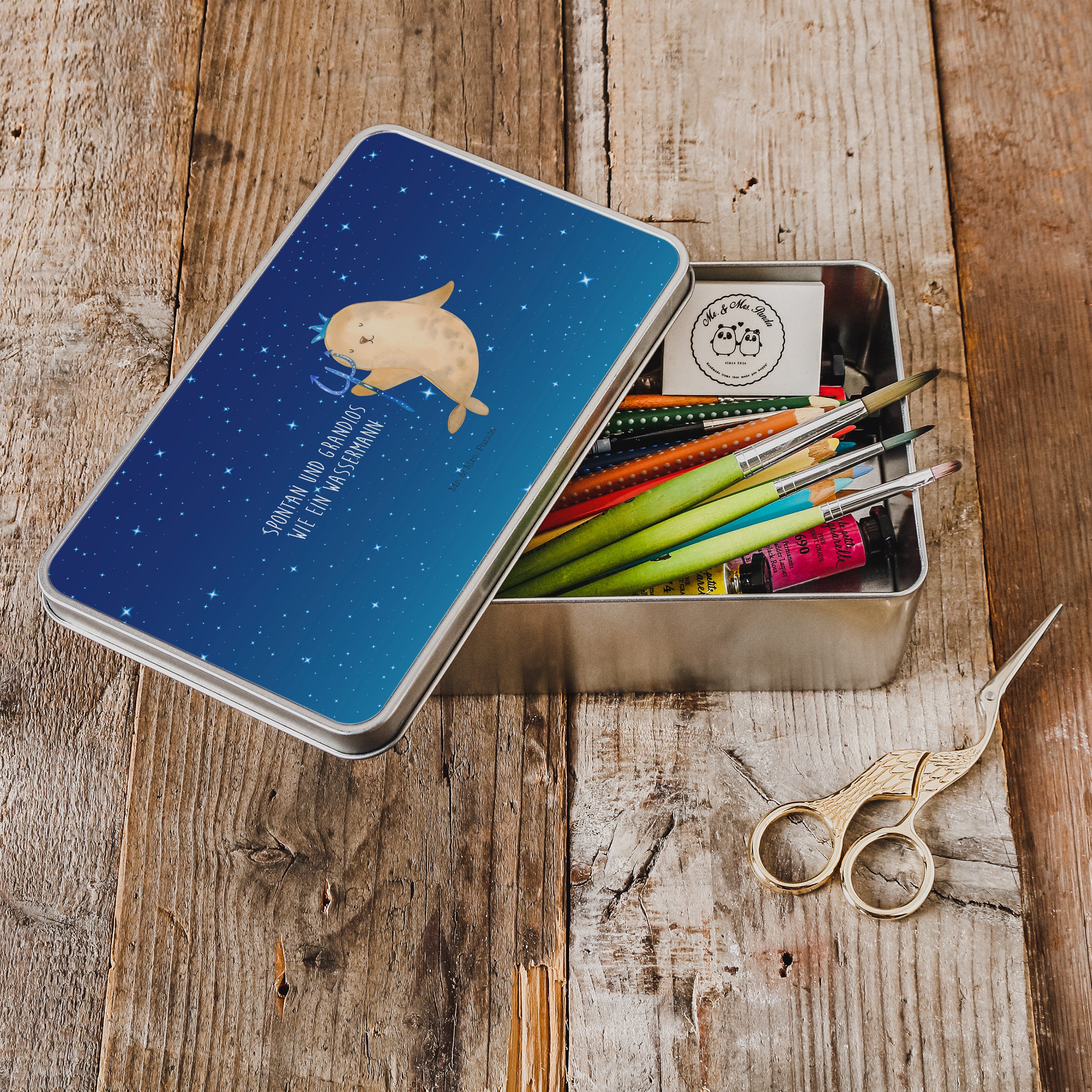 Metalldose rechteckig Sternzeichen Wassermann - mit Spruch - Sternenhimmel Blau