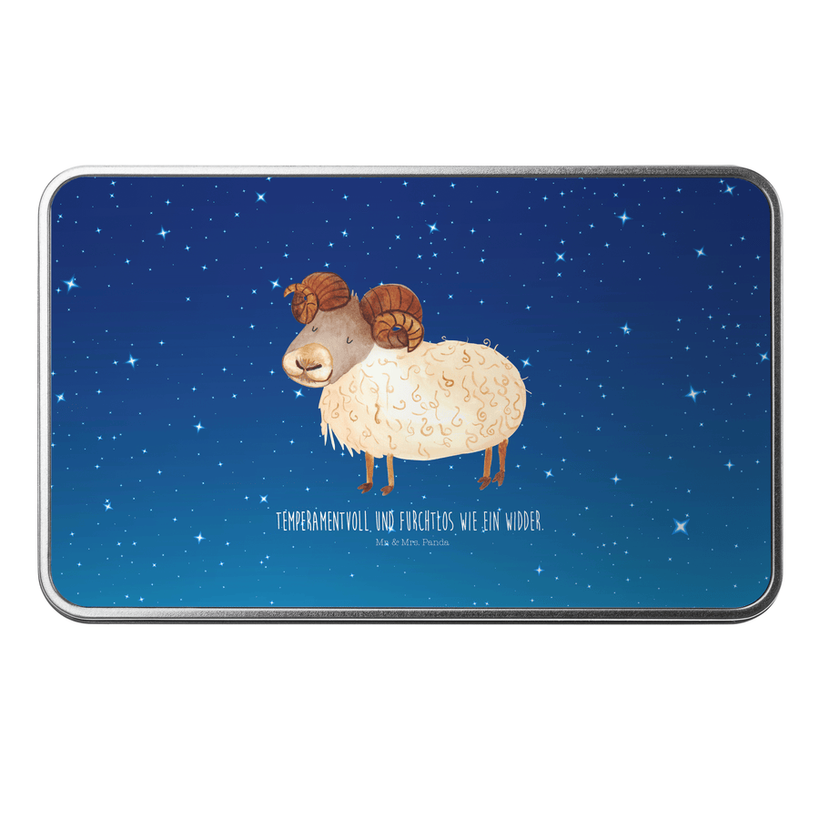 Metalldose rechteckig Sternzeichen Widder - mit Spruch - Sternenhimmel Blau
