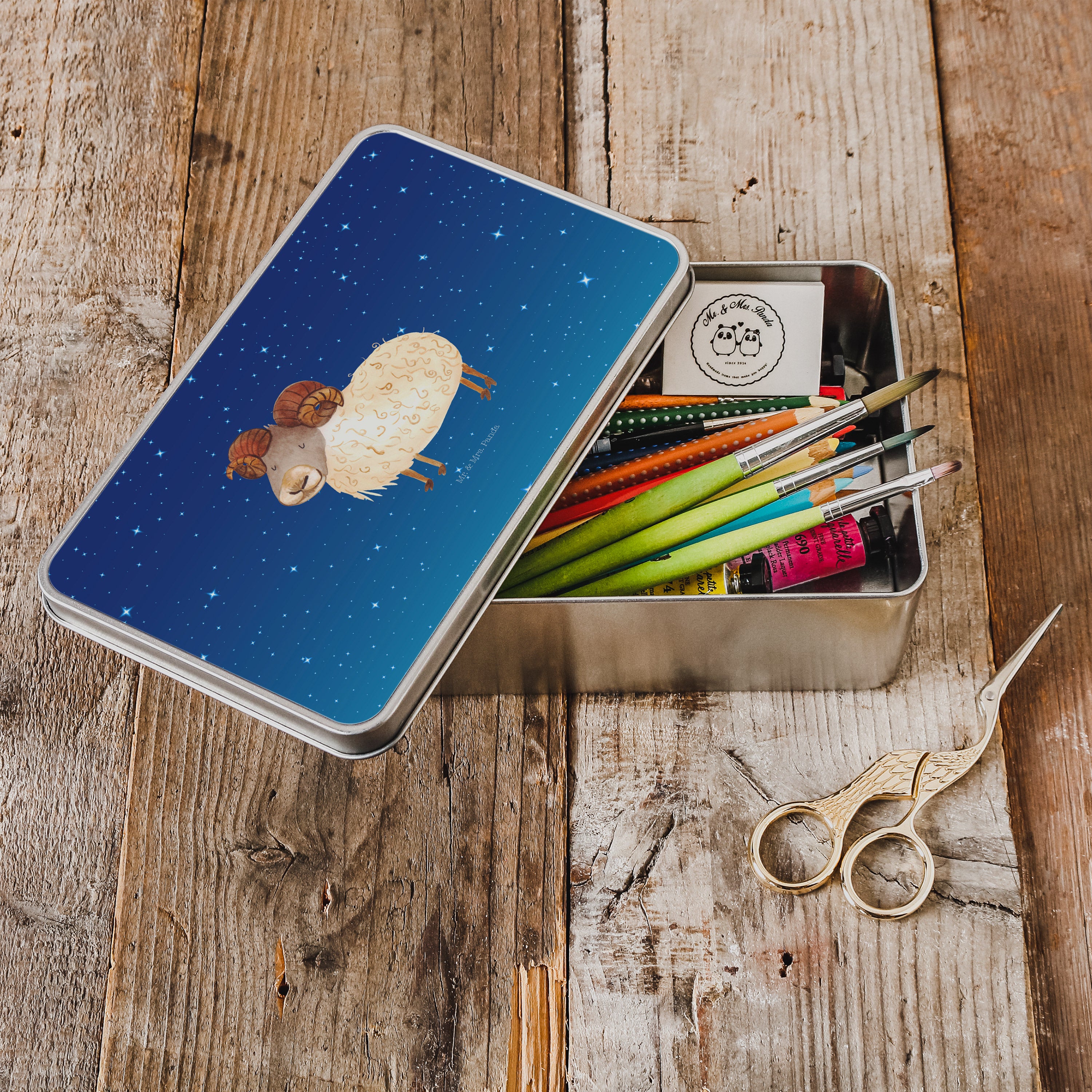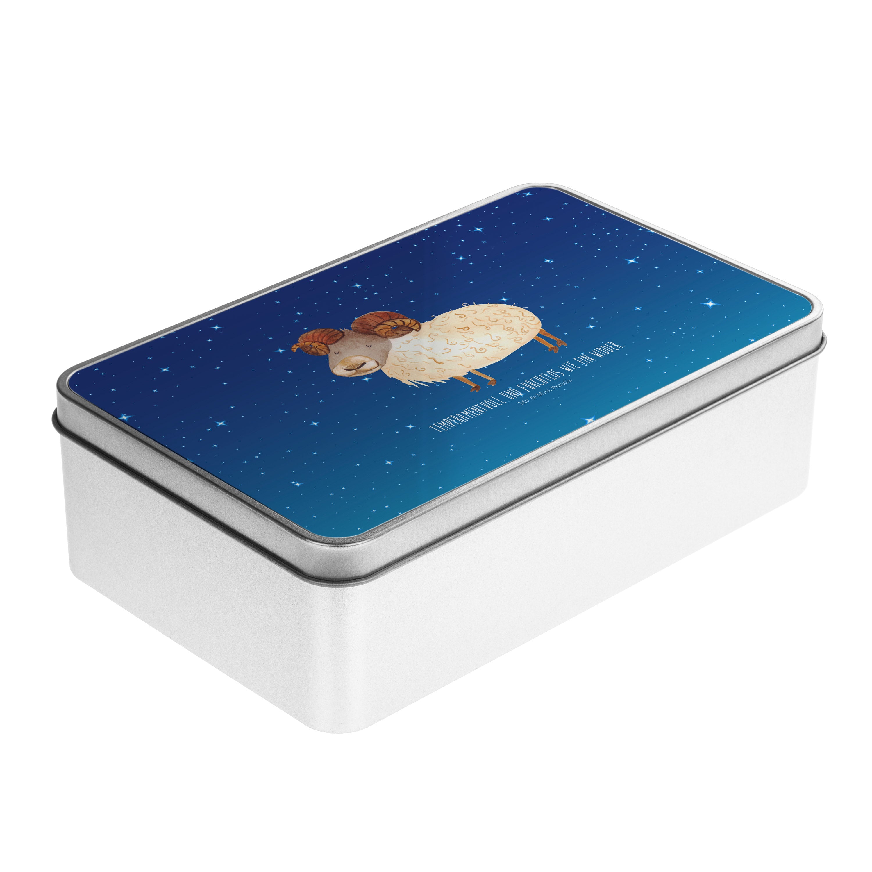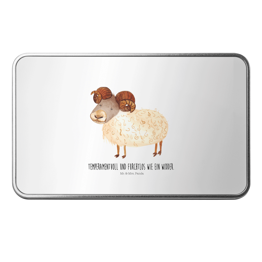 Metalldose rechteckig Sternzeichen Widder - mit Spruch - Weiß