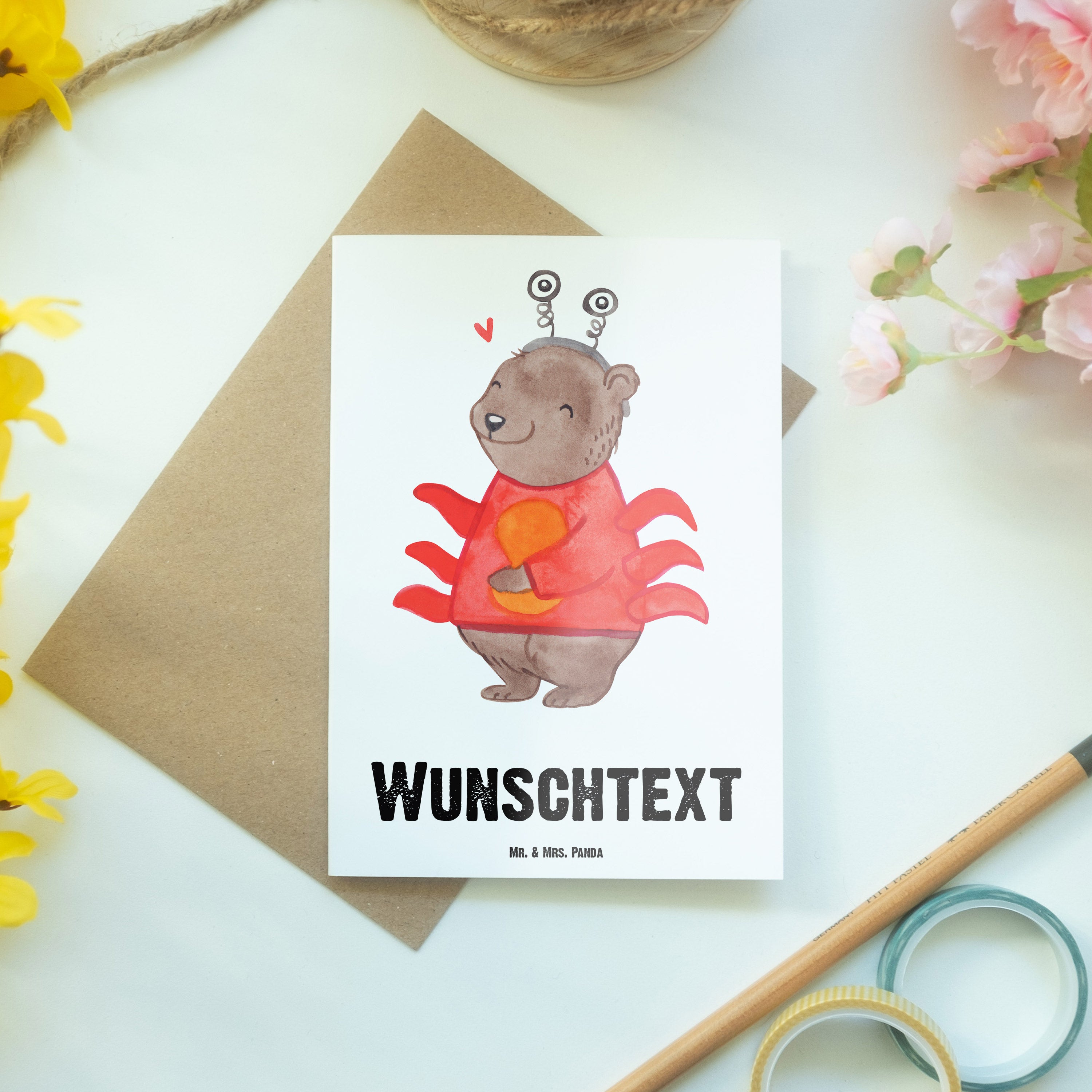 Stell Dir vor, Du öffnest eine Schatztruhe und findest dieses zauberhafte Motiv, das die Astrologie auf einmalige Weise darstellt. Ein niedlicher Bär in einem Kostüm des Tierkreiszeichens Krebs wirft einen frischen, verspielten Blick auf die Sterne. Dieses kunstvolle Stück aus der Mr. & Mrs. Panda Kollektion Sternzeichen könnte das perfekte Geschenk für einen Liebsten sein, eine rührende Geste, die Liebe, Respekt und Wertschätzung ausdrückt.