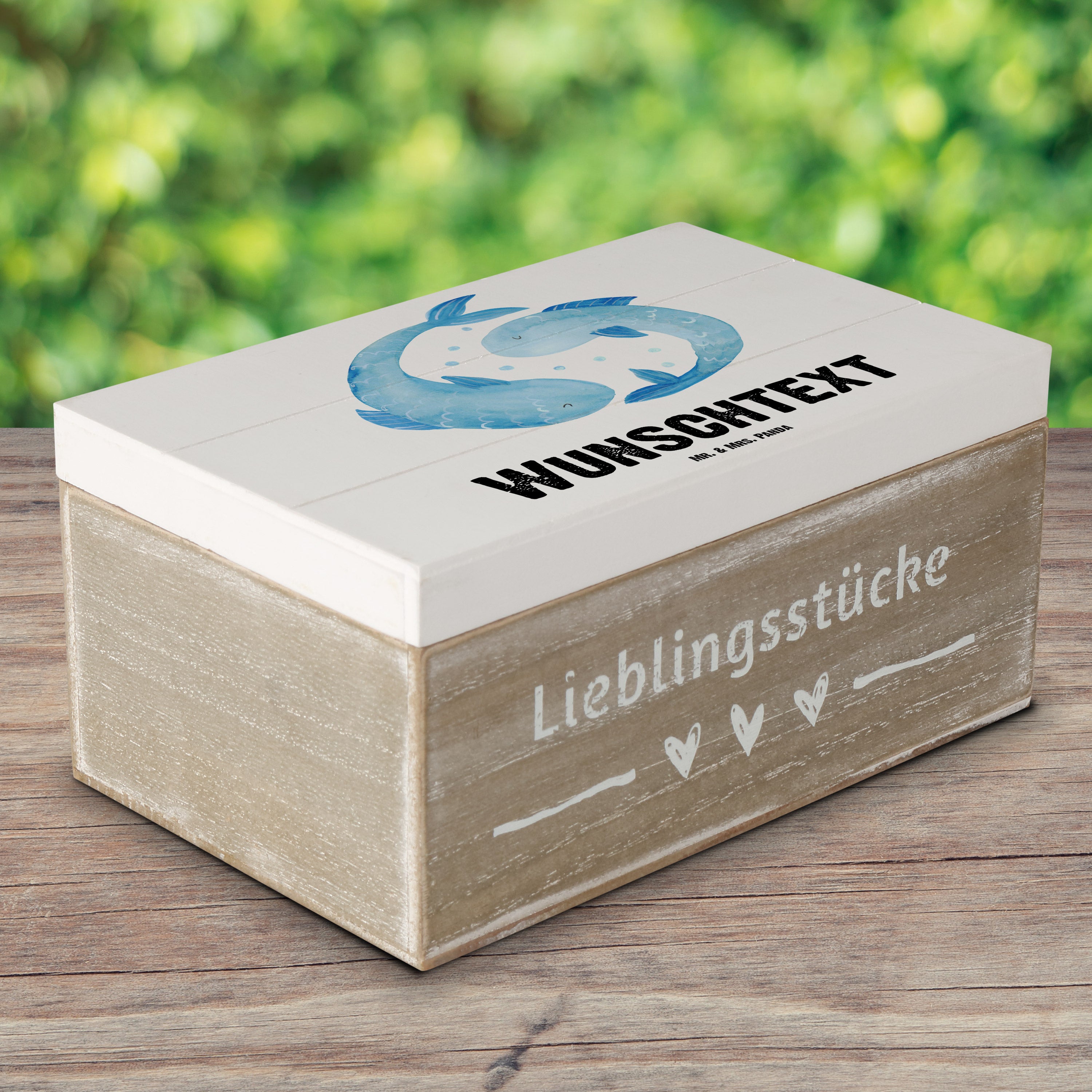 Personalisierte Holzkiste Sternzeichen Fische - 19 x 12 cm