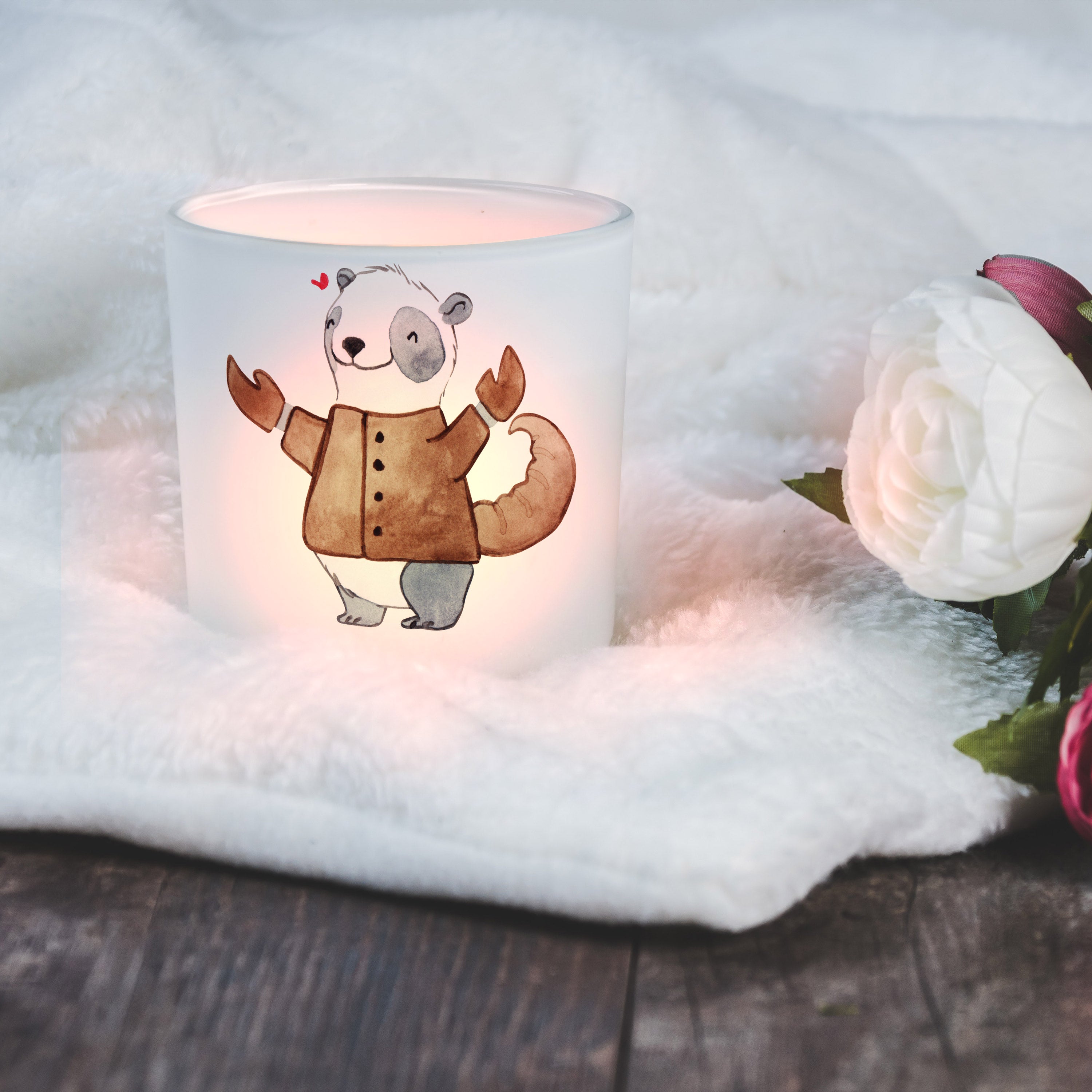 Dieses einzigartige personalisierte Windlicht mit Namen oder Wunschtext von Mr. & Mrs. Panda ist etwas ganz Besonderes - es schützt deinen Tisch vor Hitzeschäden und Wachs und schafft ein wunderschönes stimmungsvolles Ambiente. Der Teelichthalter besteht aus wunderschönem satiniertem Glas, welches liebevoll von uns bedruckt wird. Die Kerze ist nicht im Lieferumfang enthalten, aber es kann ein handelsübliches Teelicht verwendet werden. So kannst du dein Zuhause dekorieren und für eine wohlig warme Stimmung im gesamten Raum sorgen. Außerdem kannst du es draußen nutzen, und somit dafür sorgen, dass der Wind deine Kerze nicht auspustet.