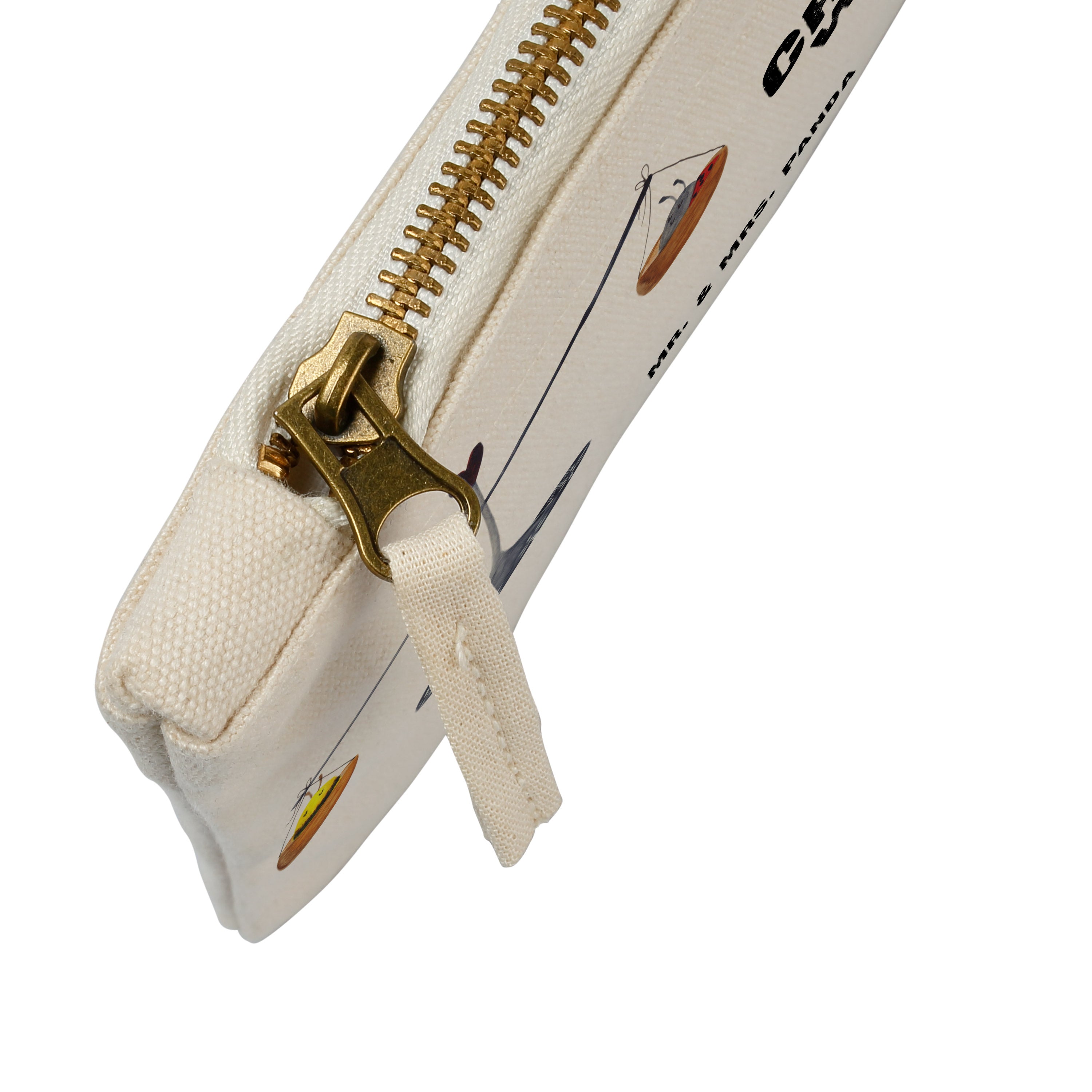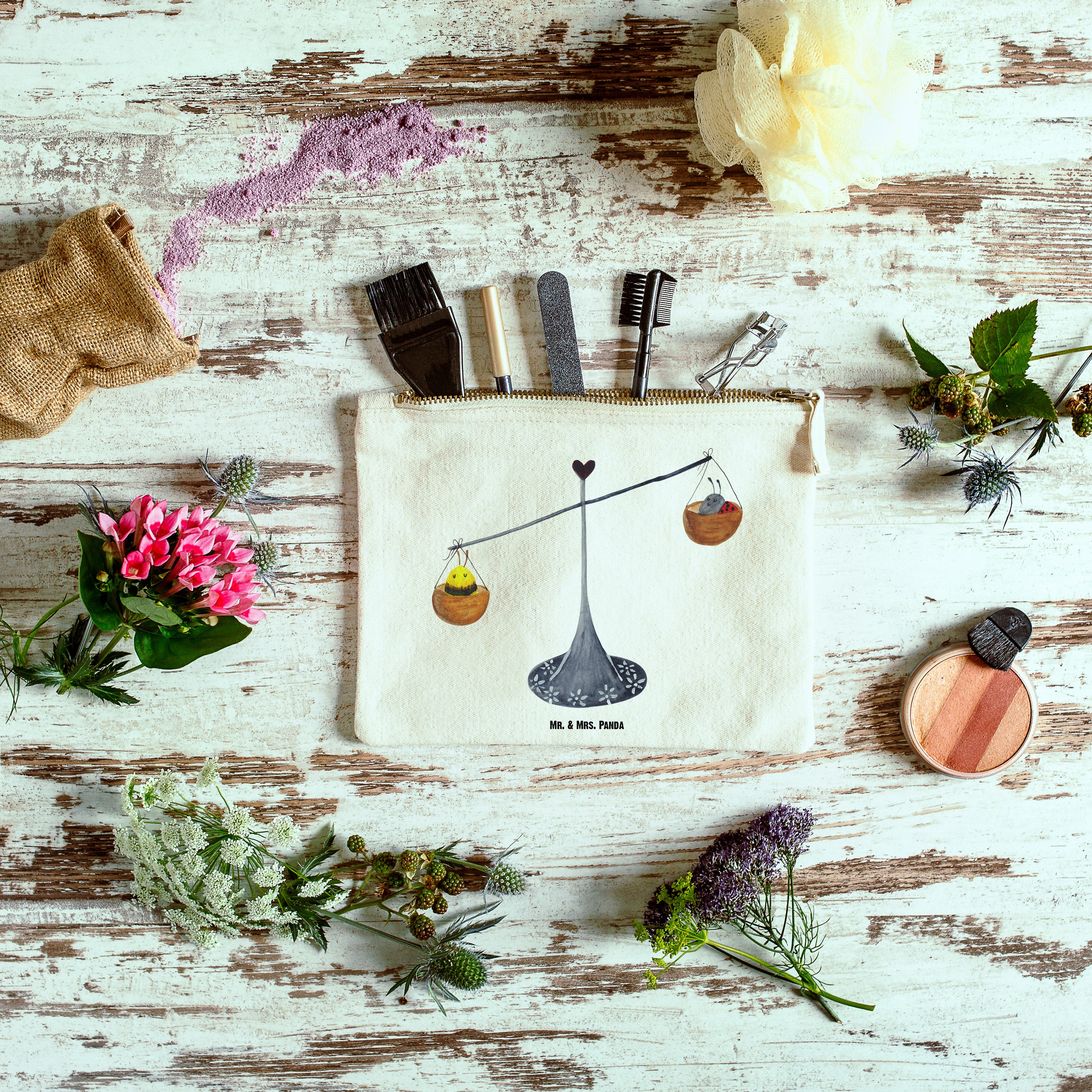 Eine wunderschöne Schminktasche von Mr. & Mrs. Panda mit Reißverschlussfach. Diese Kosmetiktasche oder Kosmetikbeutel ist aus 100% Baumwolle und bedruckt mit unseren wunderschönen handgezeichneten Motiven. Hol dir dieses einzigartige Etui direkt nach Hause - du kannst die Tasche auch perfekt als Stiftemäppchen, Federmappe, Schlamper oder Etui verwenden.