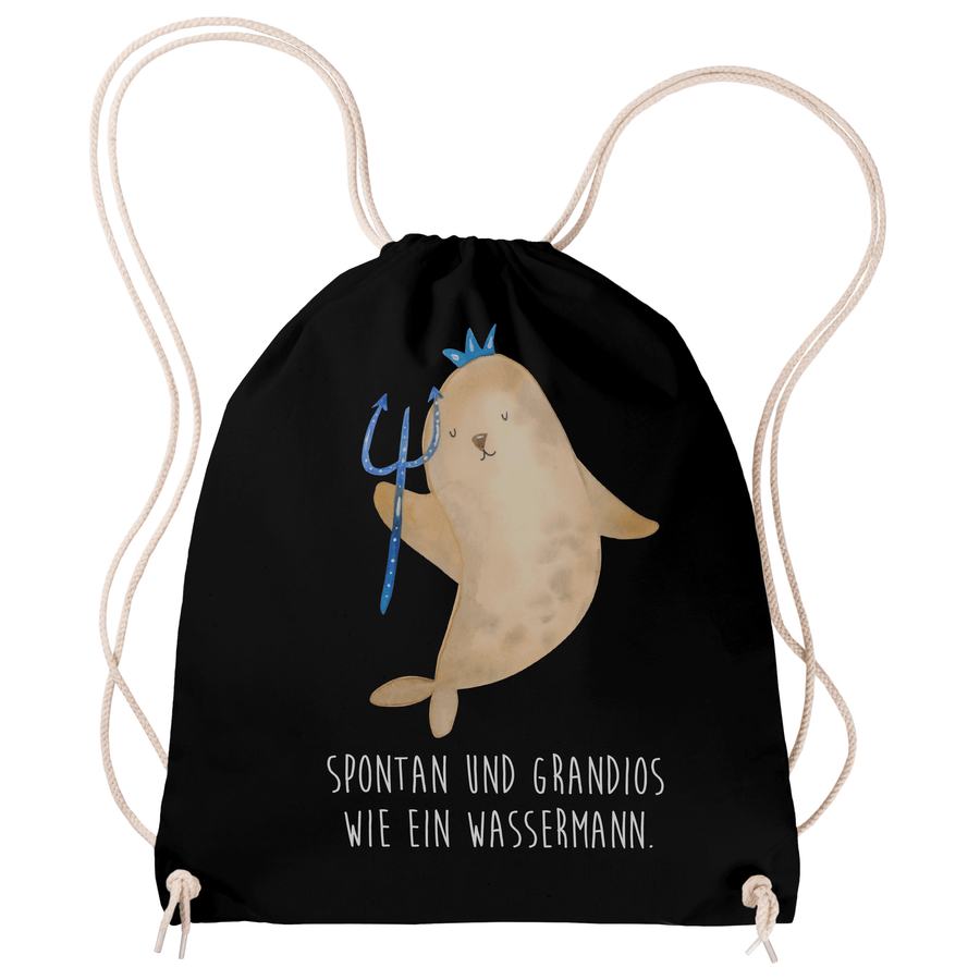 Sportbeutel Sternzeichen Wassermann - mit Spruch - Schwarz