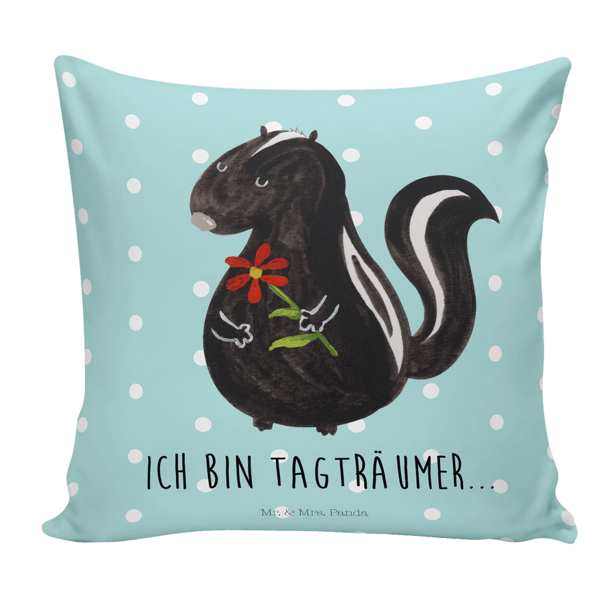 40x40 Kissen Stinktier Blume - mit Spruch - Türkis Pastell