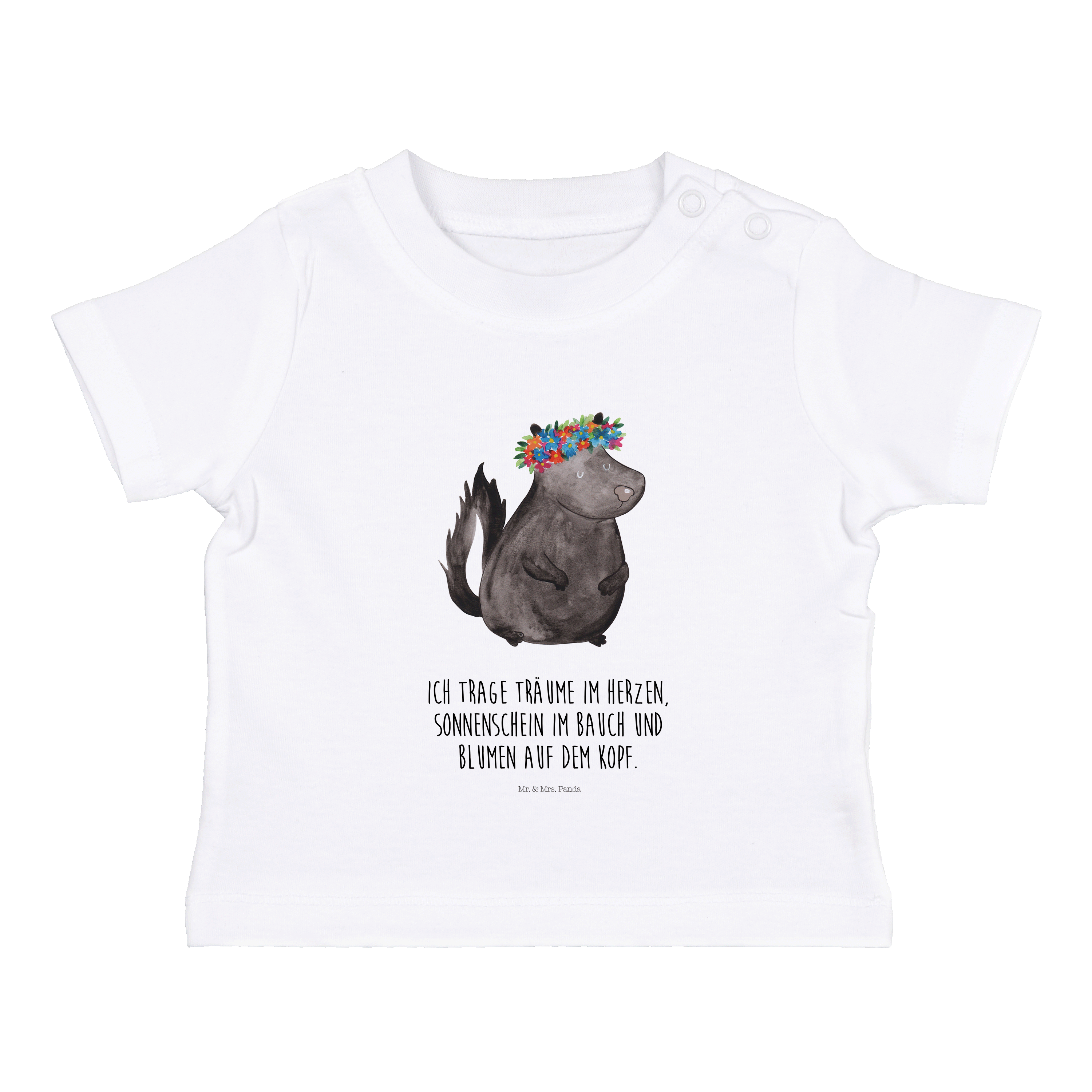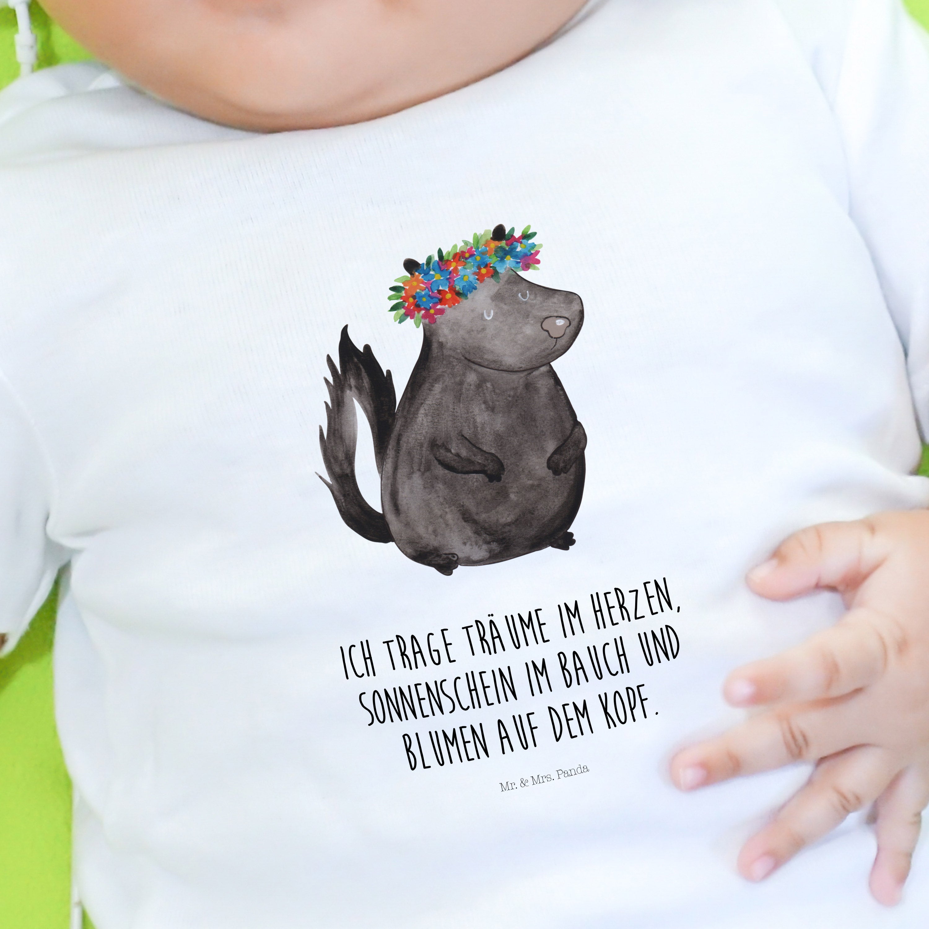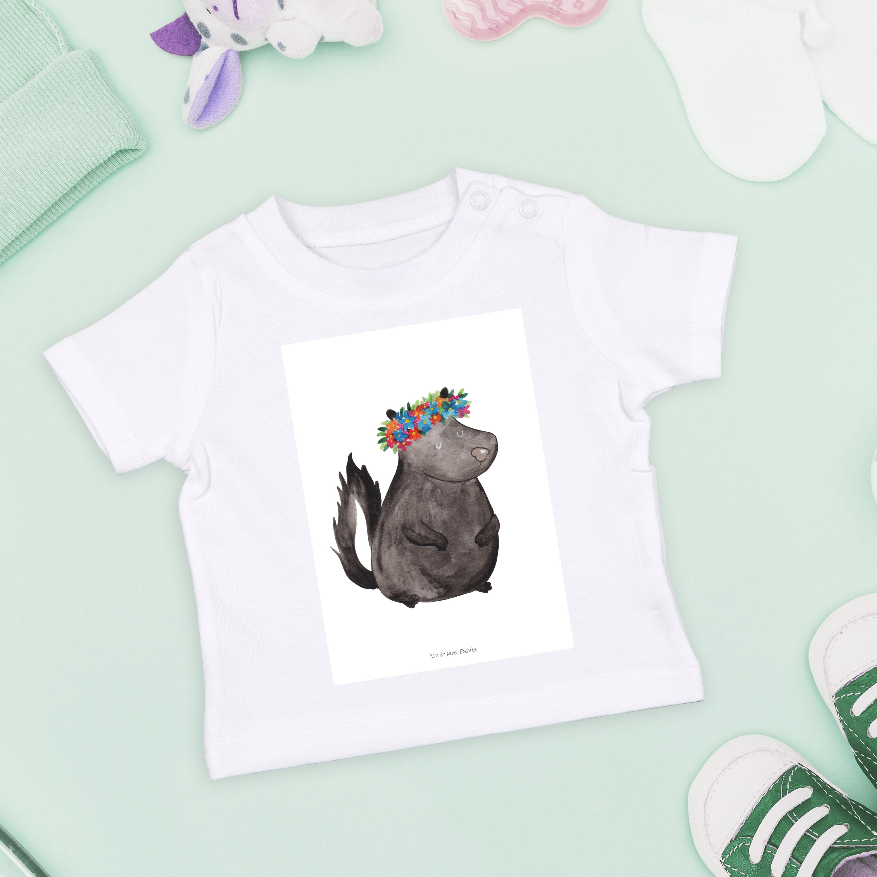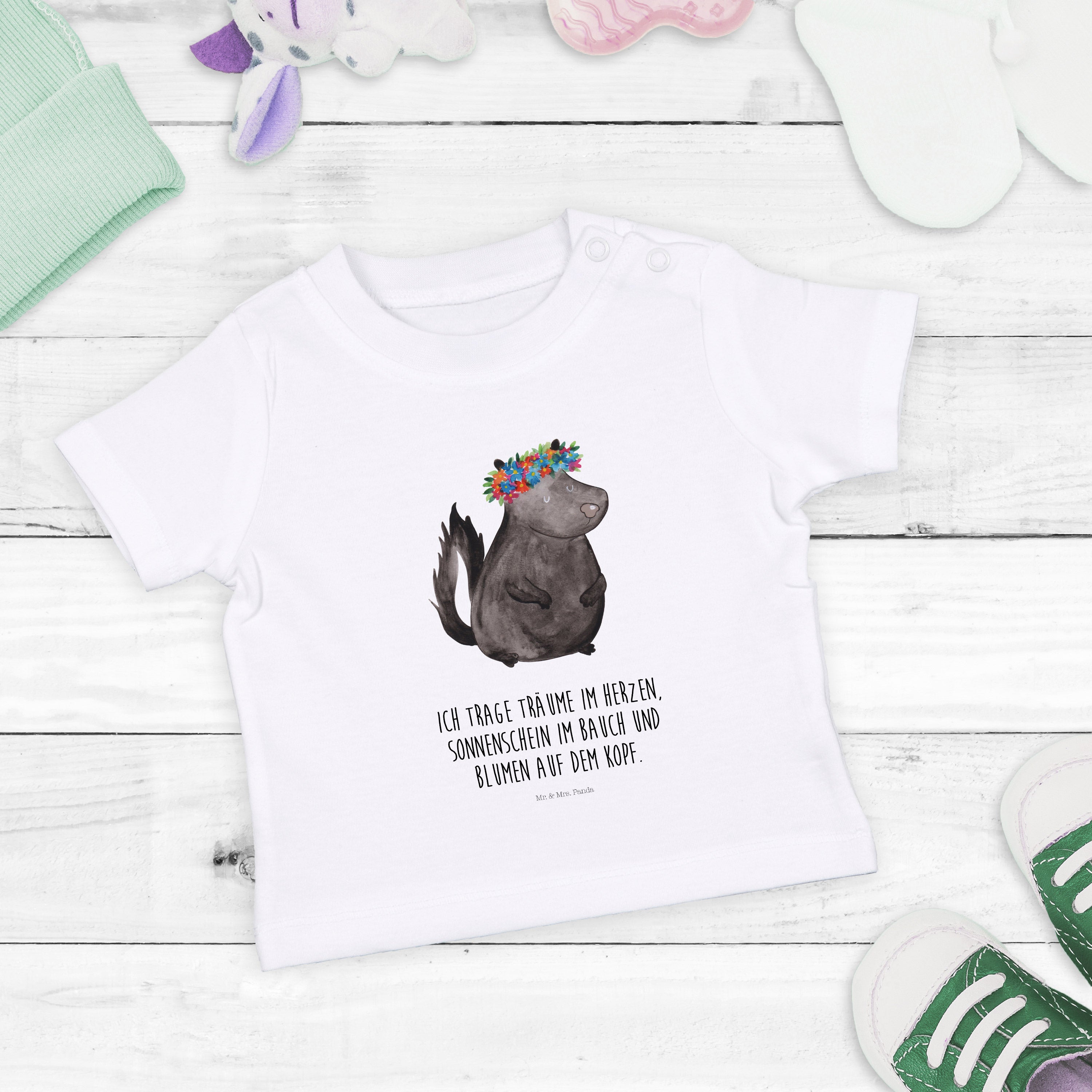 Organic Baby Shirt Stinktier Blumenmaedchen - 6. - 12. Monat - mit Spruch