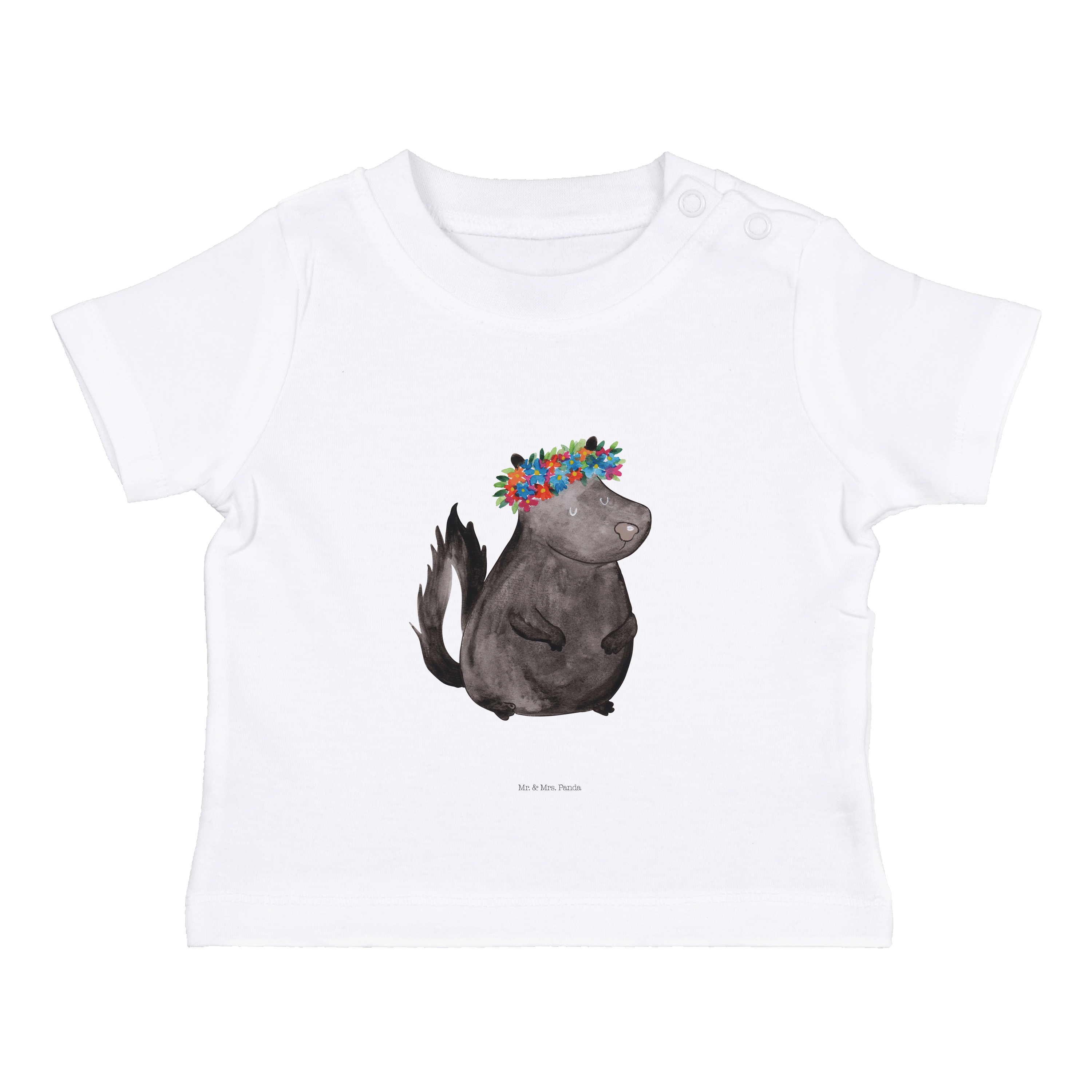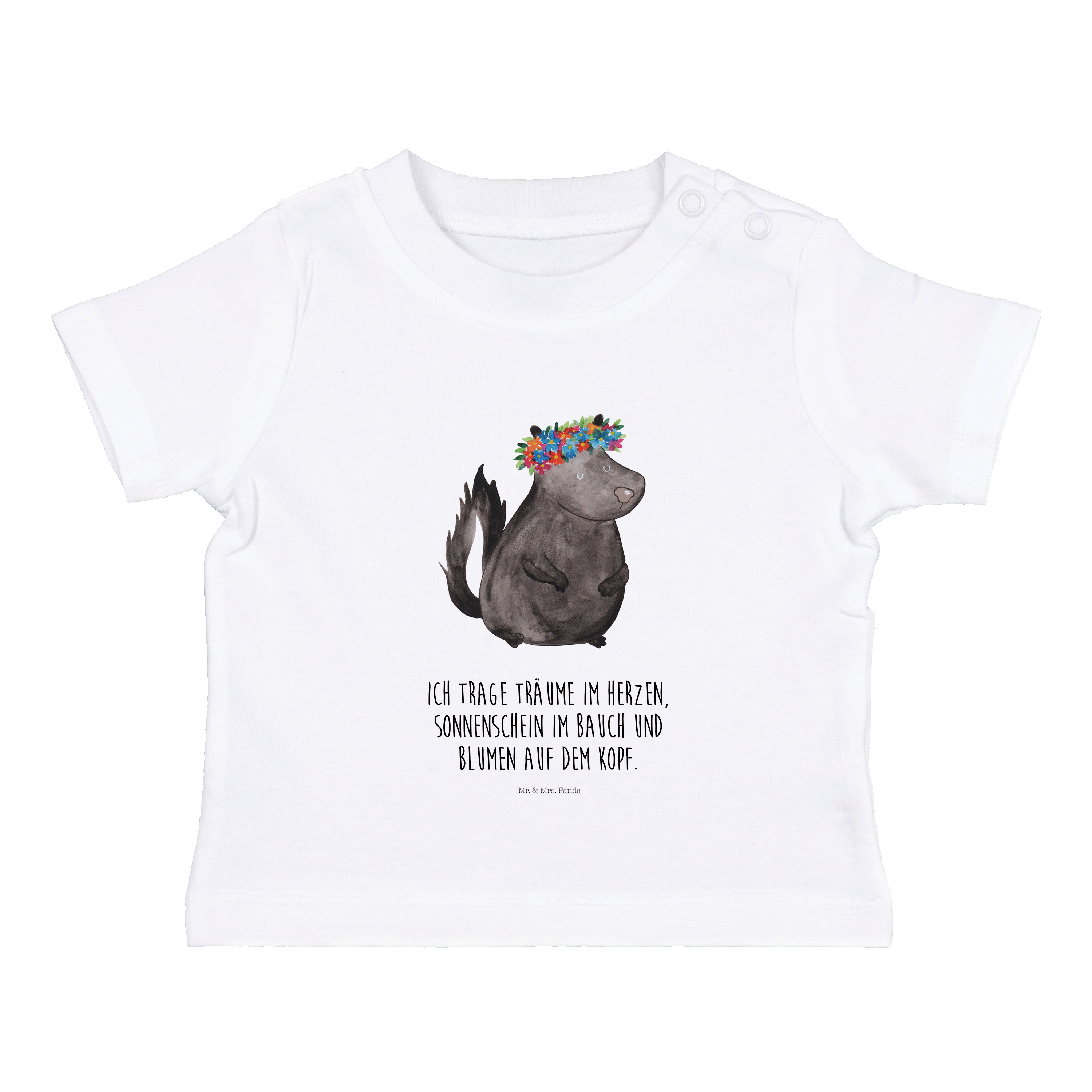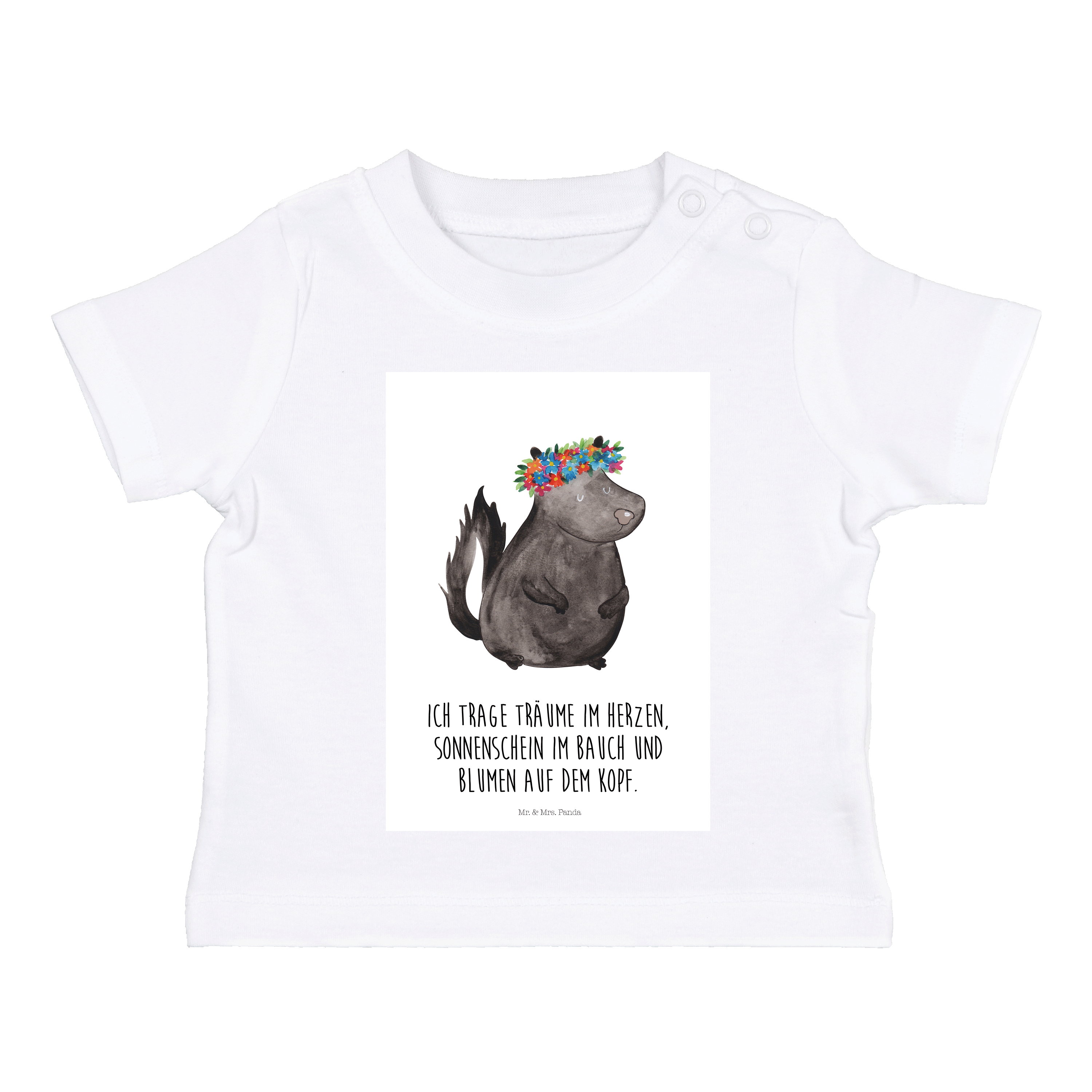 Organic Baby Shirt Stinktier Blumenmaedchen - 6. - 12. Monat - mit Spruch