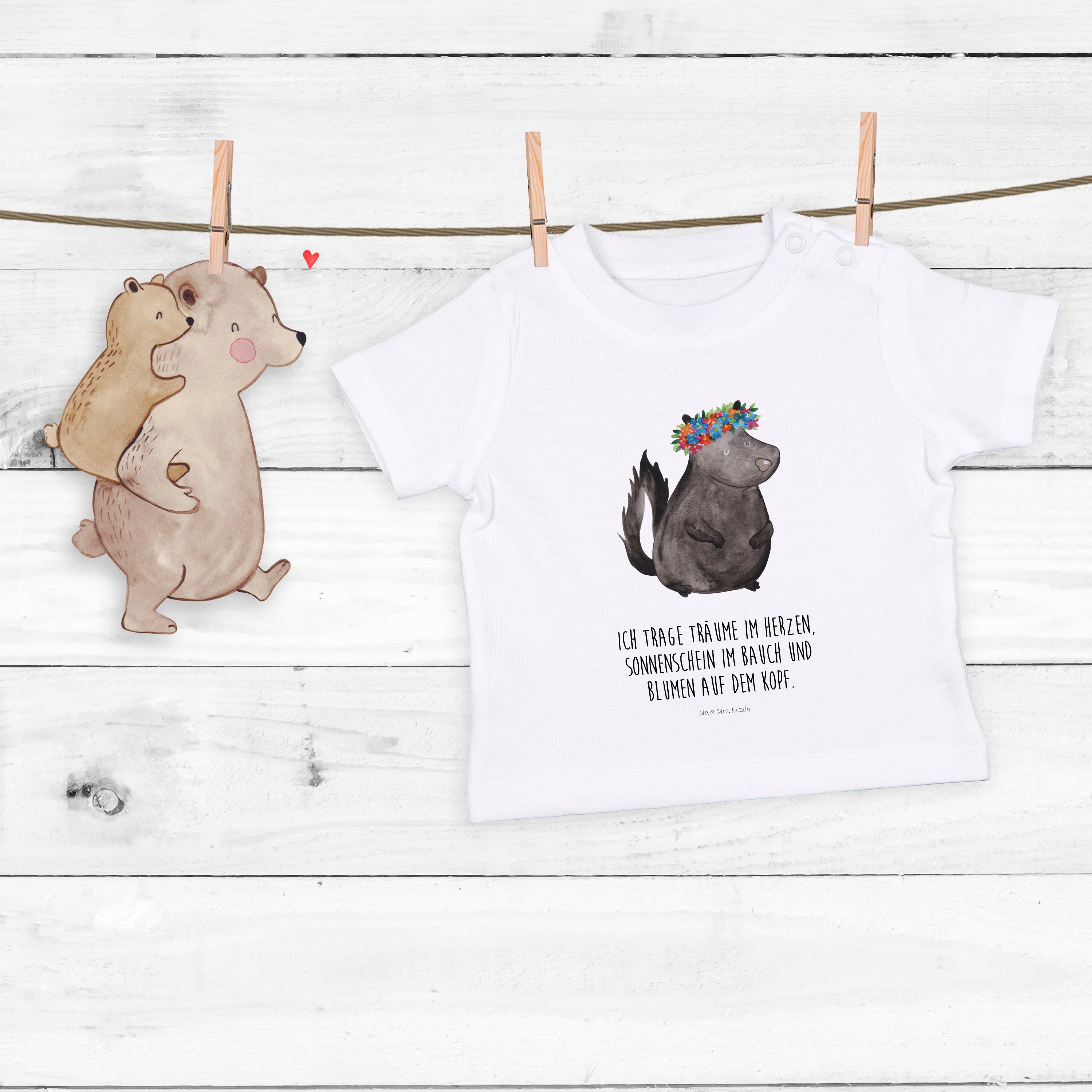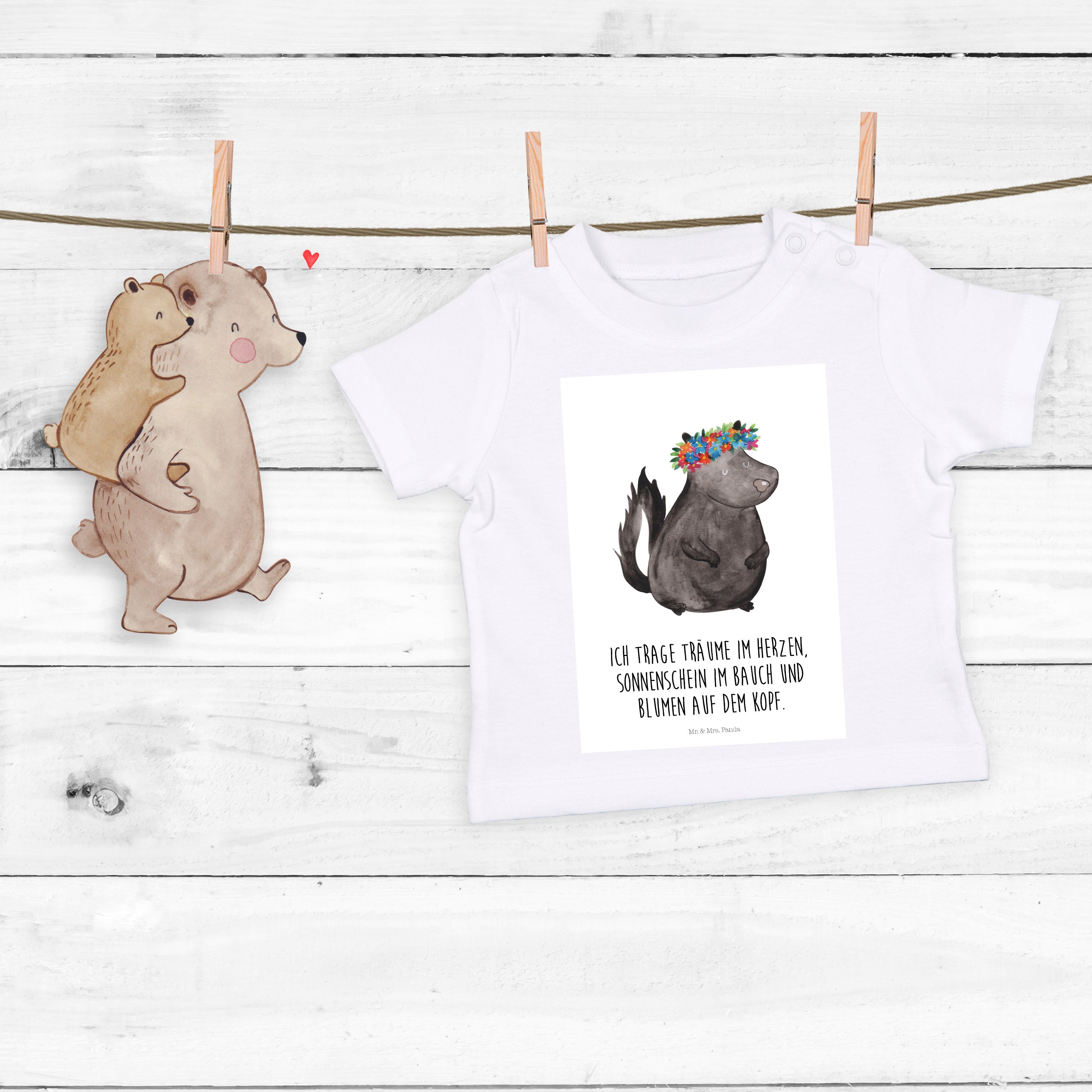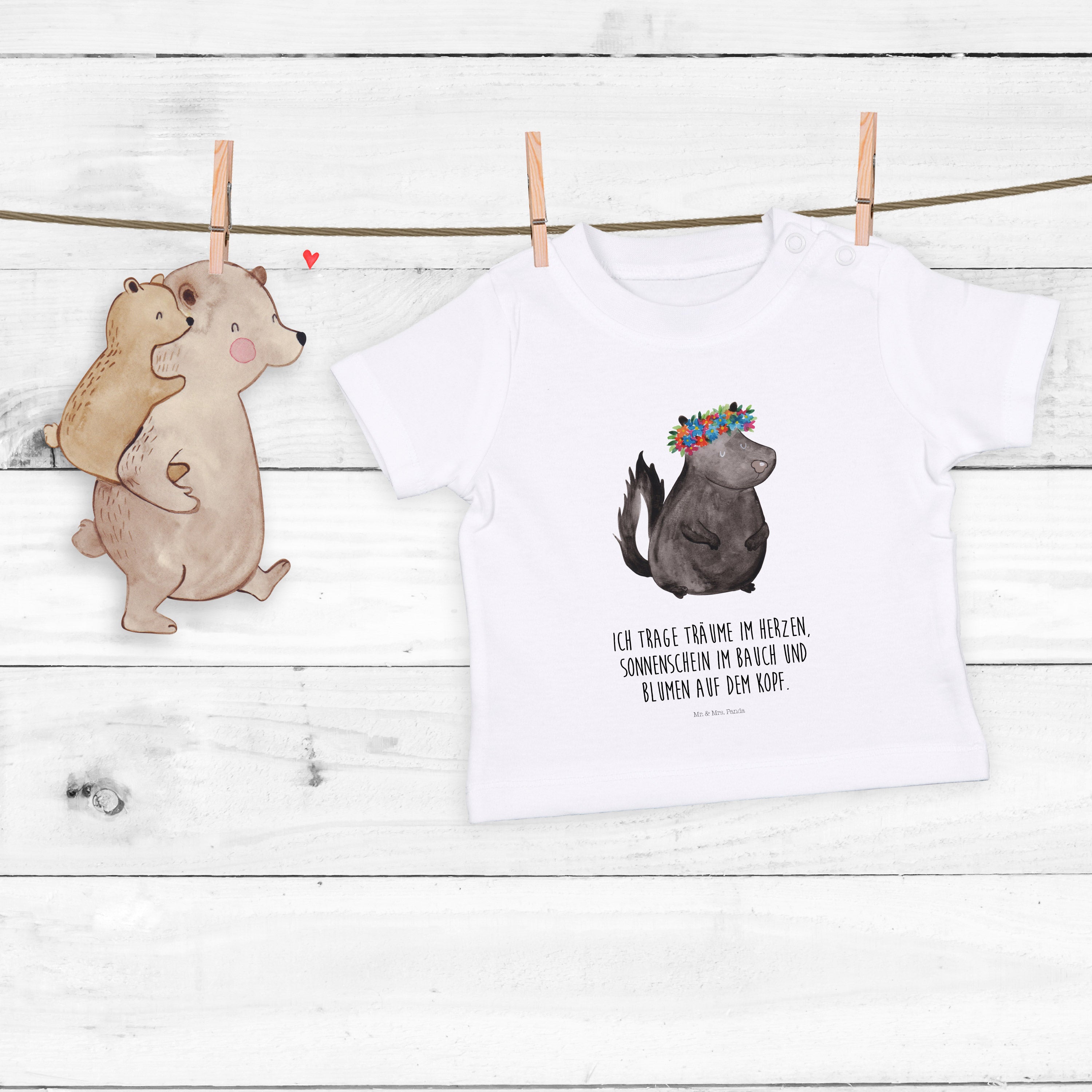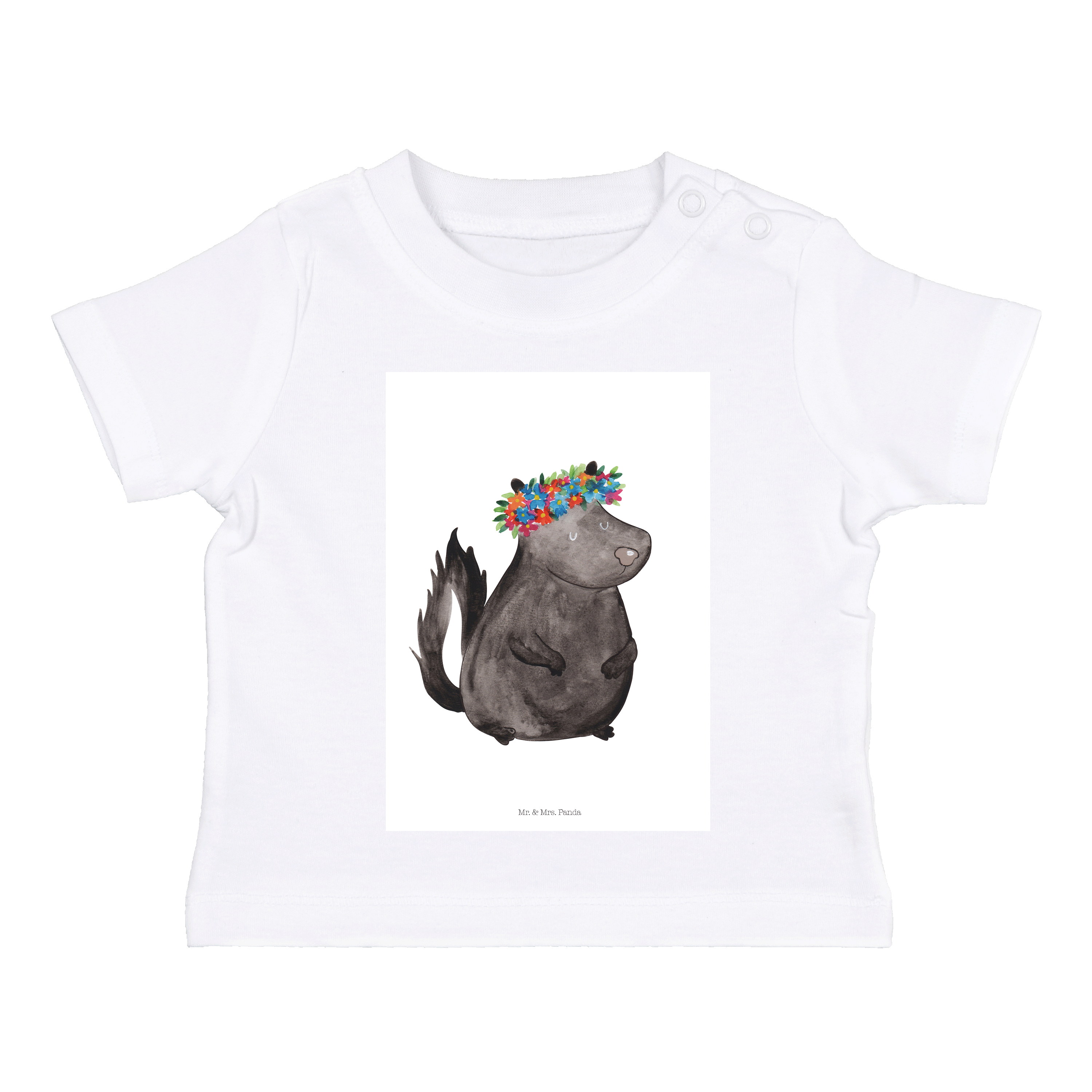 Organic Baby Shirt Stinktier Blumenmaedchen - 6. - 12. Monat - mit Spruch