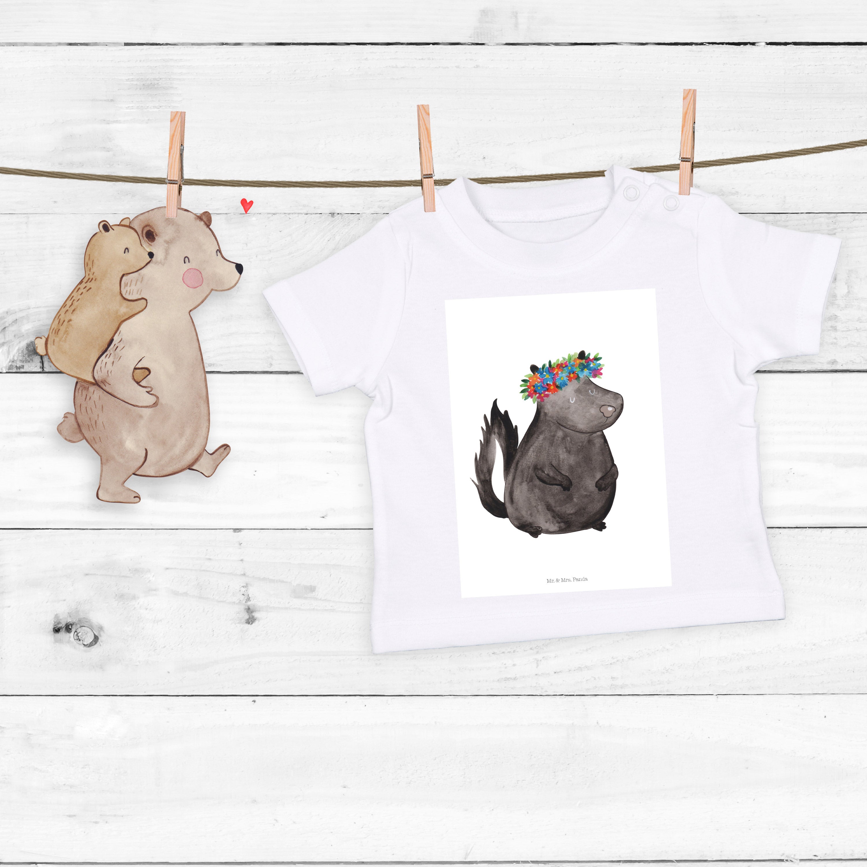 Es gibt nichts Schöneres, als die Natur in ihrer puren Form zu erleben. Das Stinktier Blumenmädchen-Motiv von Mr. & Mrs. Panda präsentiert die wundervolle Natur auf eine besondere und einzigartige Art und Weise. Das süße Stinktier mit einem bunten Blumenkranz auf dem Kopf erfüllt Dich mit Freude und ihm zu begegnen, macht Deinen Tag einzigartig. Es ist nicht nur ein Kunstwerk, sondern auch ein Symbol der Schönheit, die in der Natur zu finden ist.