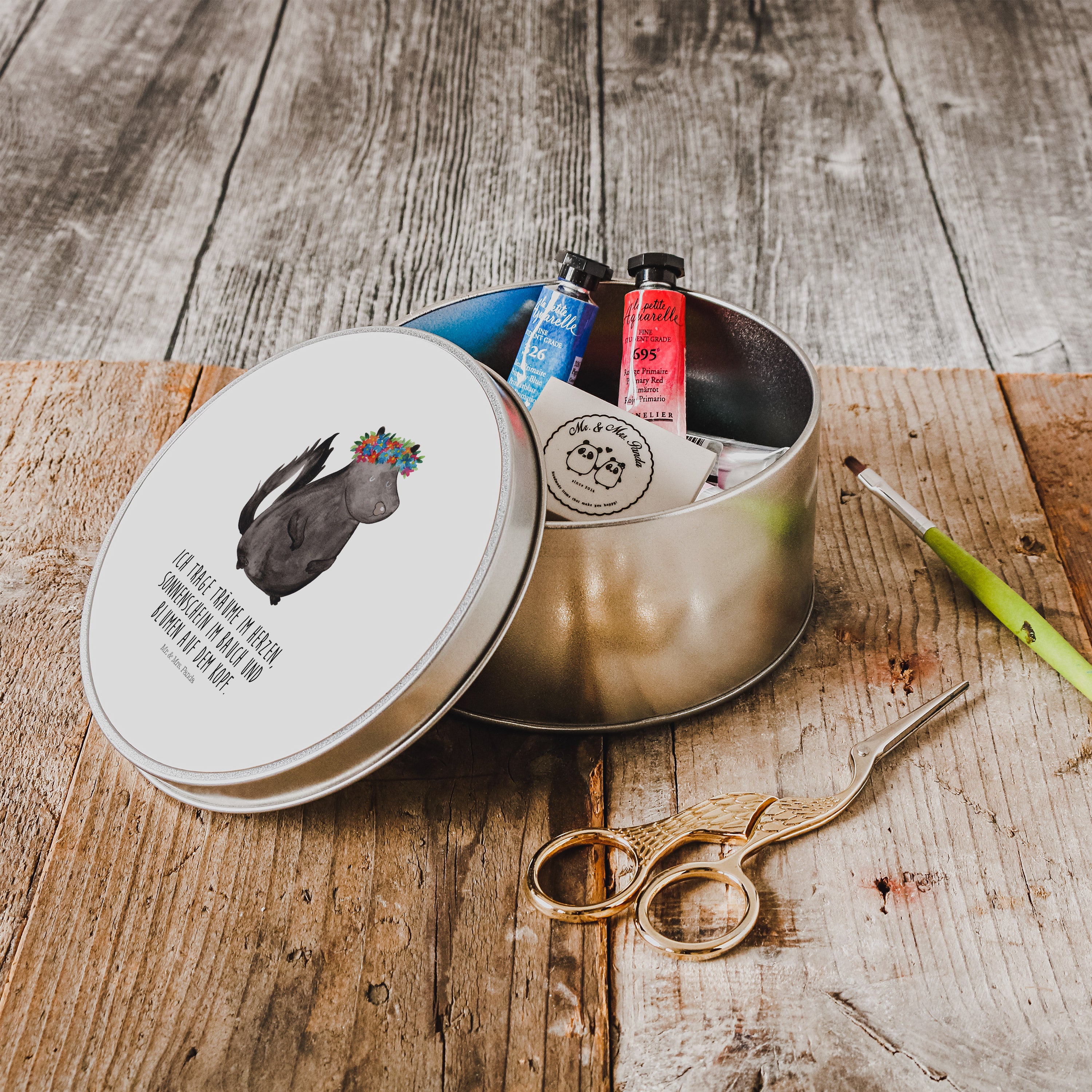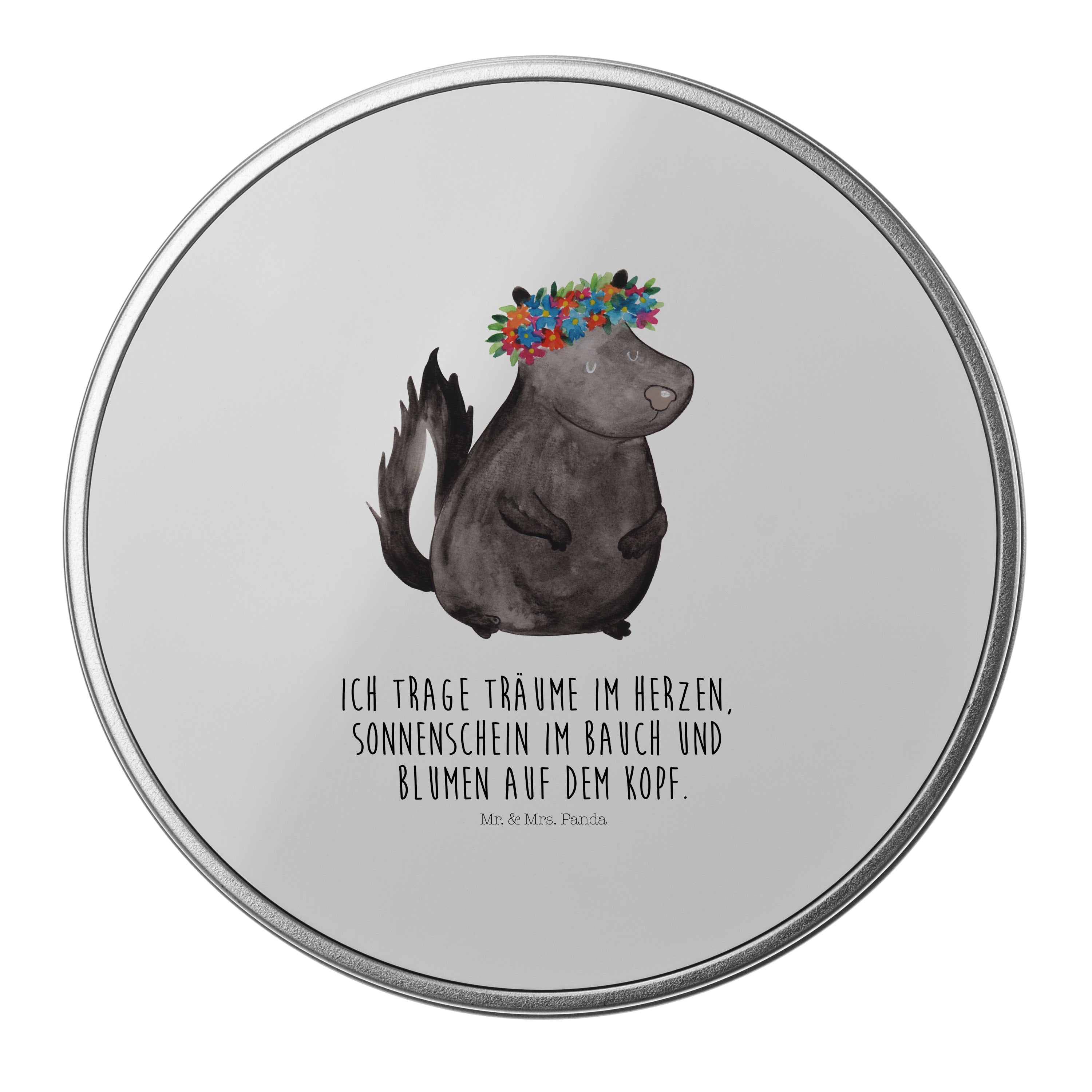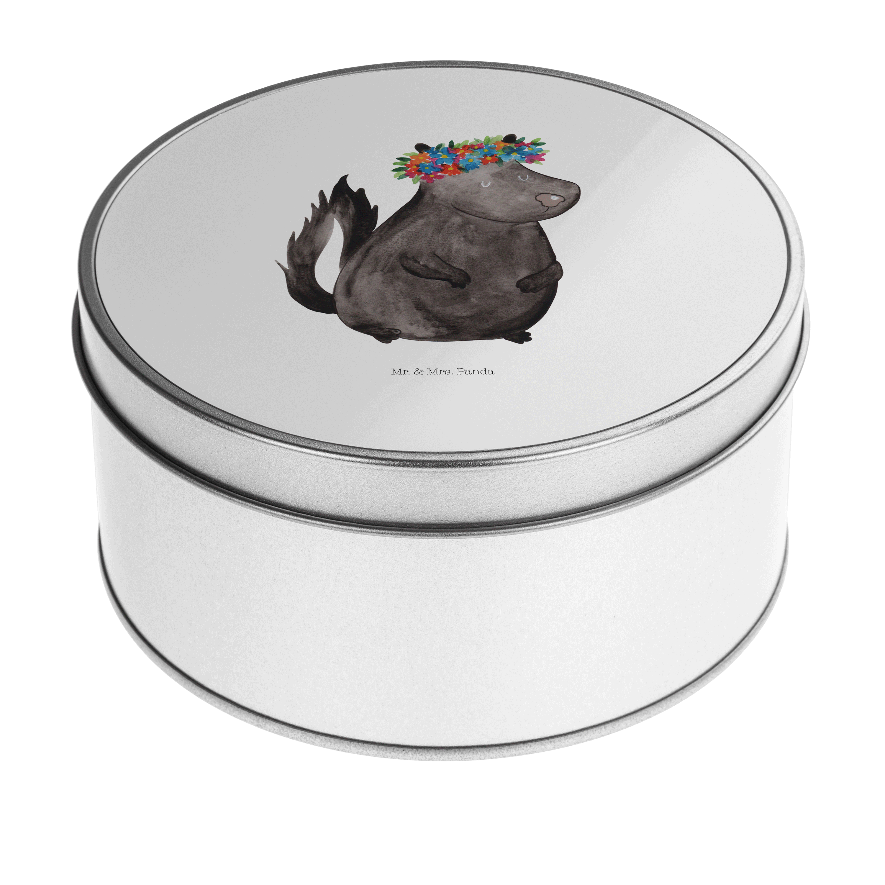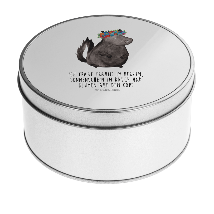 Blechdose rund Stinktier Blumenmaedchen - mit Spruch - Weiß
