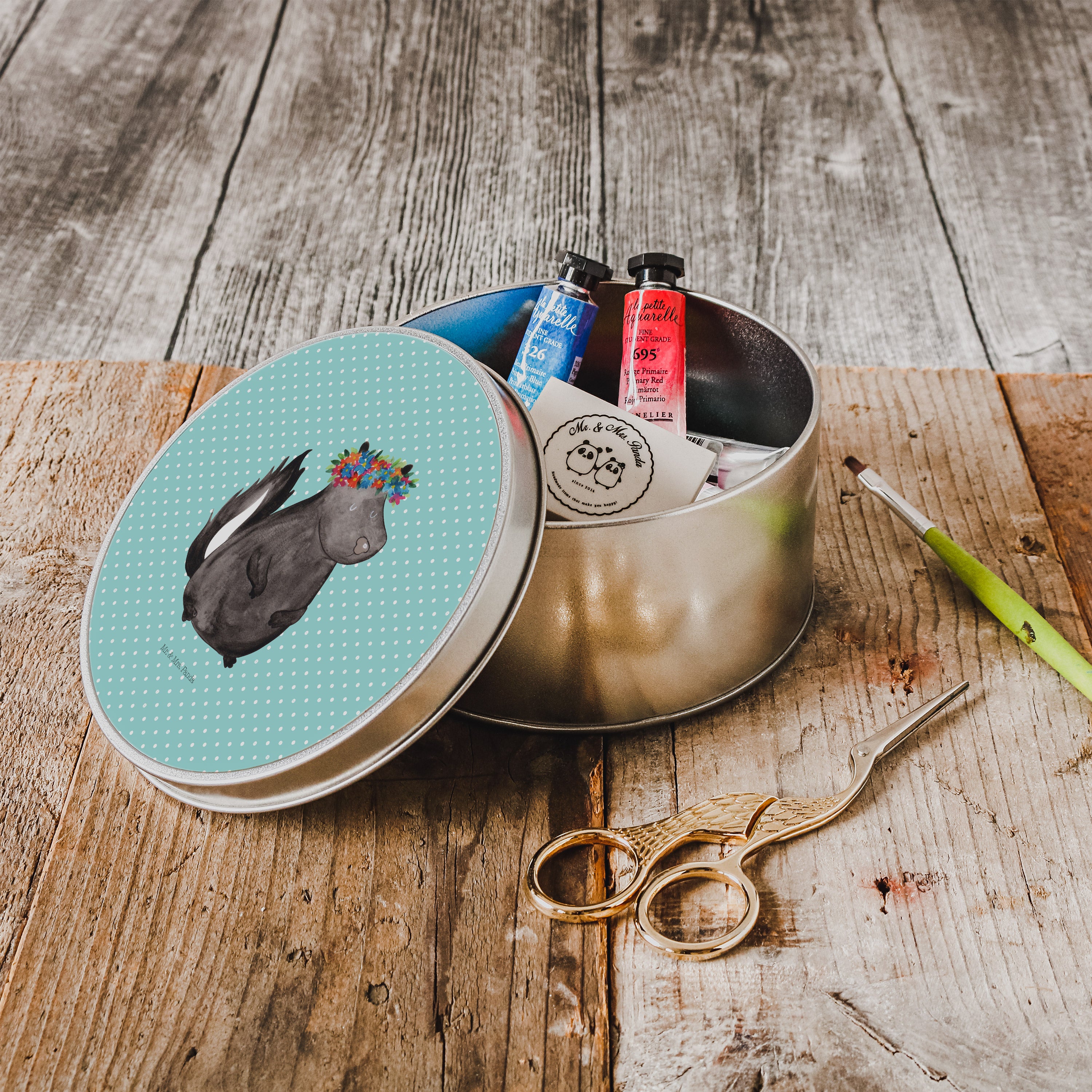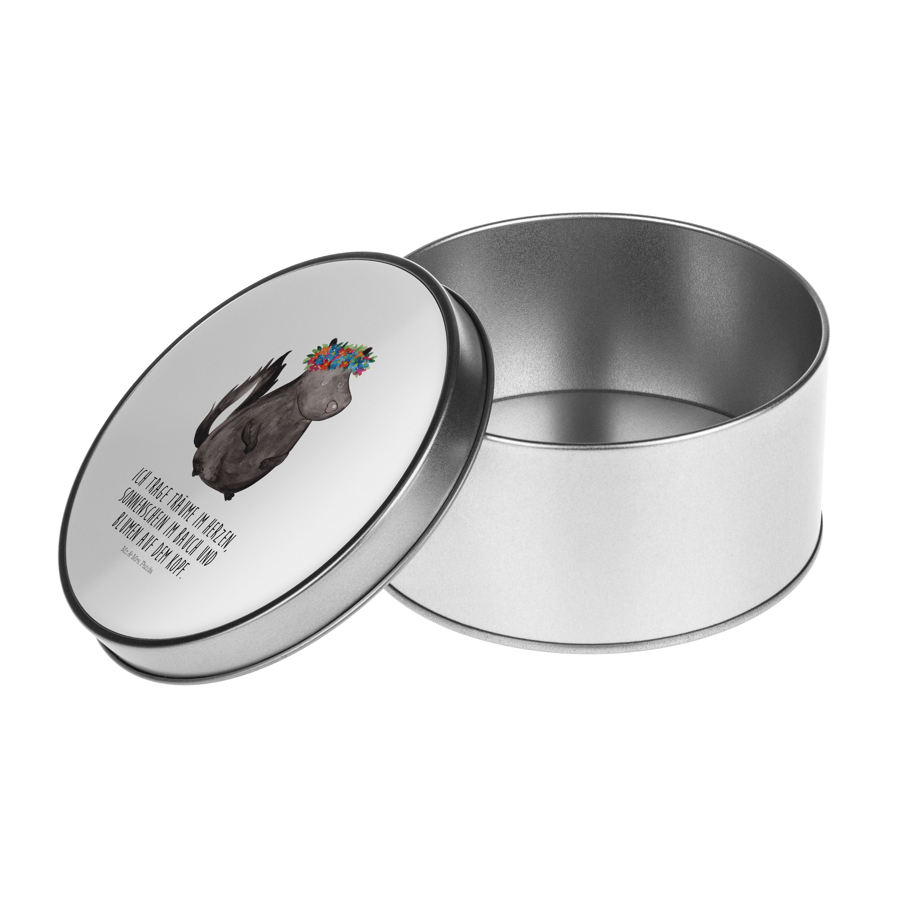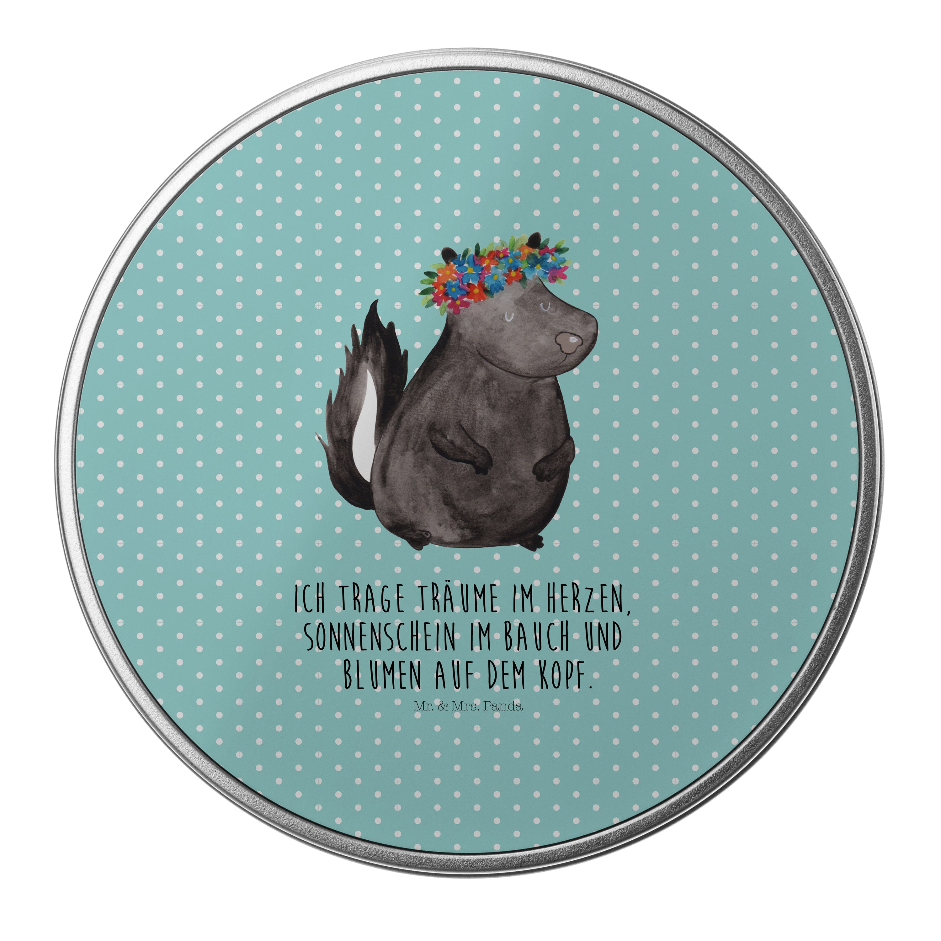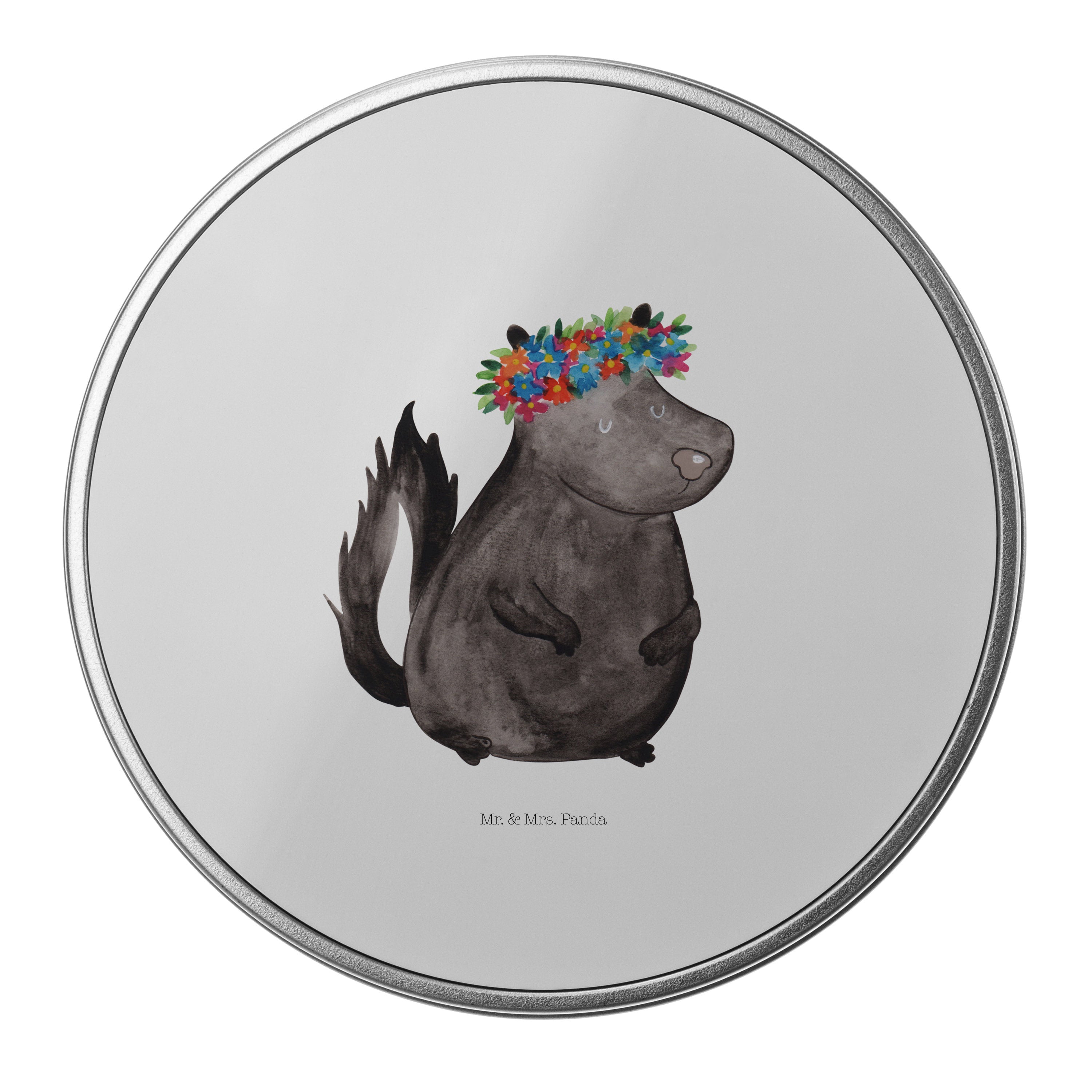 Blechdose rund Stinktier Blumenmaedchen - mit Spruch - Weiß