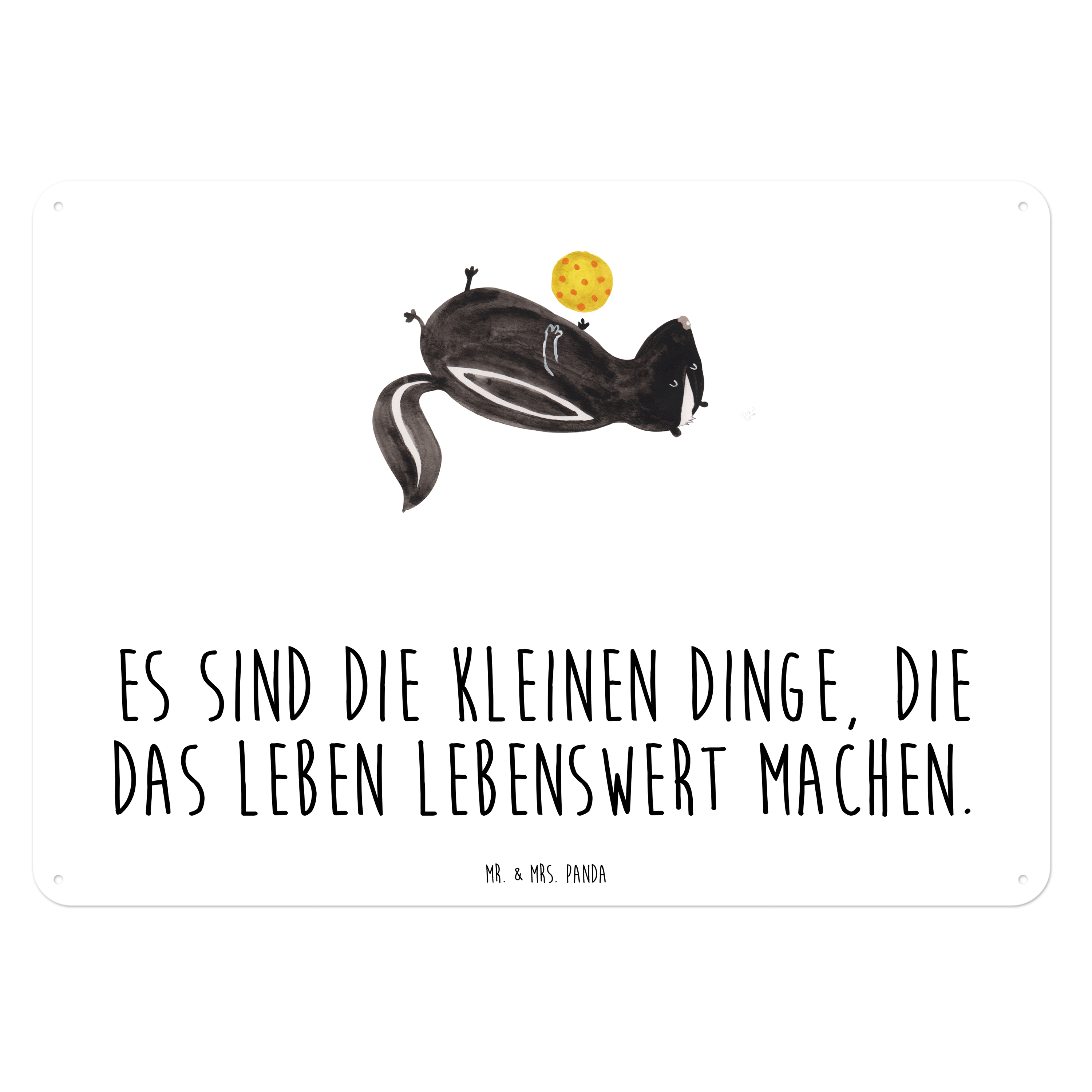 Blechschild Stinktier Ball Blechschild, Metallschild, Geschenk Schild, Schild, Magnet-Metall-Schild, Deko Schild, Wandschild, Wand-Dekoration, Türschild, Stinktier, Skunk, Wildtier, Raubtier, Stinker, Stinki, verspielt, Weisheit
