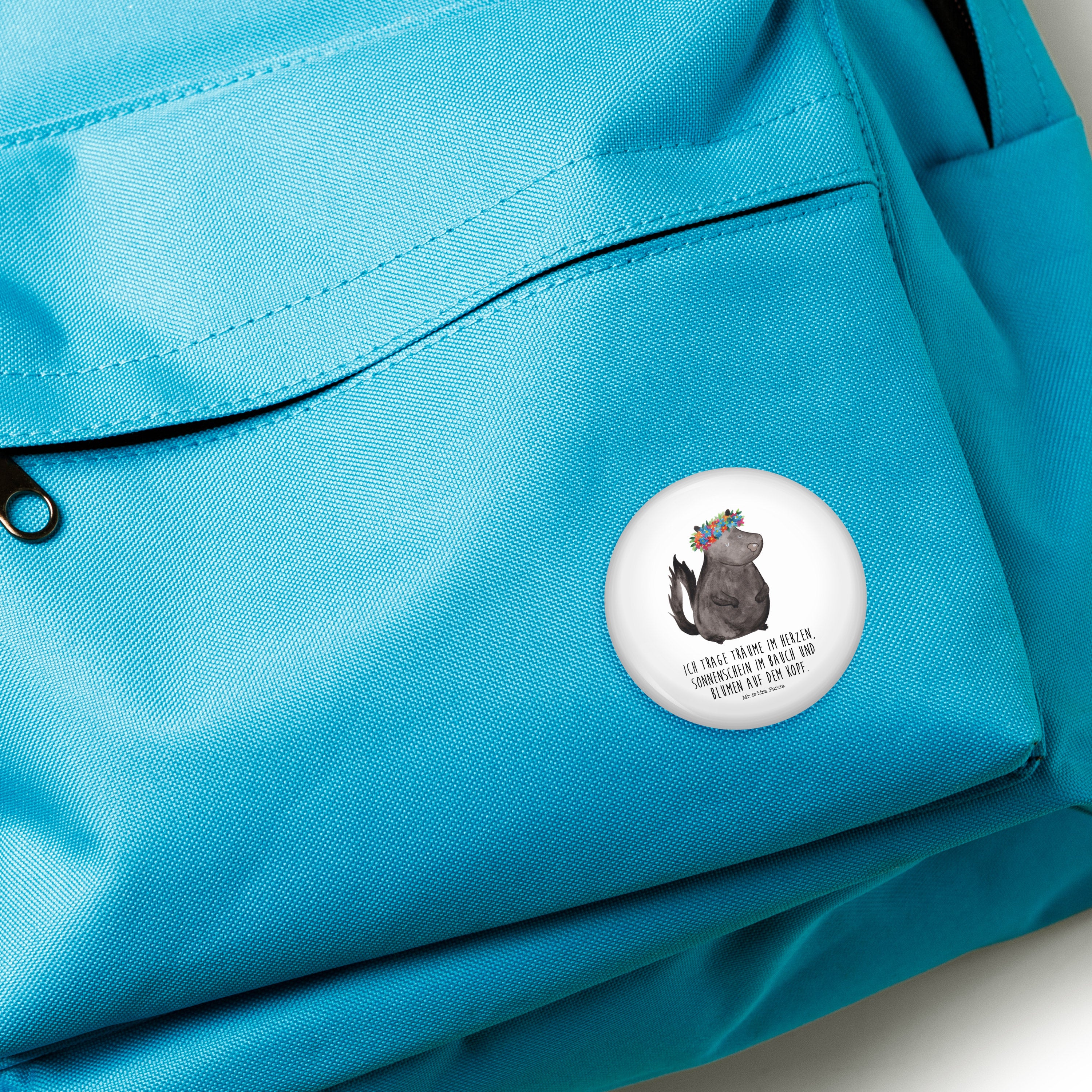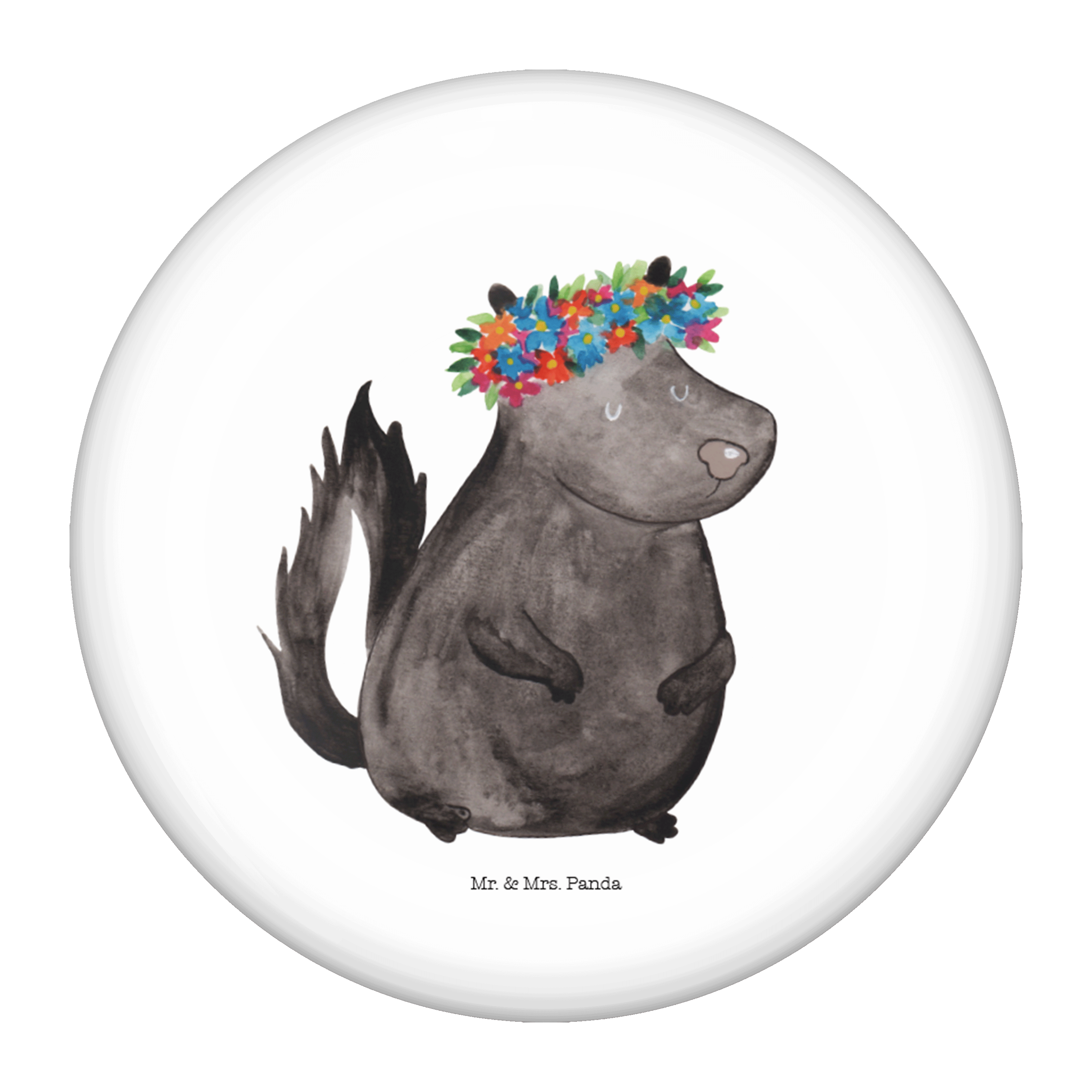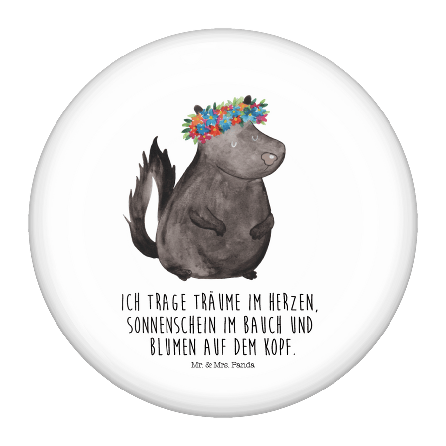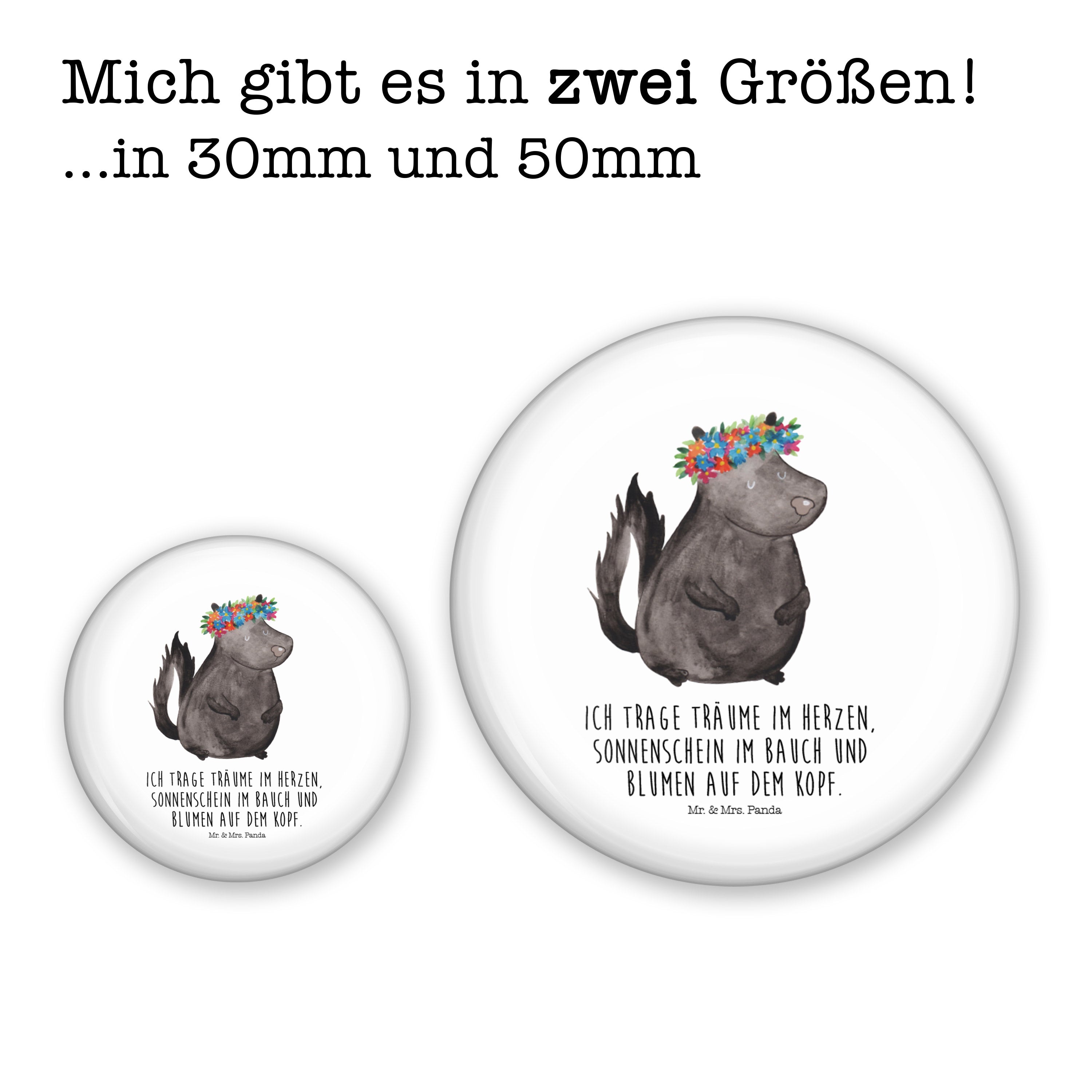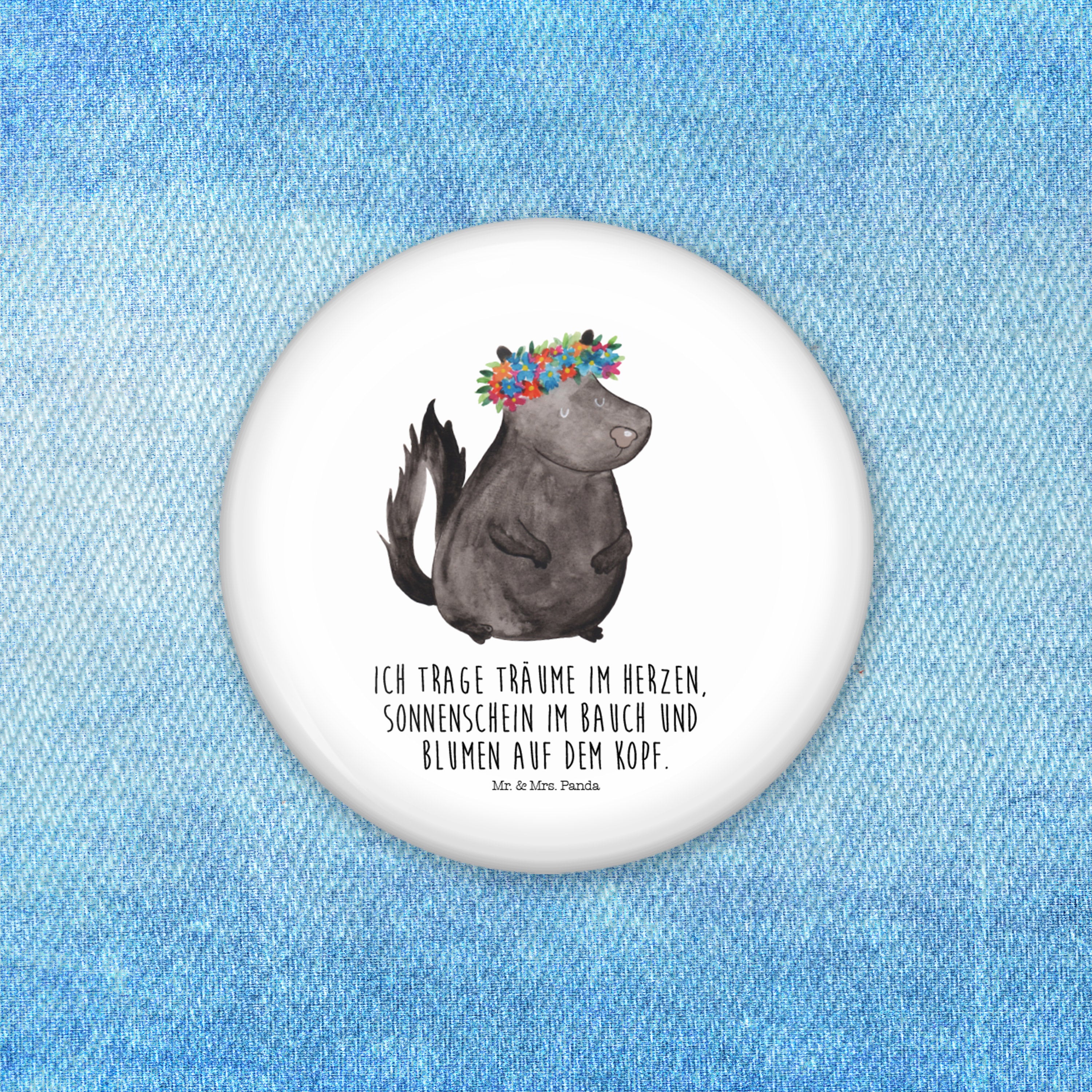 50mm Button Stinktier Blumenmaedchen - mit Spruch - Weiß