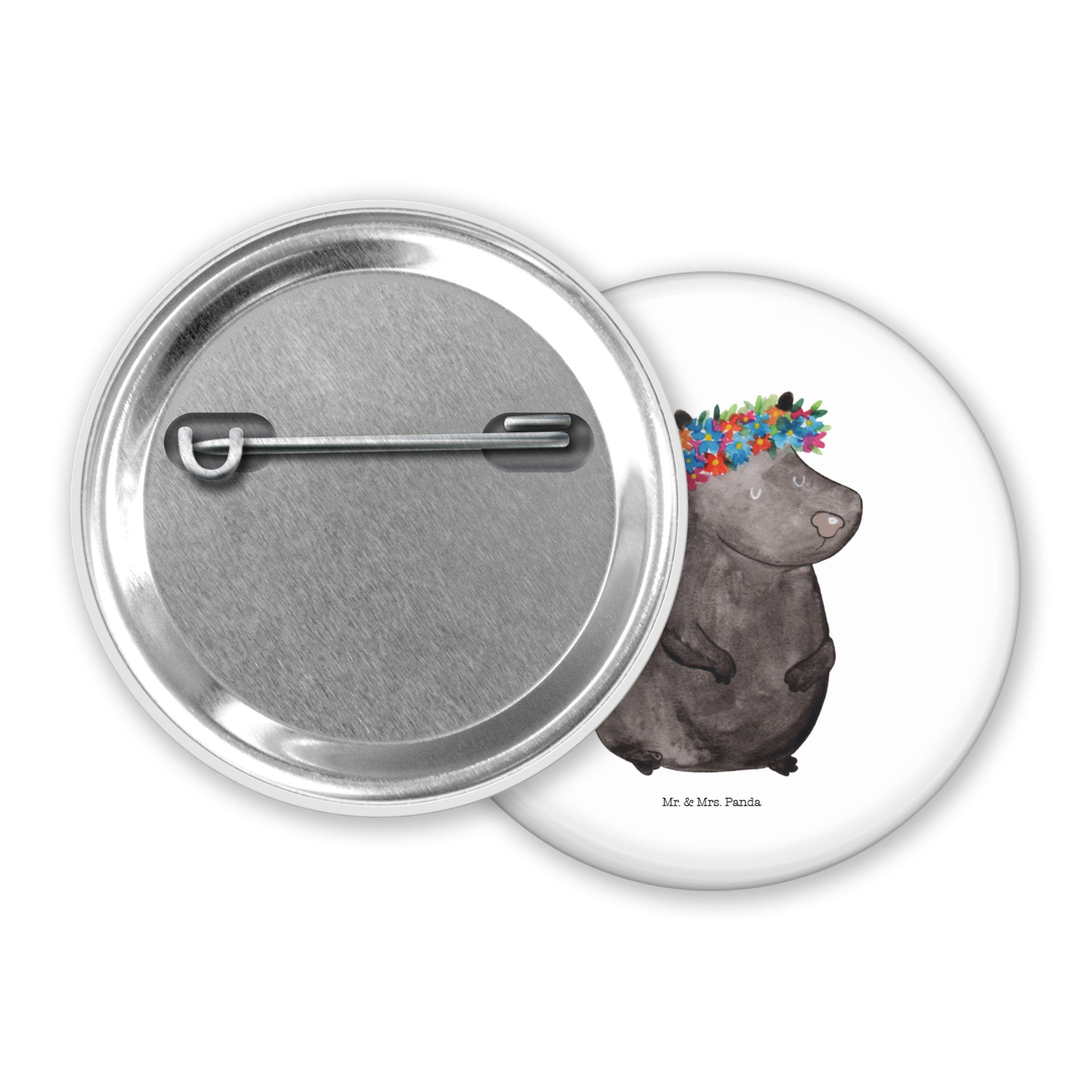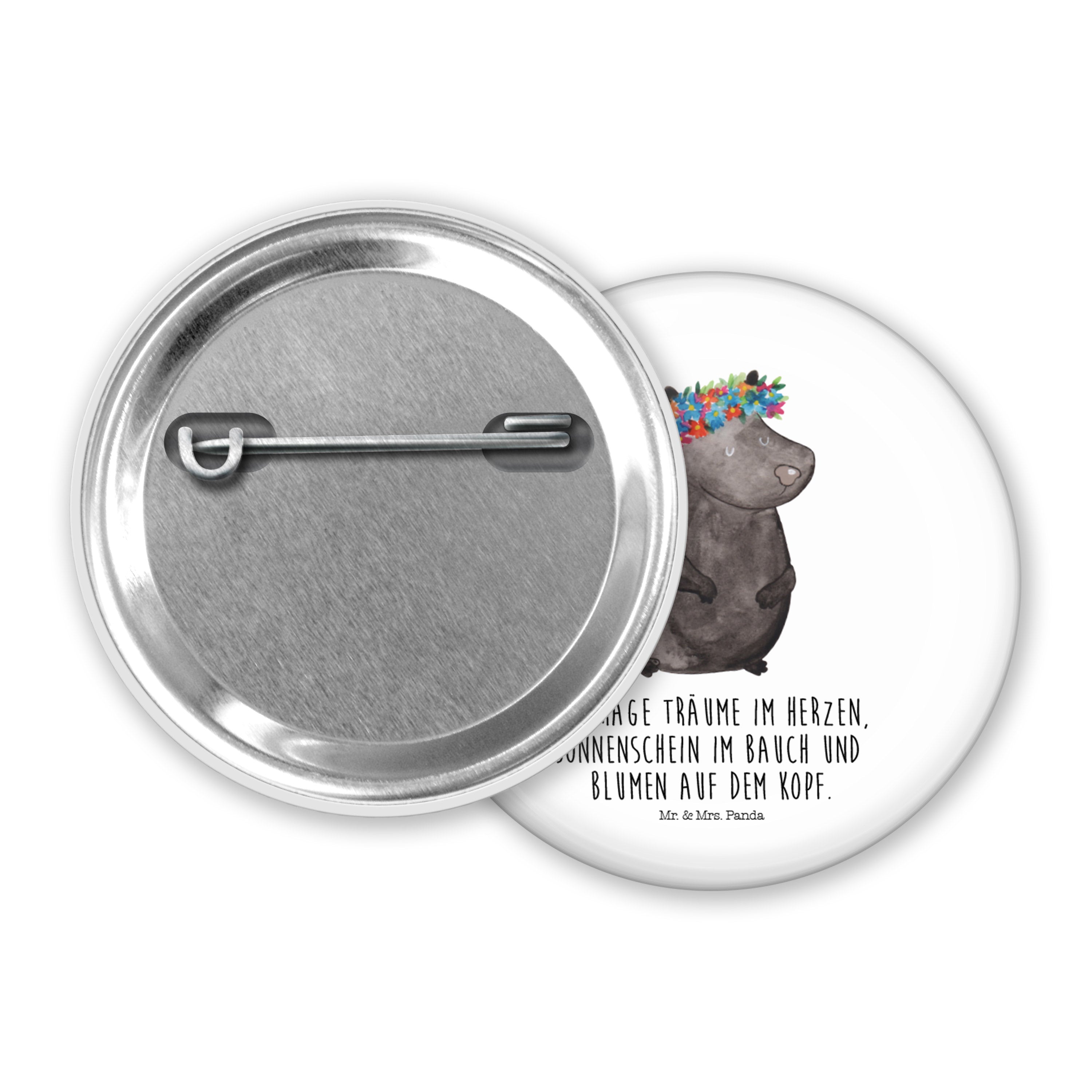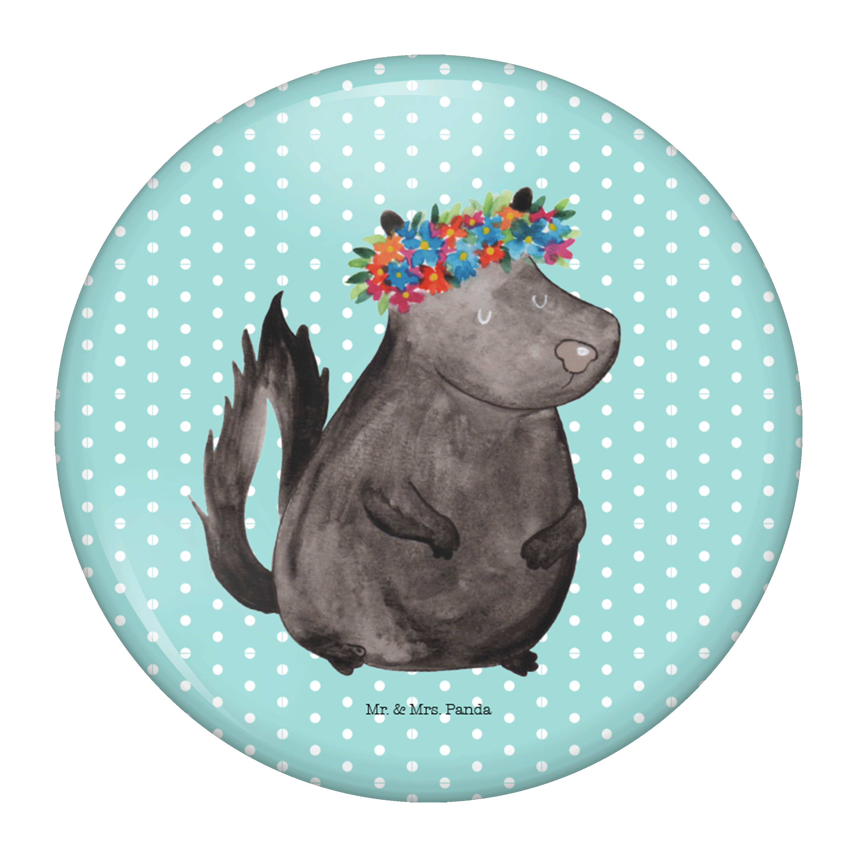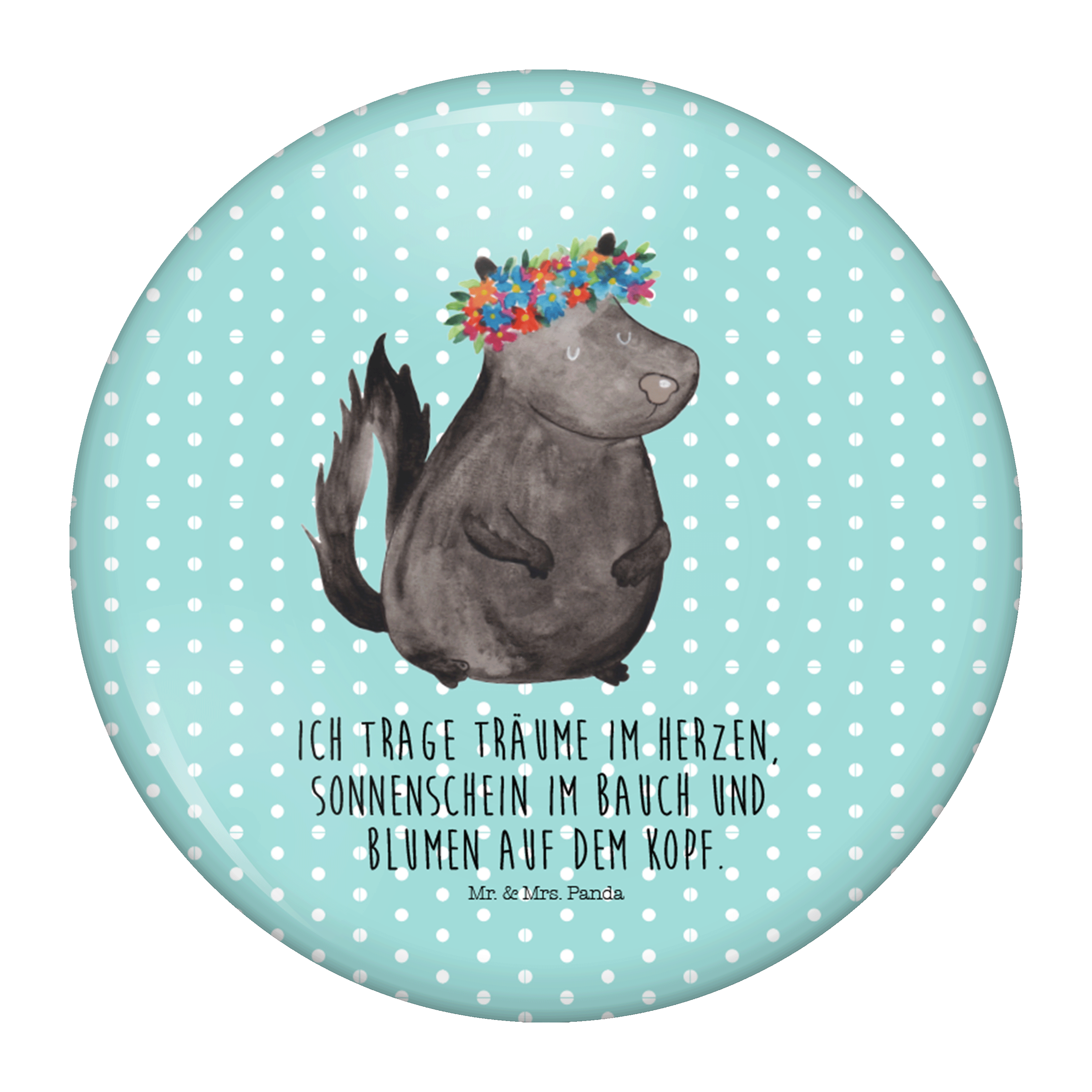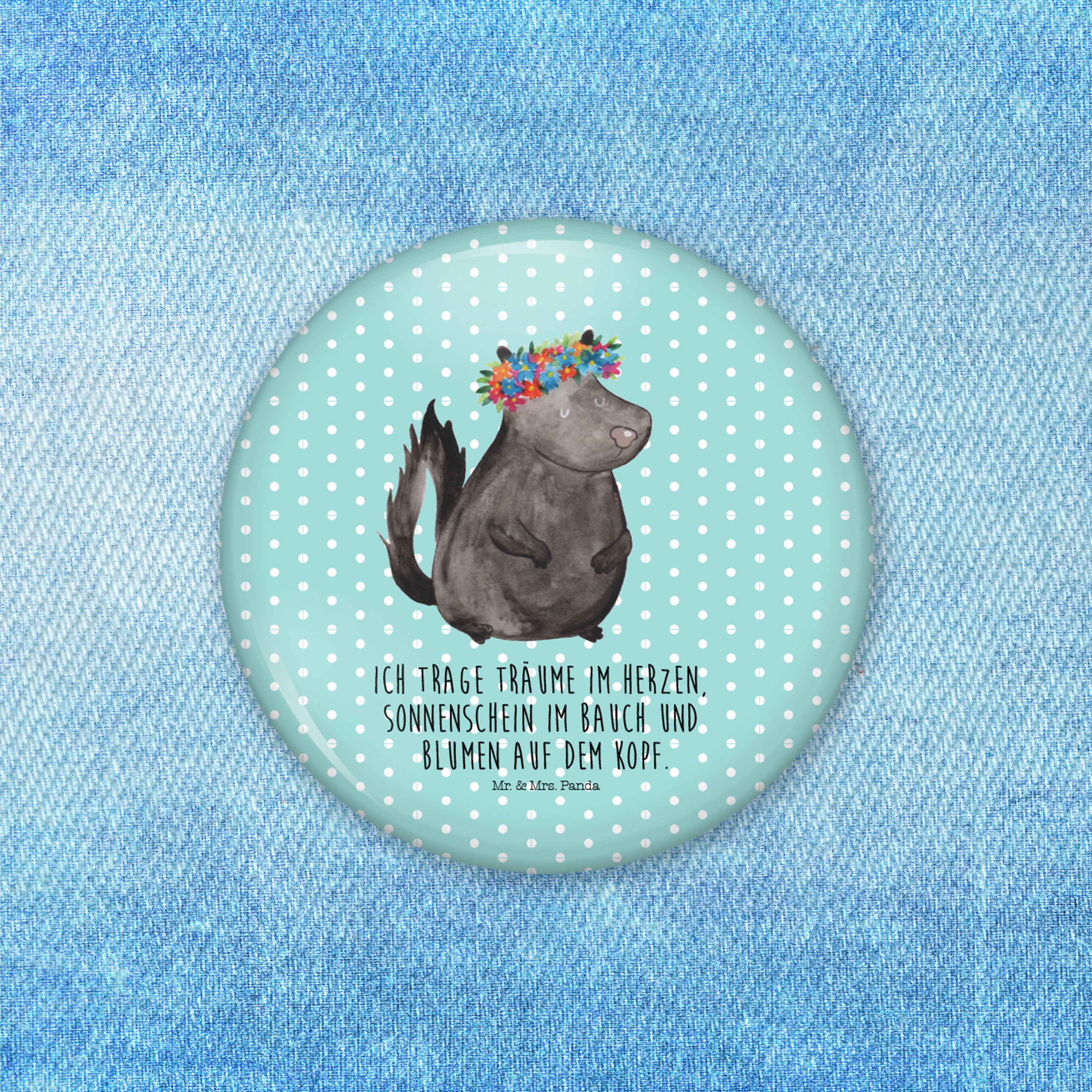 50mm Button Stinktier Blumenmaedchen - mit Spruch - Weiß