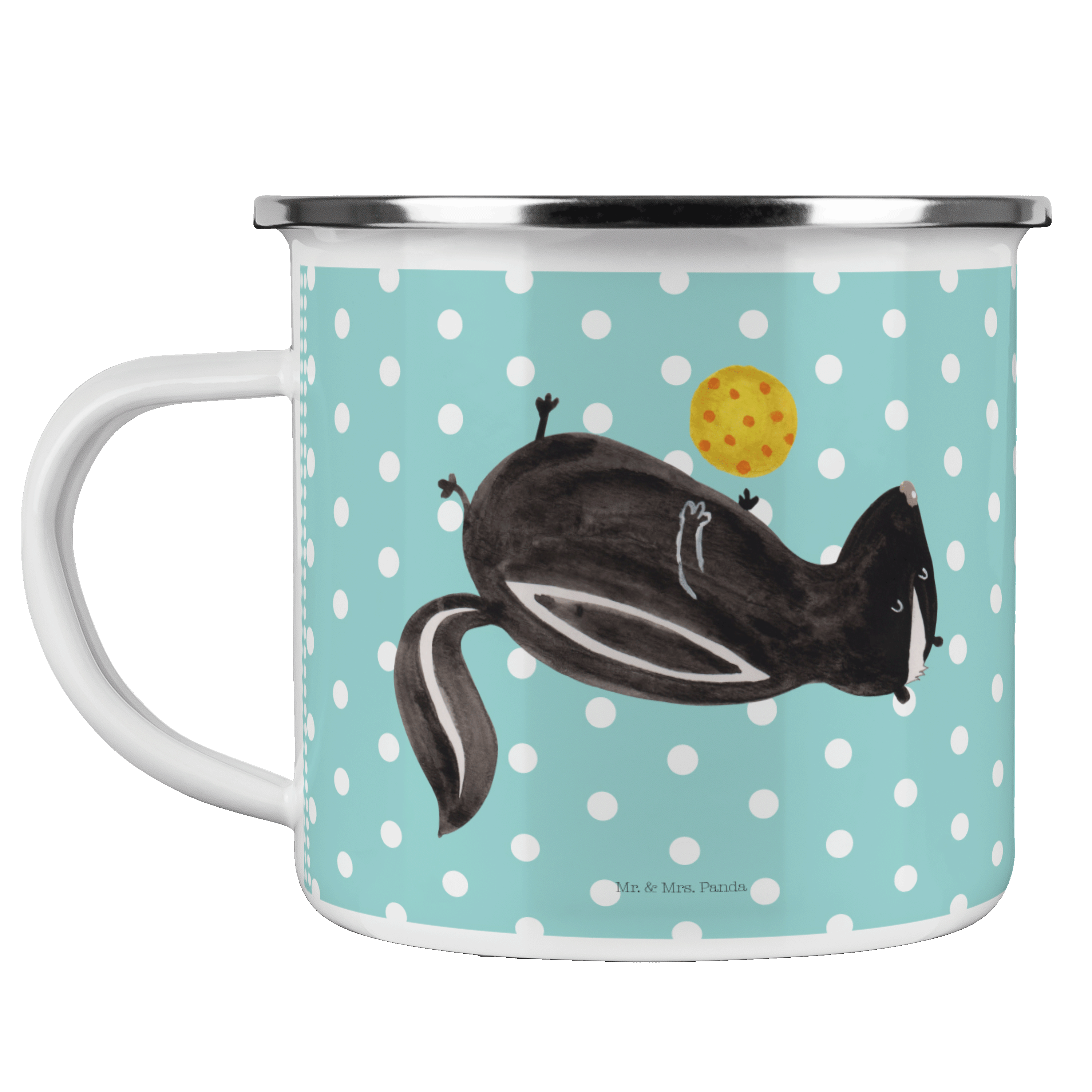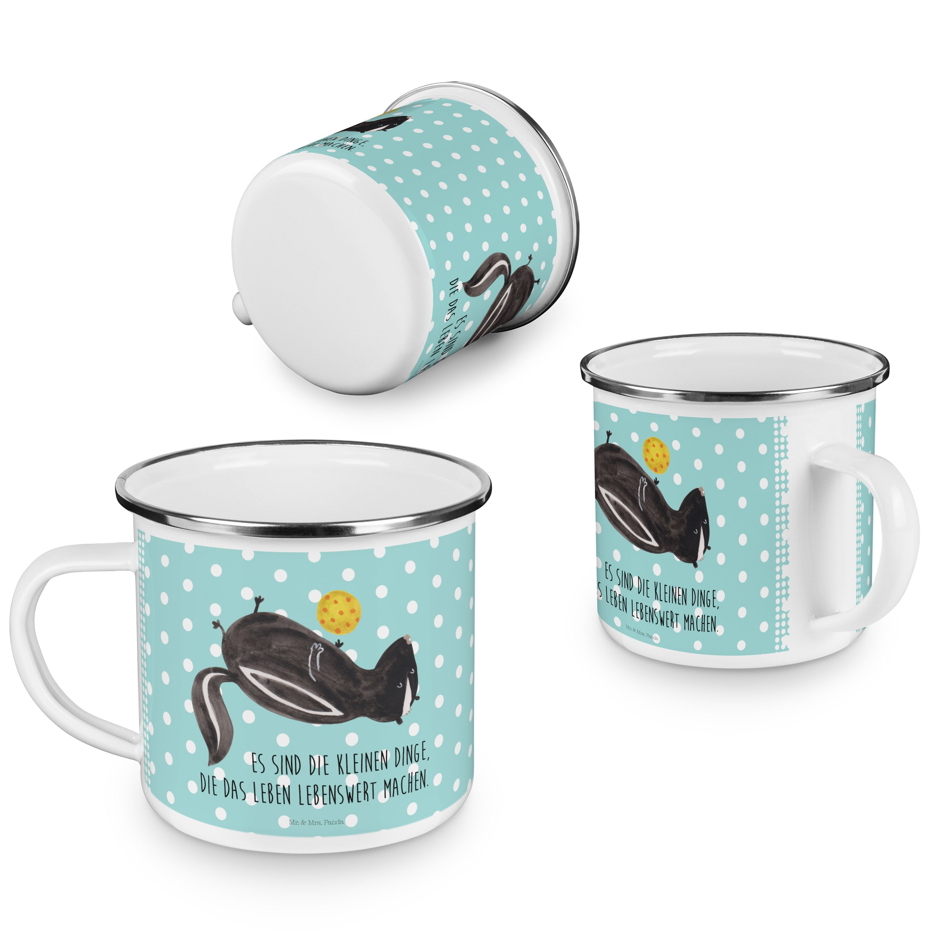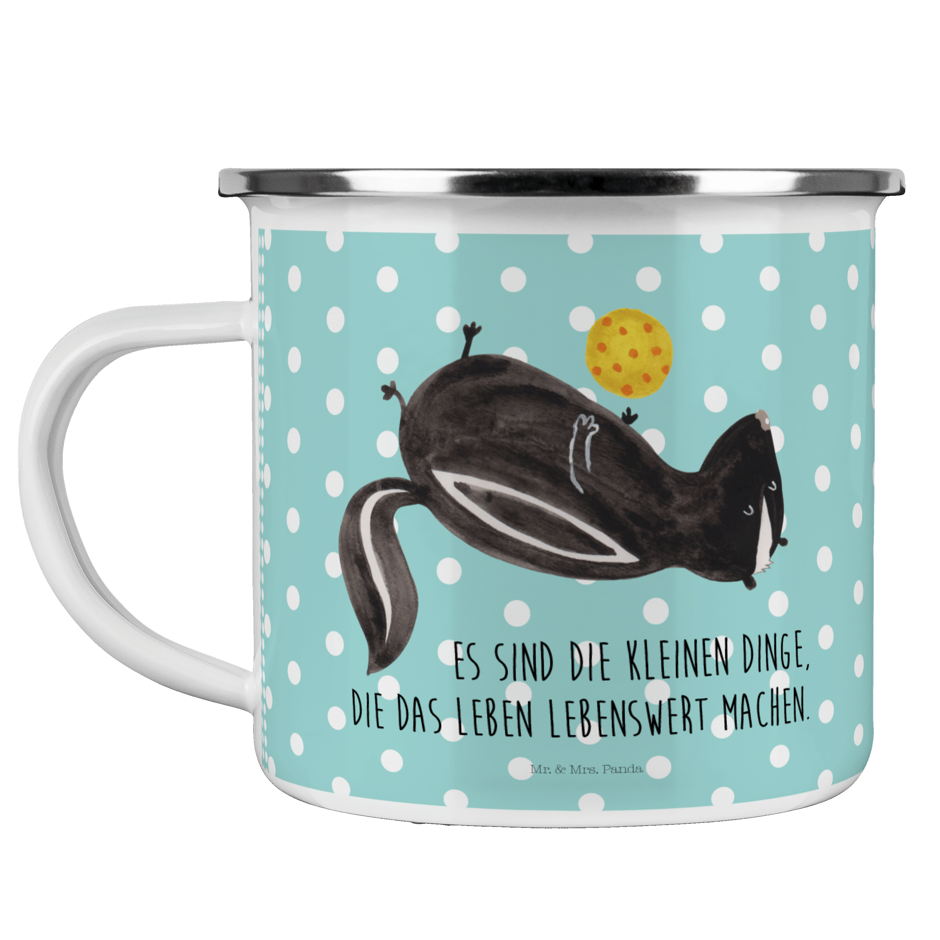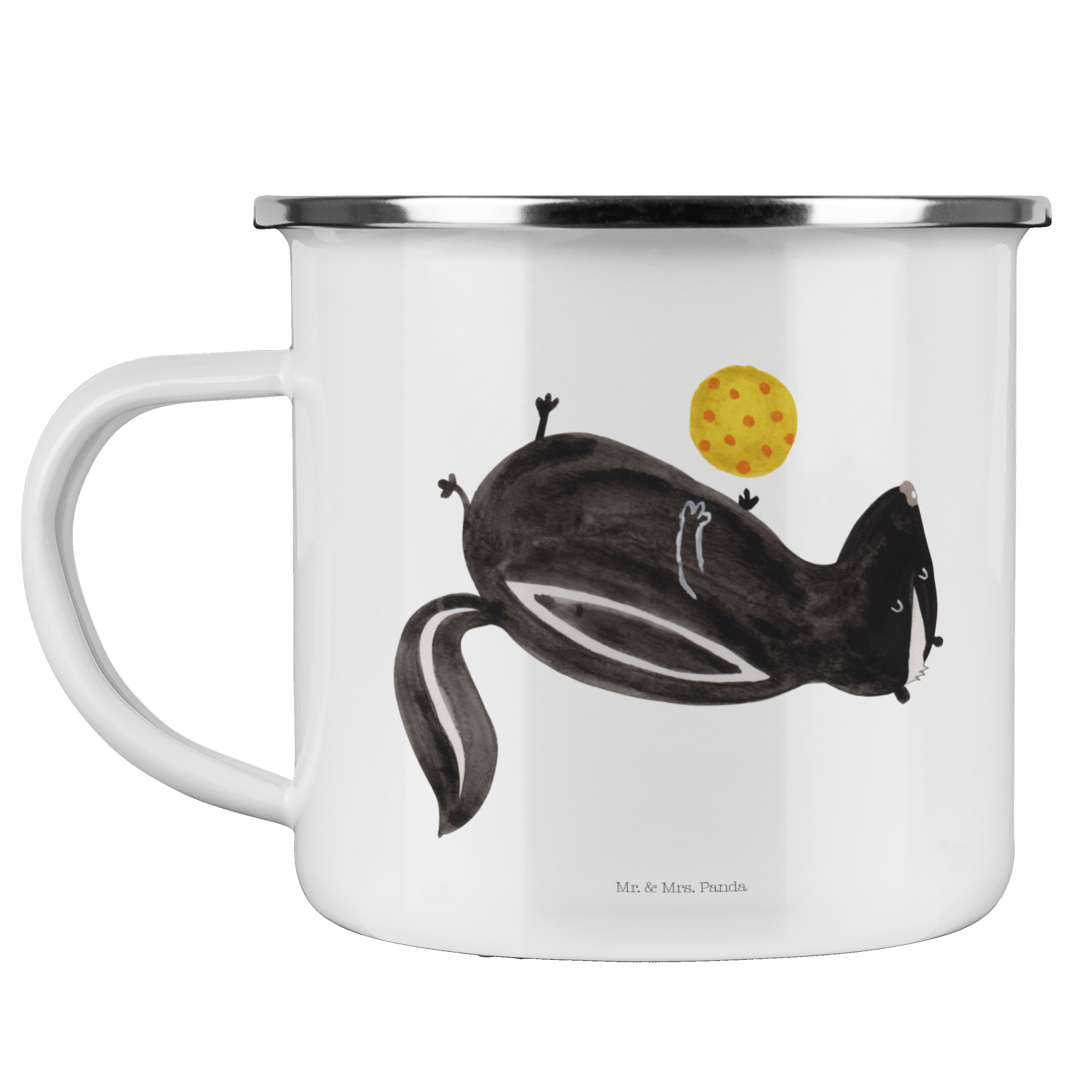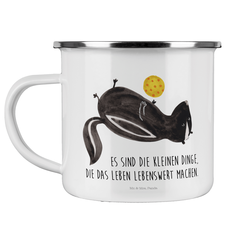 Camping Emaille Tasse Stinktier Ball - mit Spruch - Weiß