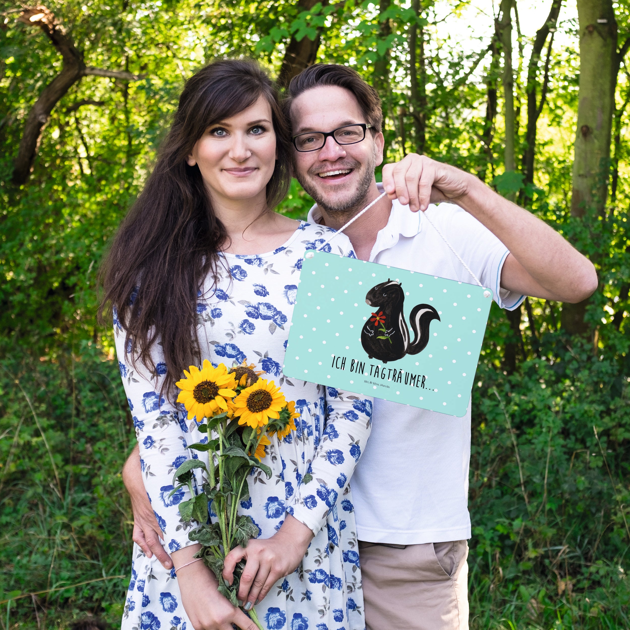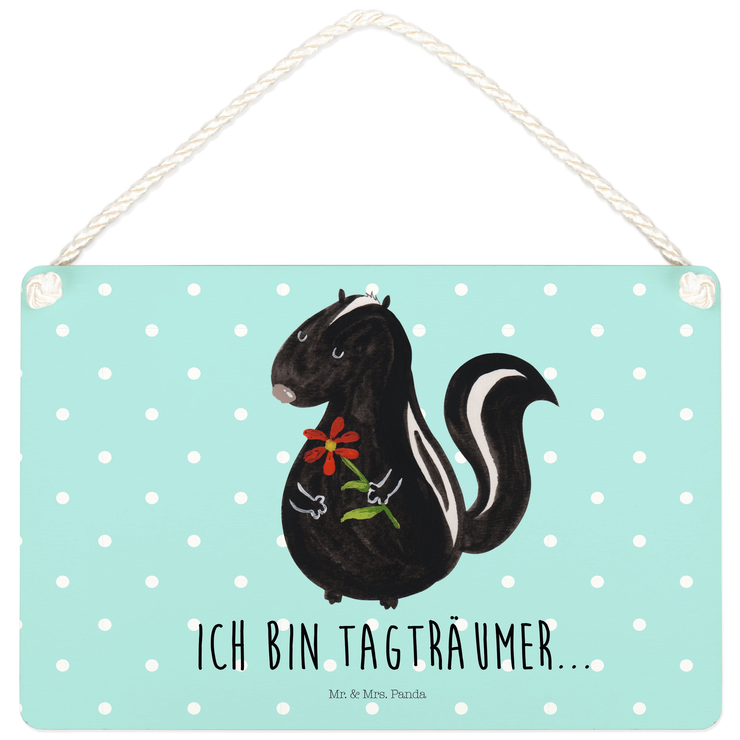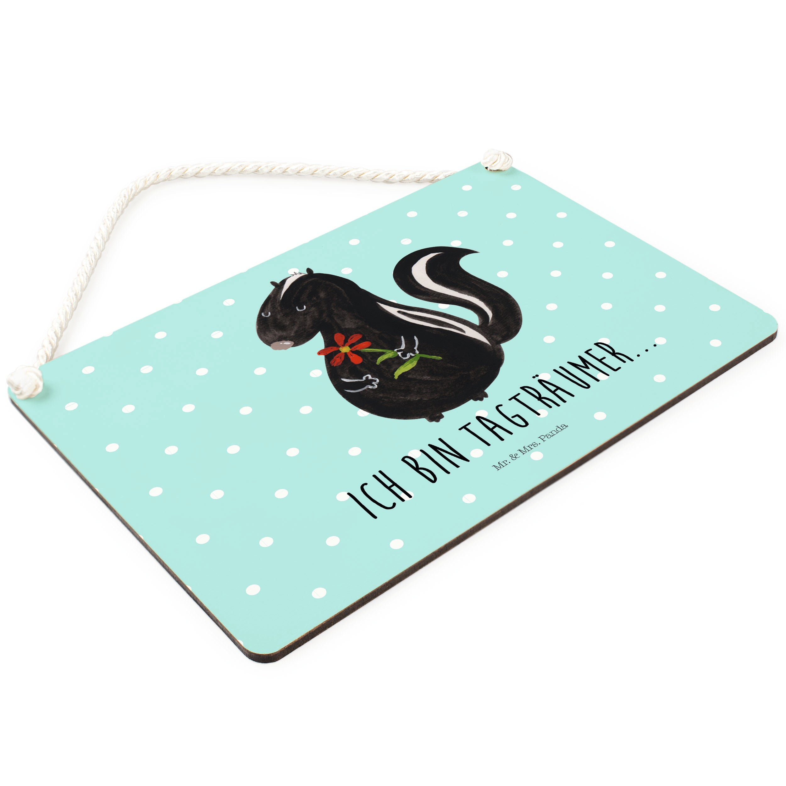 Deko Schild Stinktier Blume - mit Spruch - Türkis Pastell
