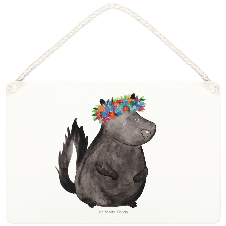 Deko Schild Stinktier Blumenmaedchen - ohne Spruch - Weiß