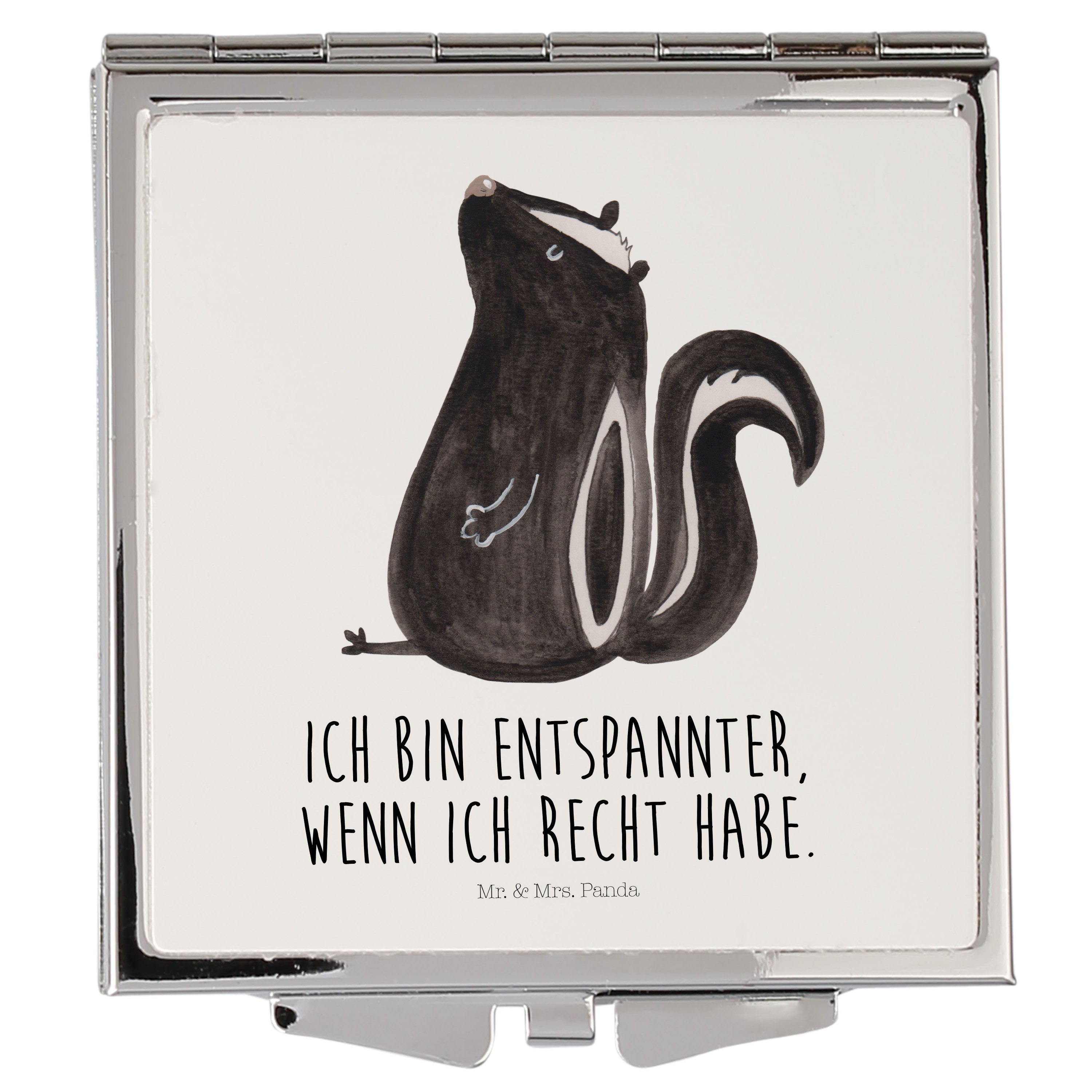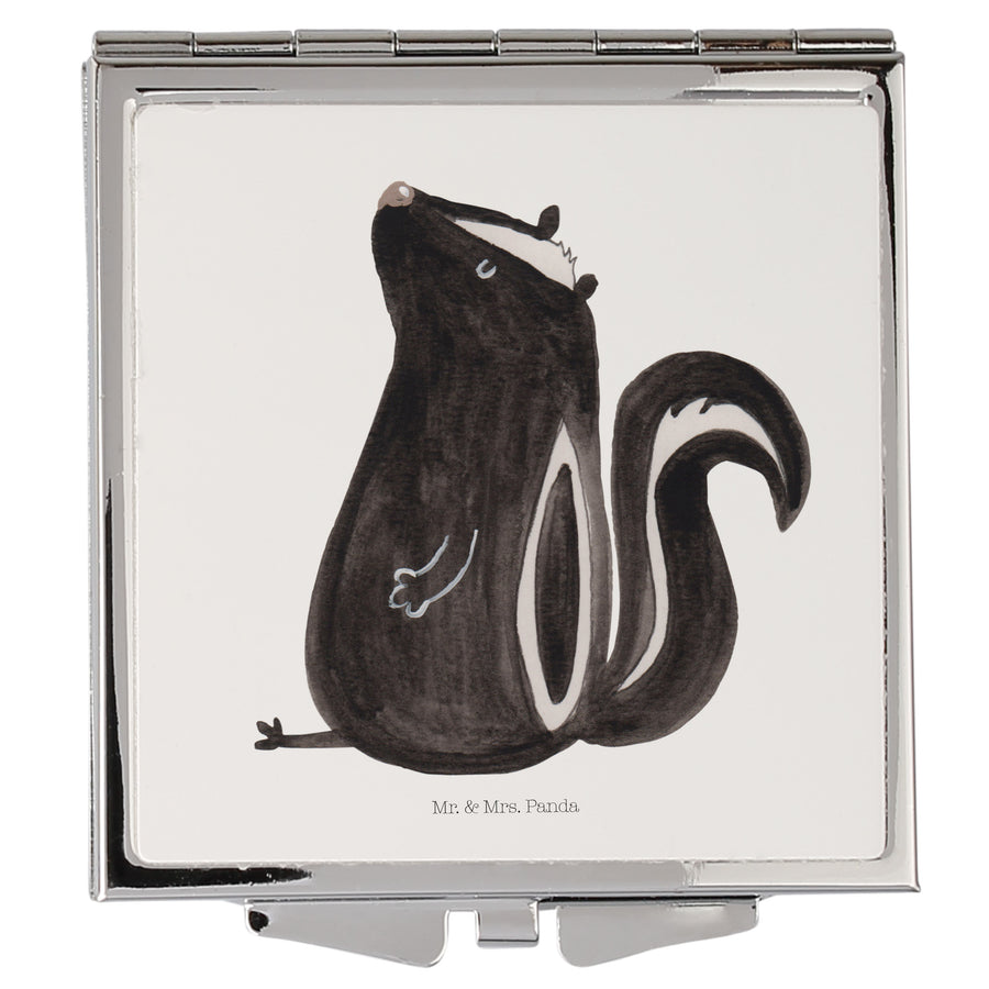 Handtaschenspiegel quadratisch Stinktier sitzend - ohne Spruch - Weiß