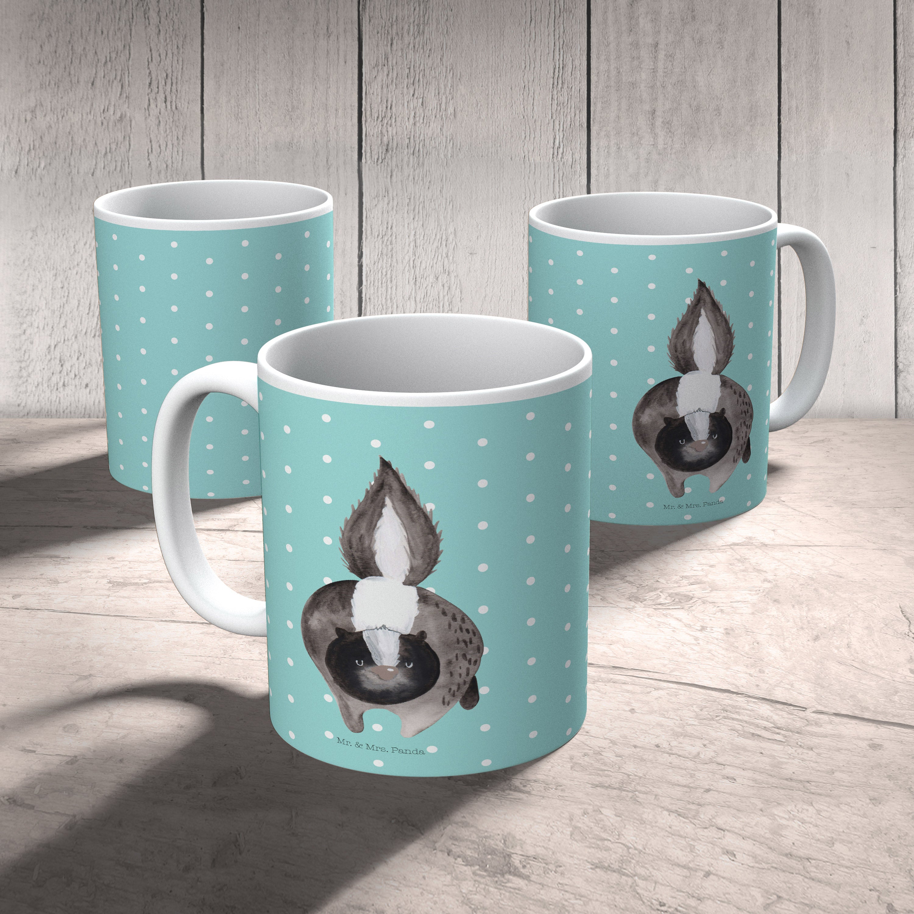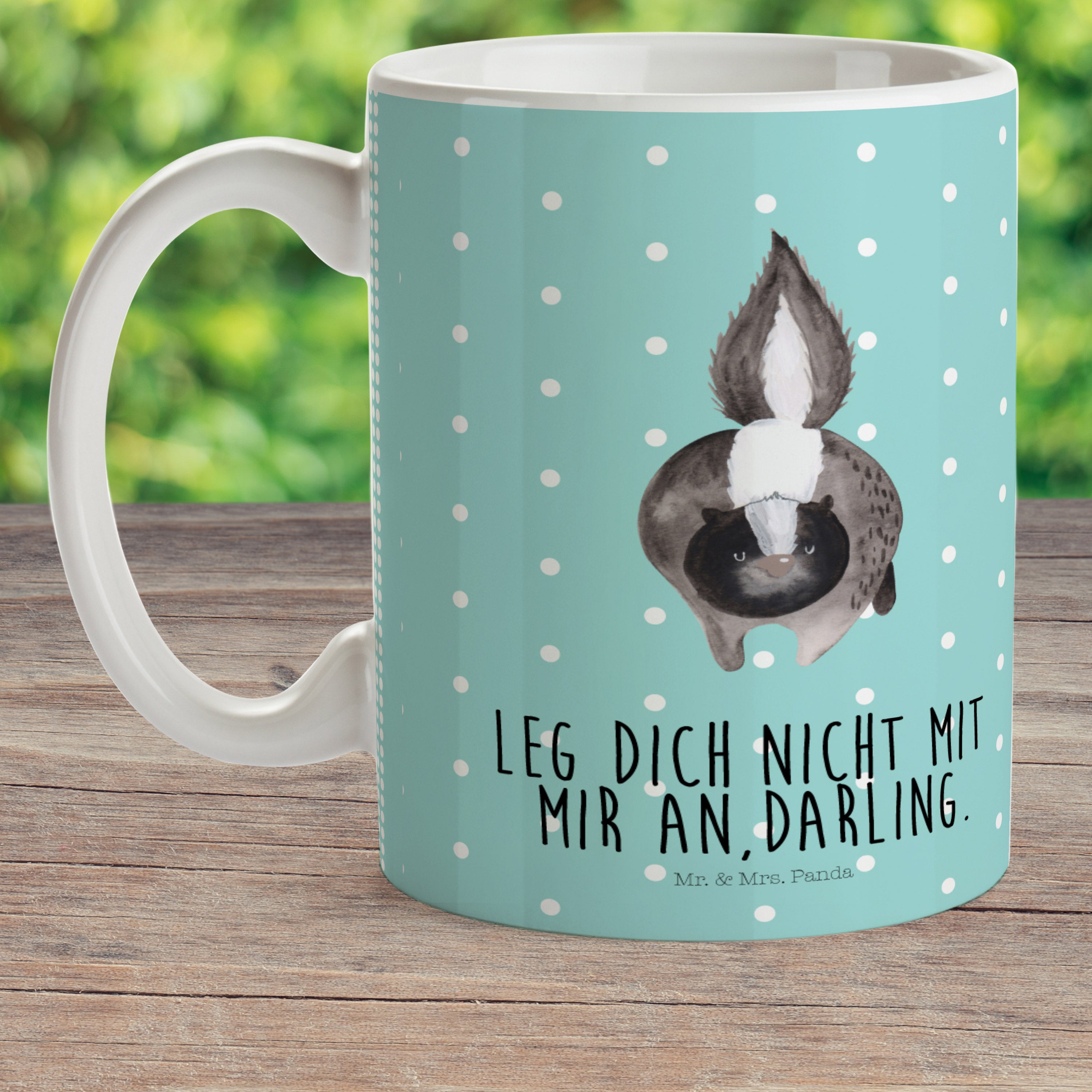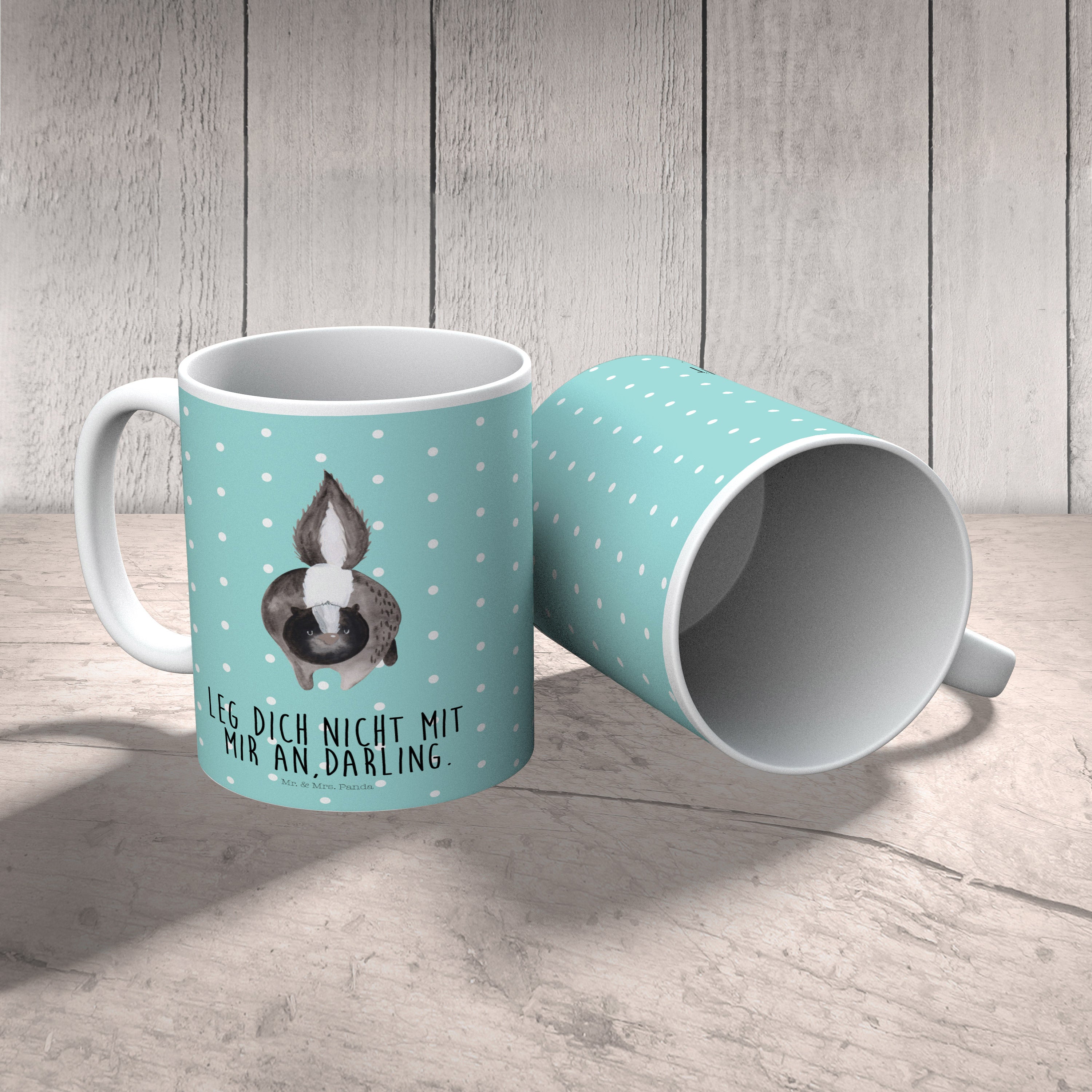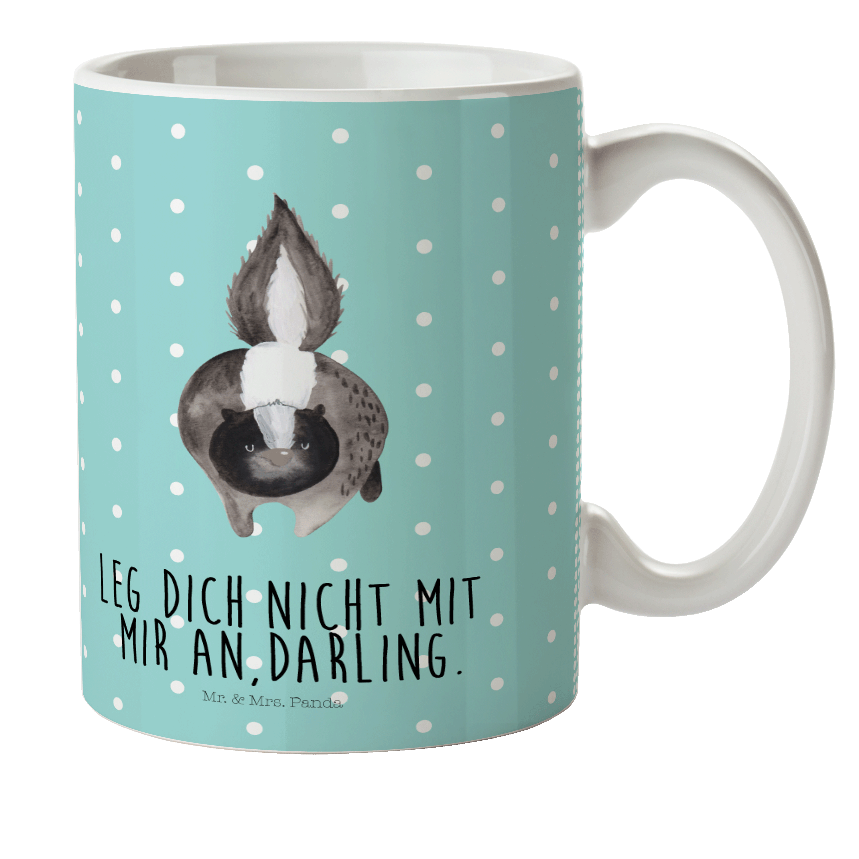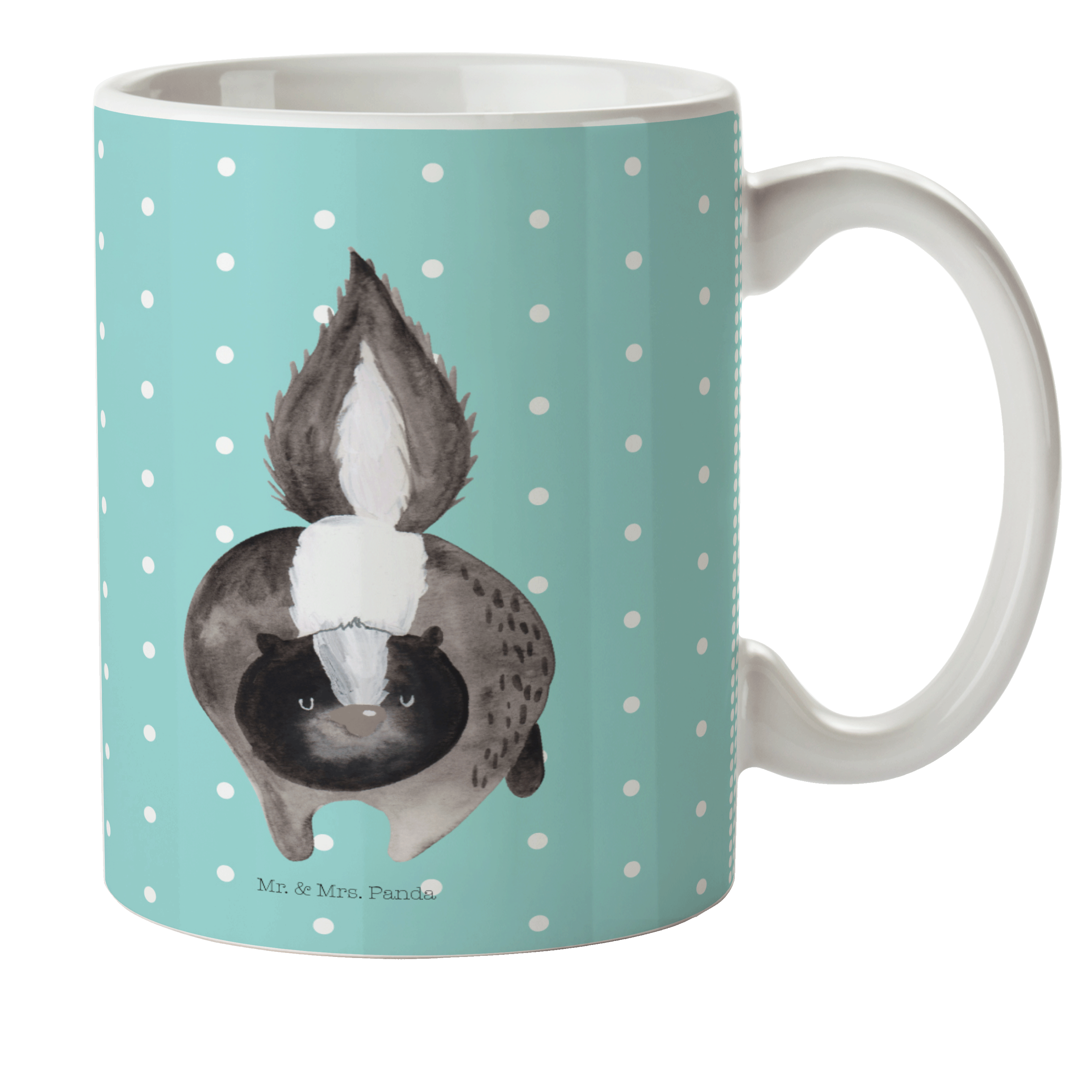 Kindertasse Stinktier Angriff - mit Spruch - Türkis Pastell