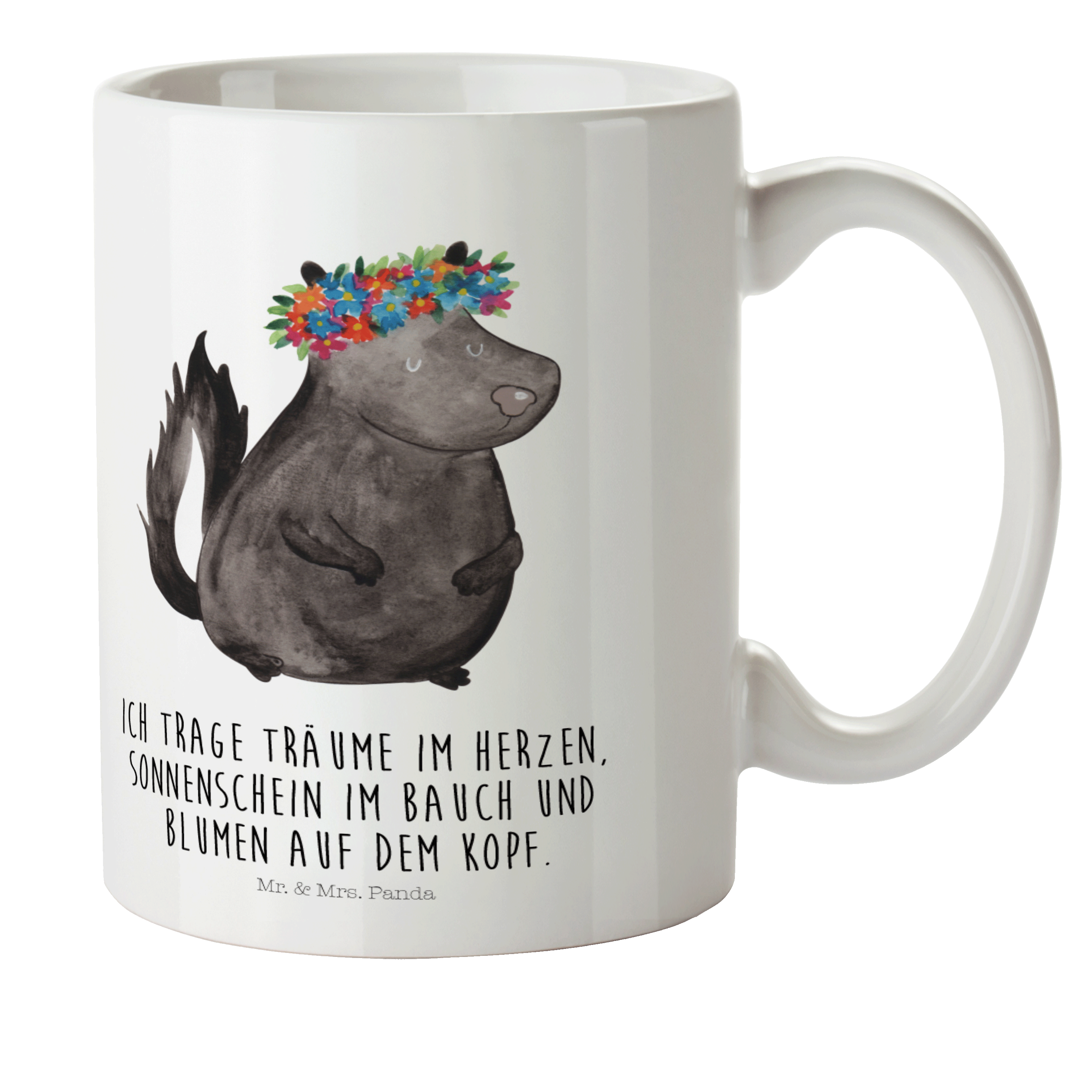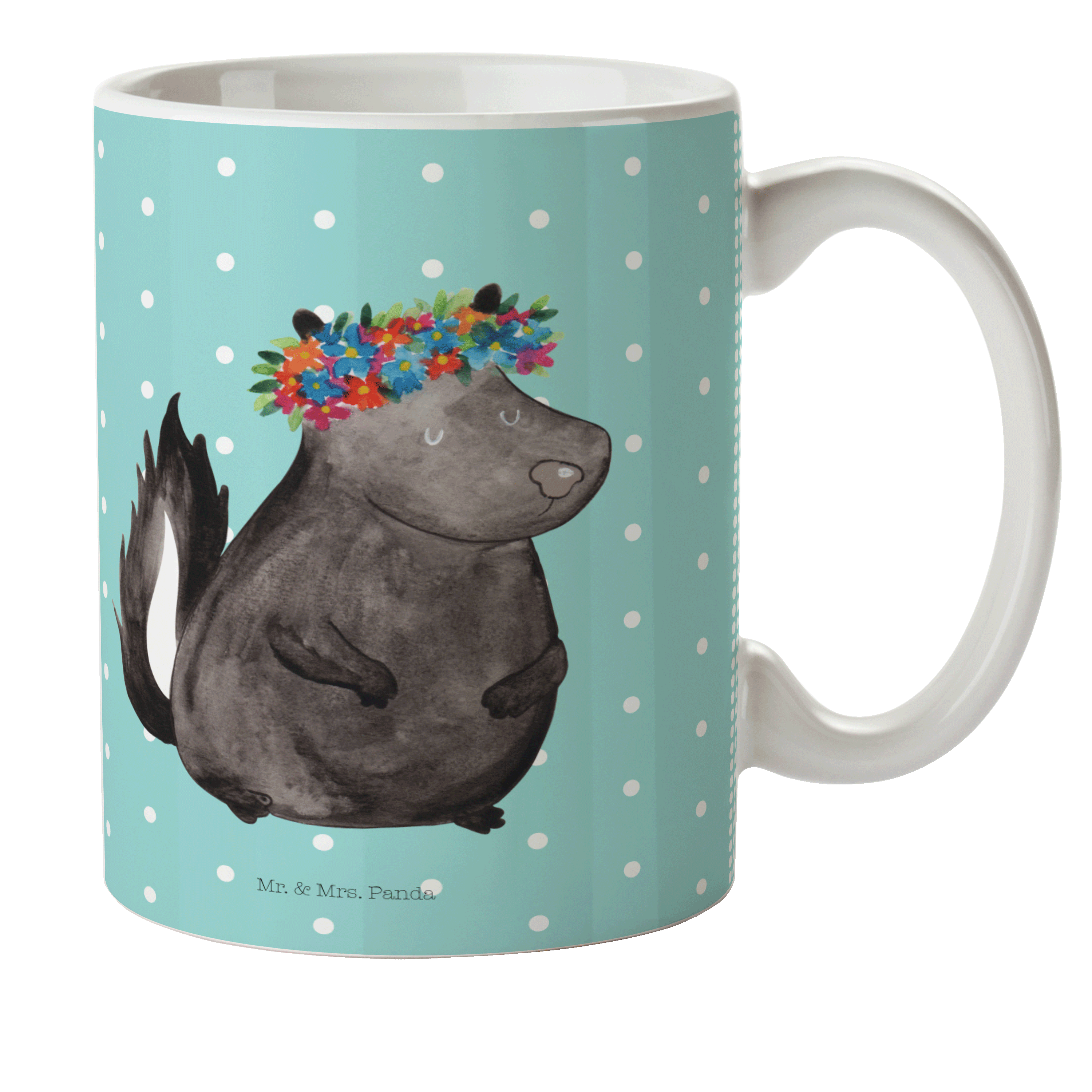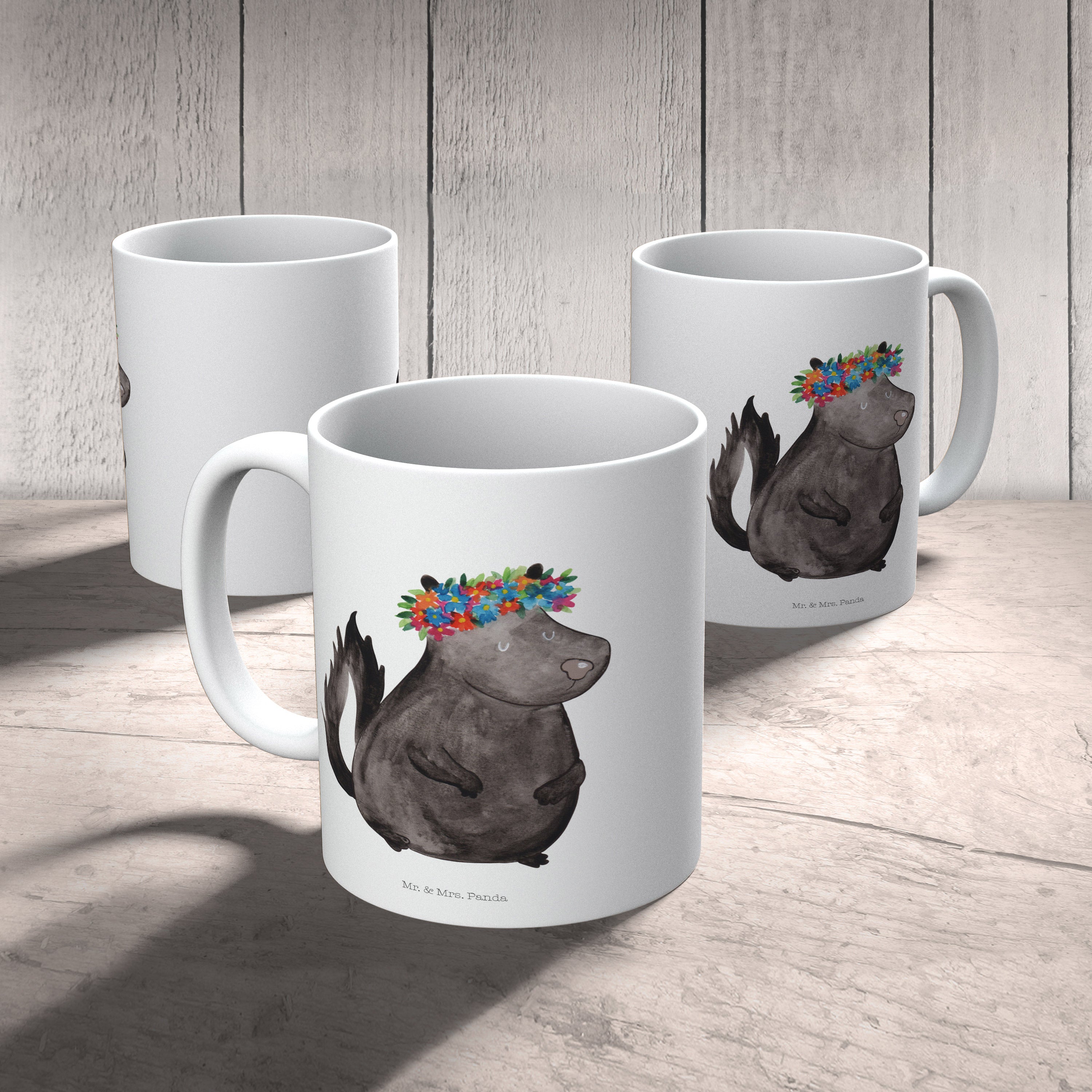 Es gibt nichts Schöneres, als die Natur in ihrer puren Form zu erleben. Das Stinktier Blumenmädchen-Motiv von Mr. & Mrs. Panda präsentiert die wundervolle Natur auf eine besondere und einzigartige Art und Weise. Das süße Stinktier mit einem bunten Blumenkranz auf dem Kopf erfüllt Dich mit Freude und ihm zu begegnen, macht Deinen Tag einzigartig. Es ist nicht nur ein Kunstwerk, sondern auch ein Symbol der Schönheit, die in der Natur zu finden ist.