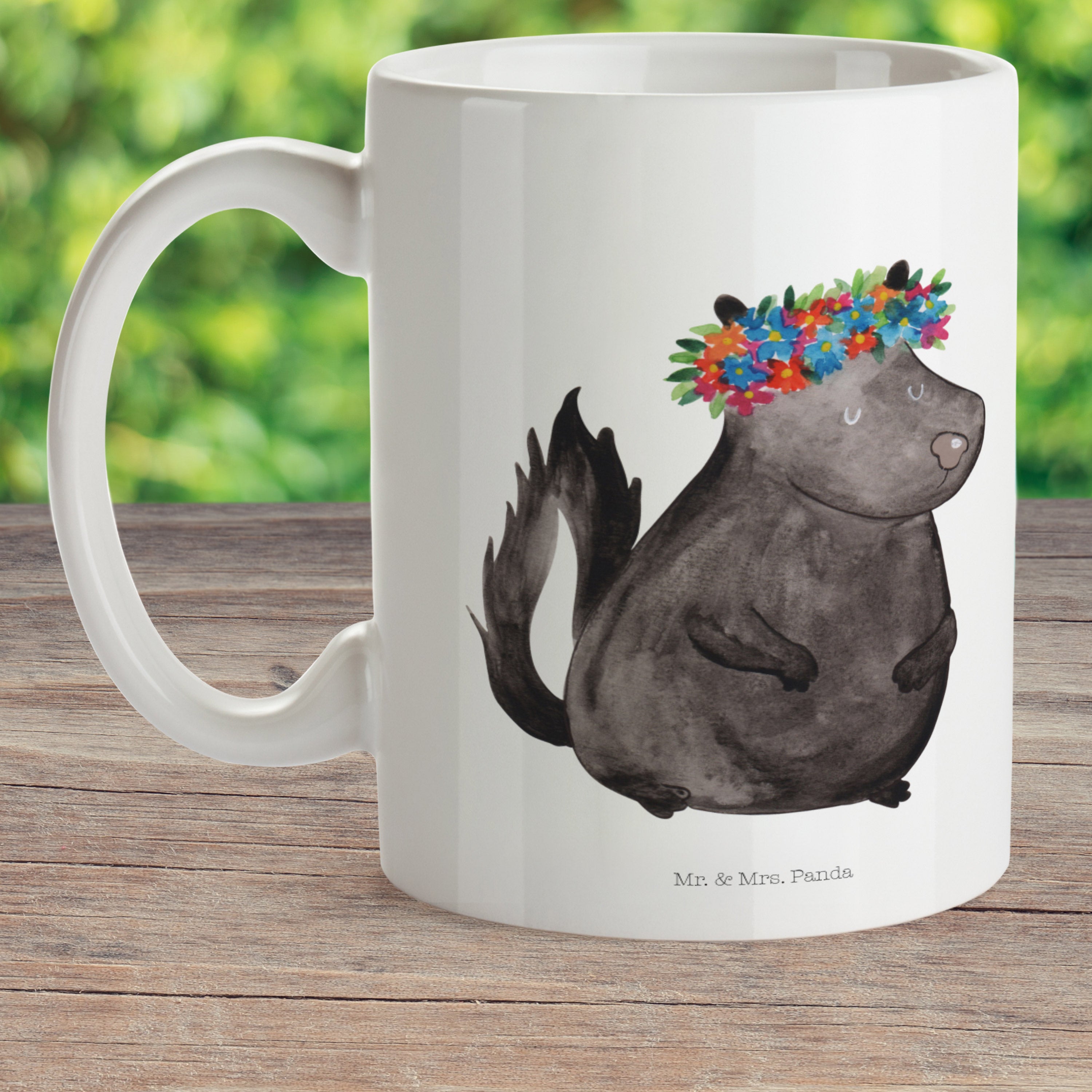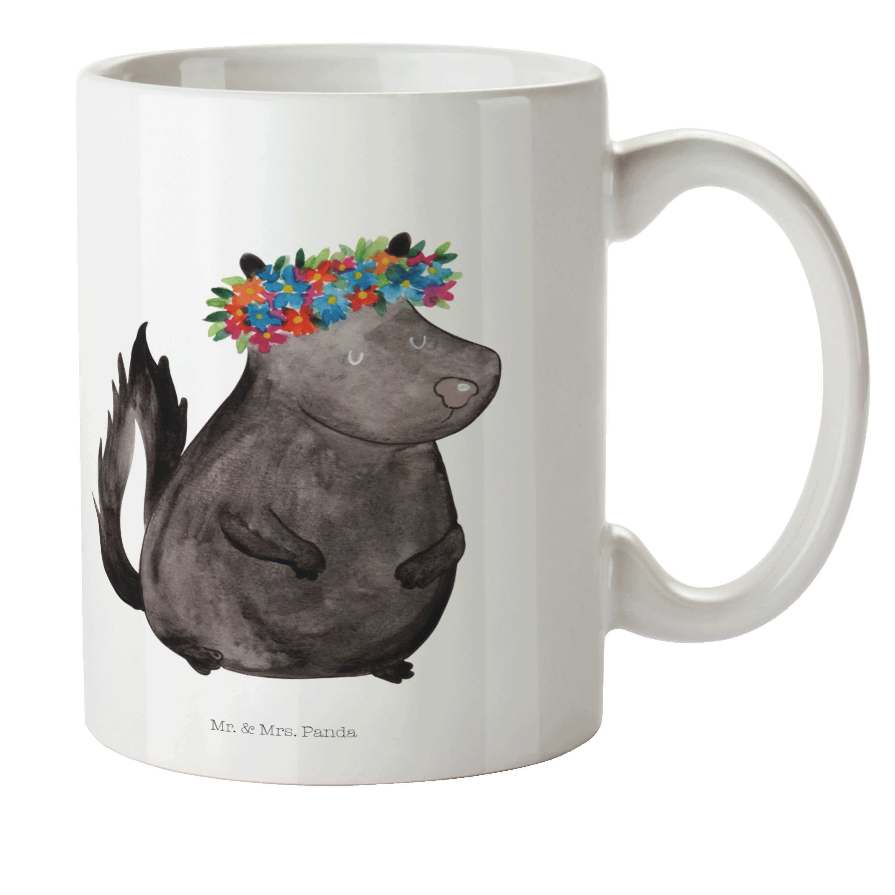 Kindertasse Stinktier Blumenmaedchen - mit Spruch - Weiß