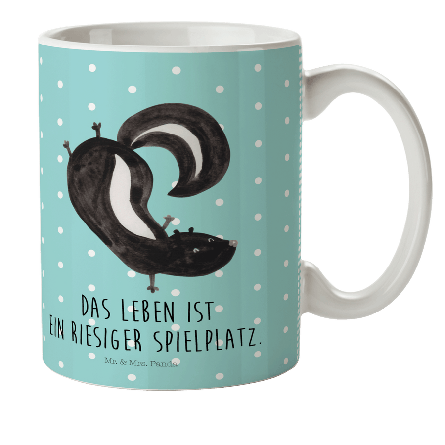 Kindertasse Stinktier Handstand - mit Spruch - Türkis Pastell
