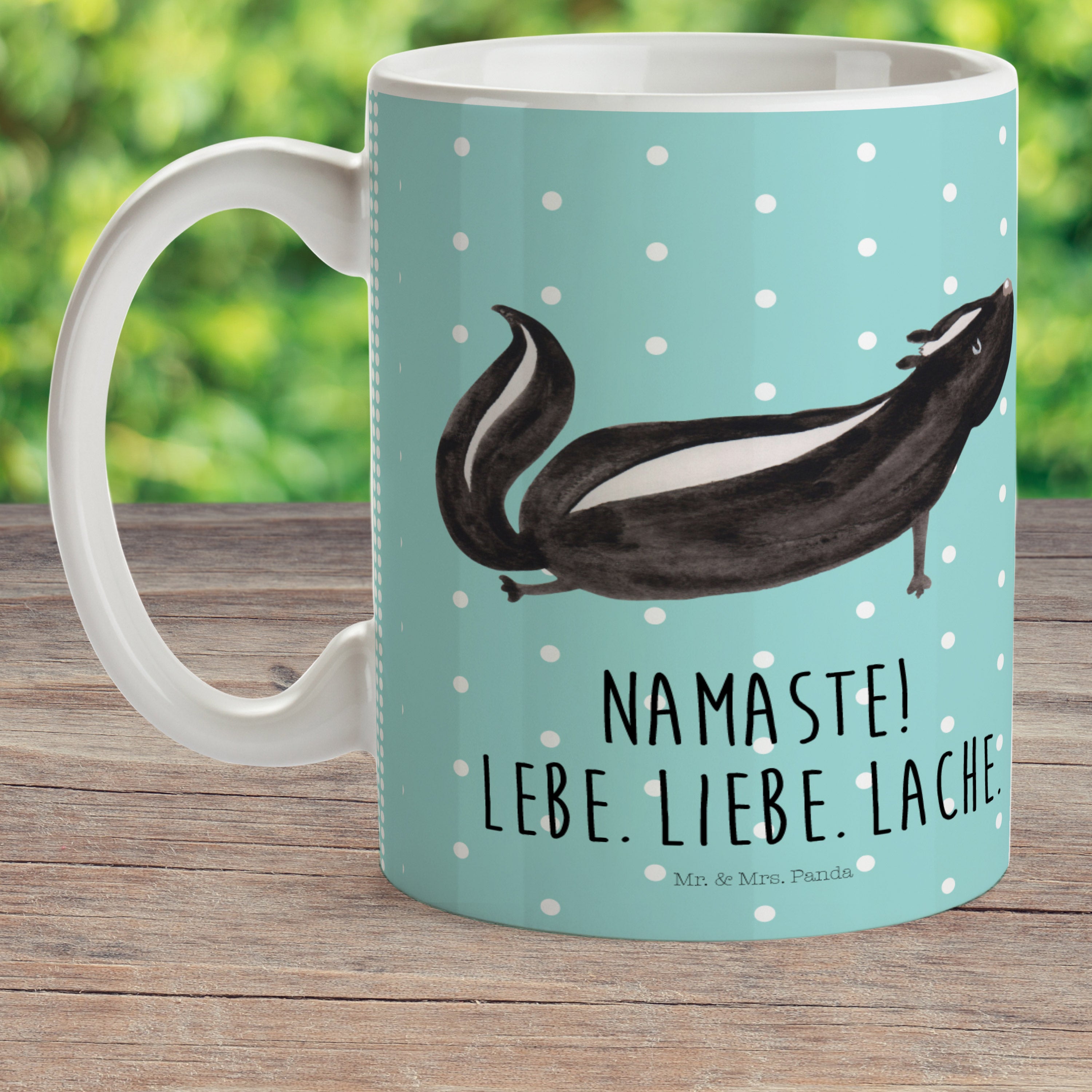 Das Stinktier Yoga-Motiv von Mr. & Mrs. Panda im Aquarellstil ist nicht nur ein Hingucker an der Wand, sondern erinnert dich auch daran, etwas für dich und deinen Körper zu tun. Hänge es in deinen Lieblingsraum, wo du Yoga praktizierst, und lass dich von dem süßen Motiv inspirieren und motivieren.