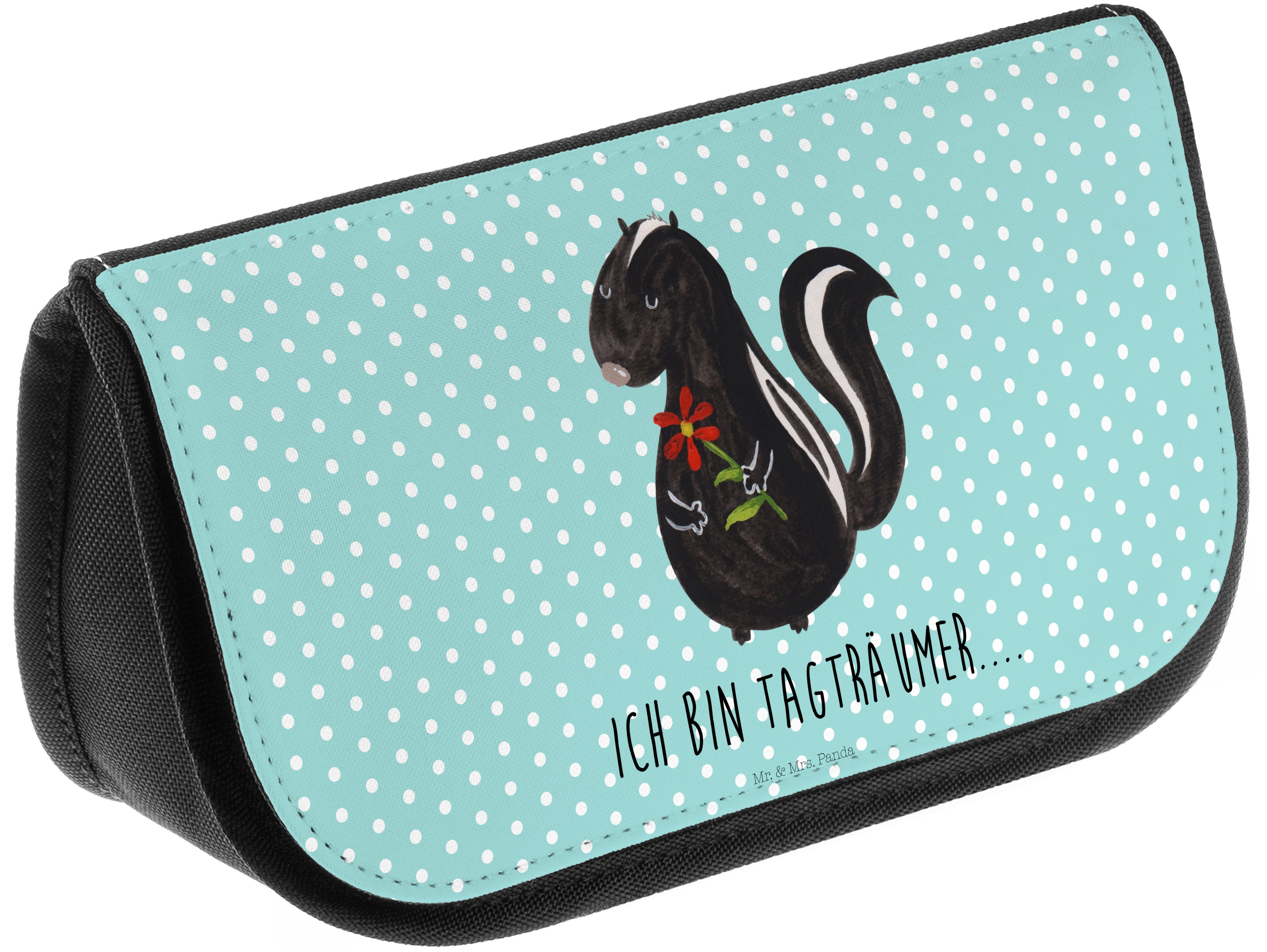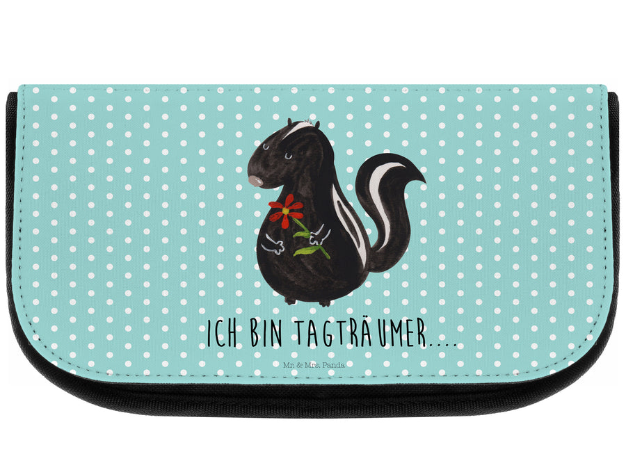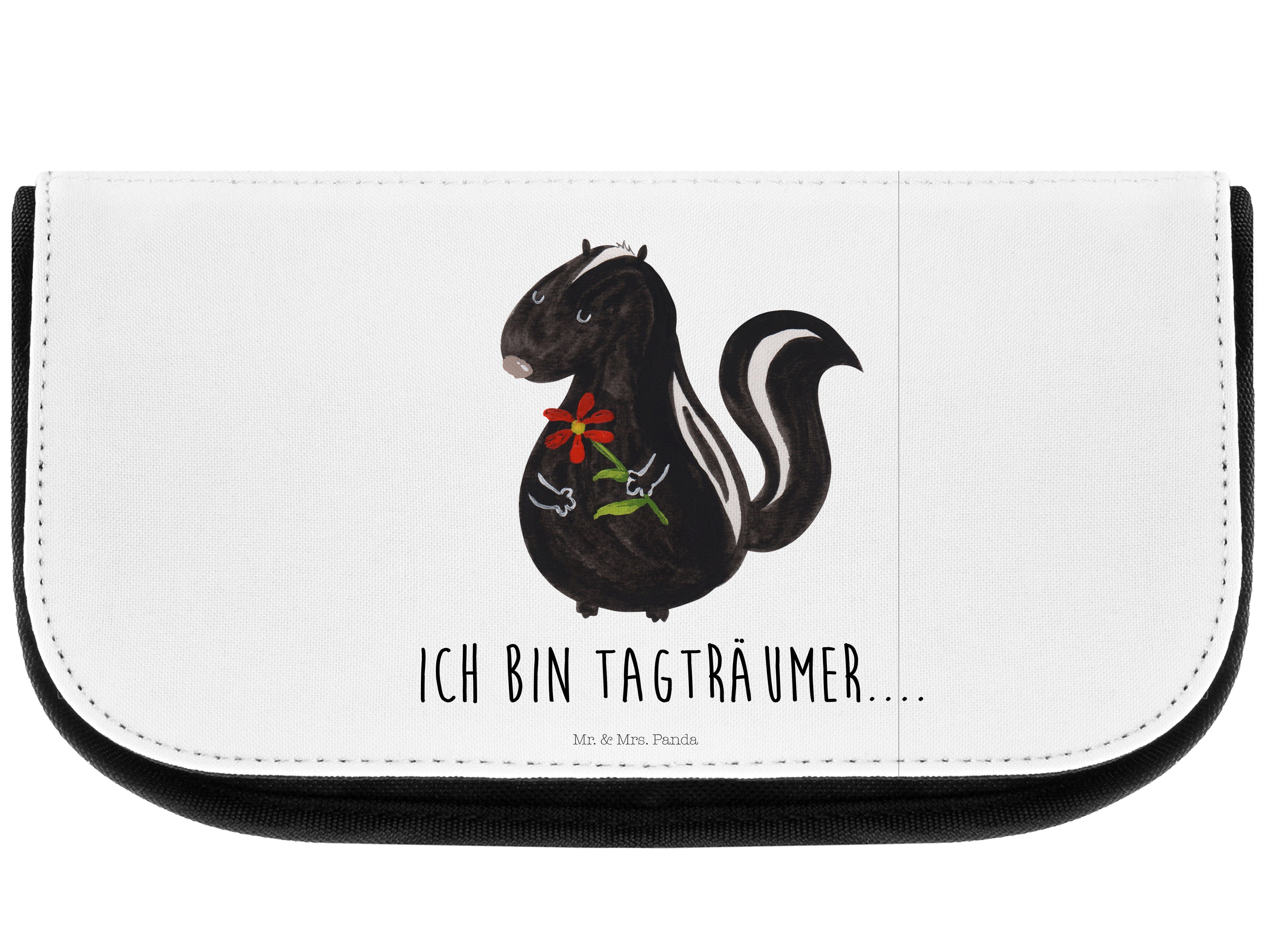 Kosmetiktasche Stinktier Blume Kosmetikbeutel, Kulturtasche, Kulturbeutel, Schminktasche, Make-Up Tasche, Stinktier, Skunk, Wildtier, Raubtier, Stinker, Stinki, Tagträumer, verträumt, Dreams, Träume