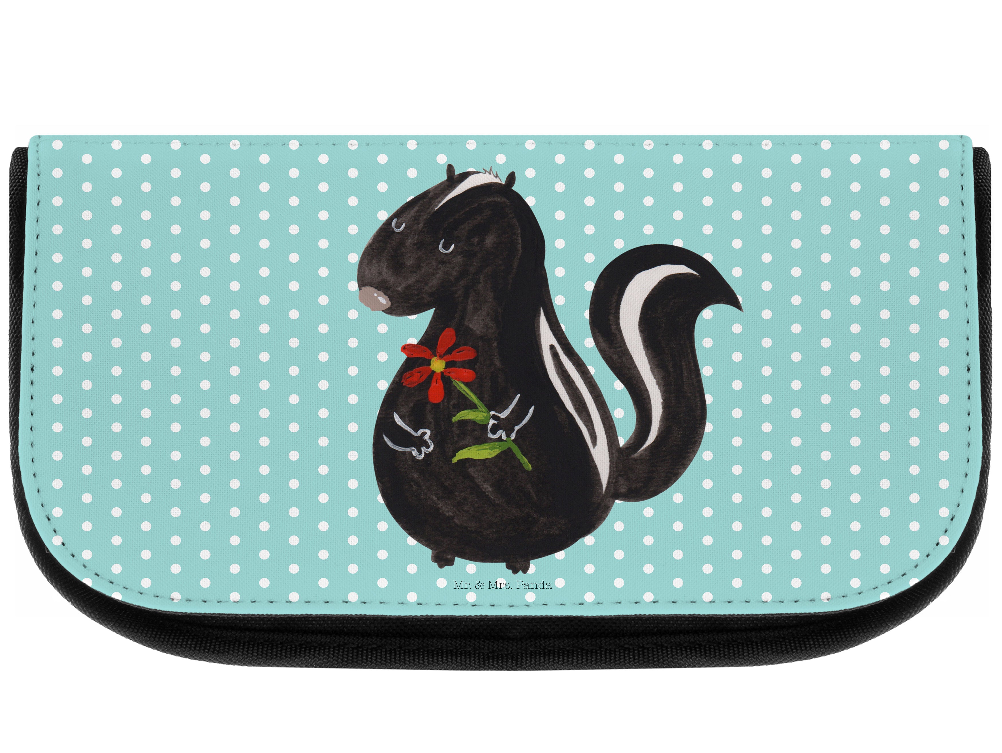 Kosmetiktasche Stinktier Blume - mit Spruch - Türkis Pastell