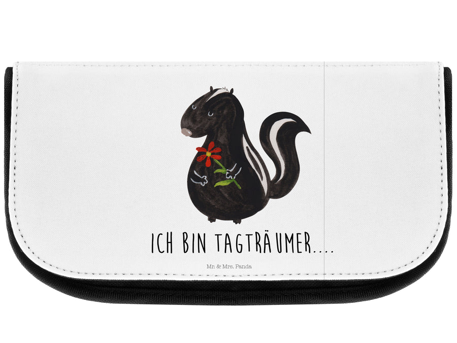 Kosmetiktasche Stinktier Blume - mit Spruch - Weiß