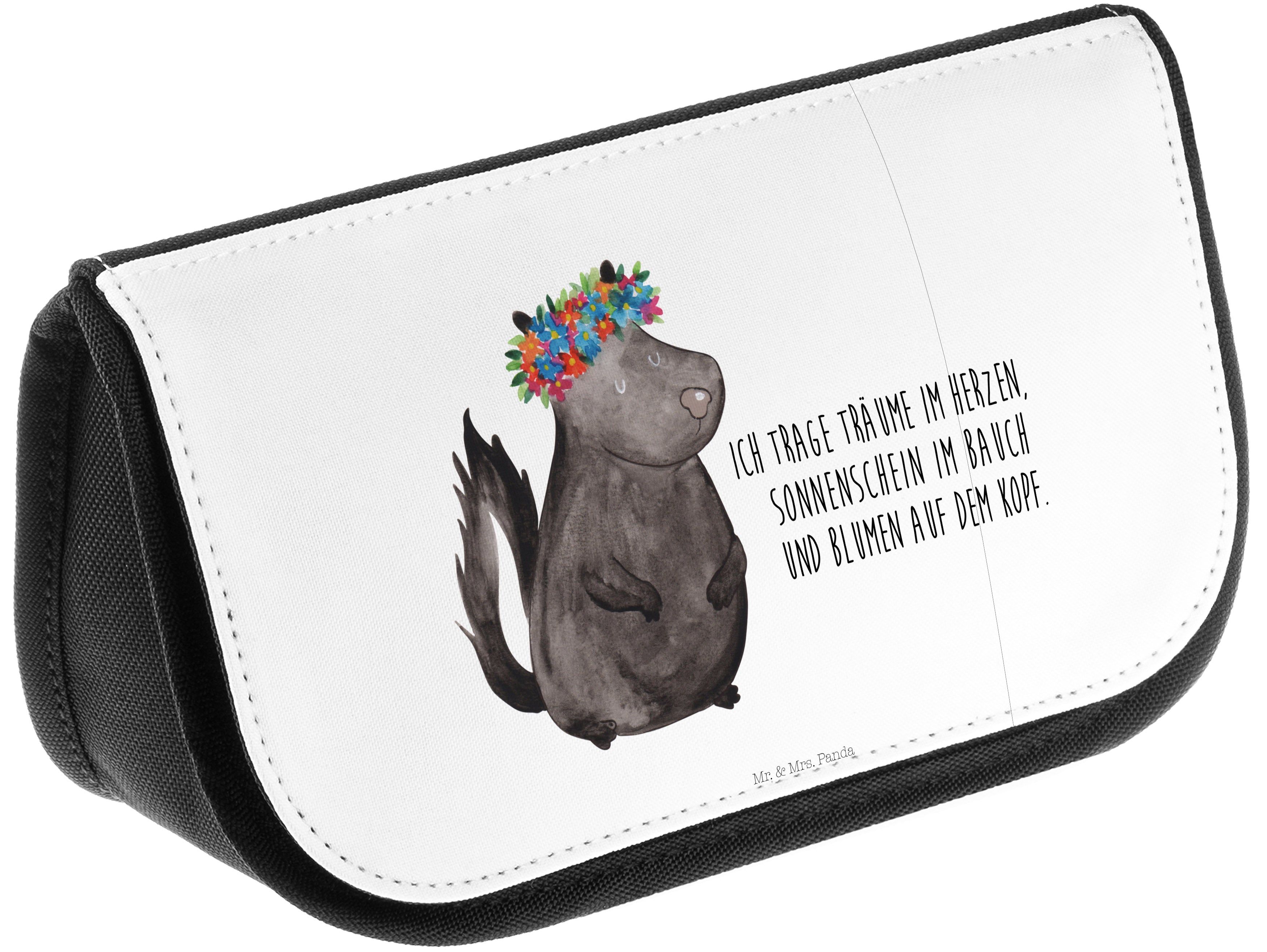 Kosmetiktasche Stinktier Blumenmaedchen - ohne Spruch - Weiß