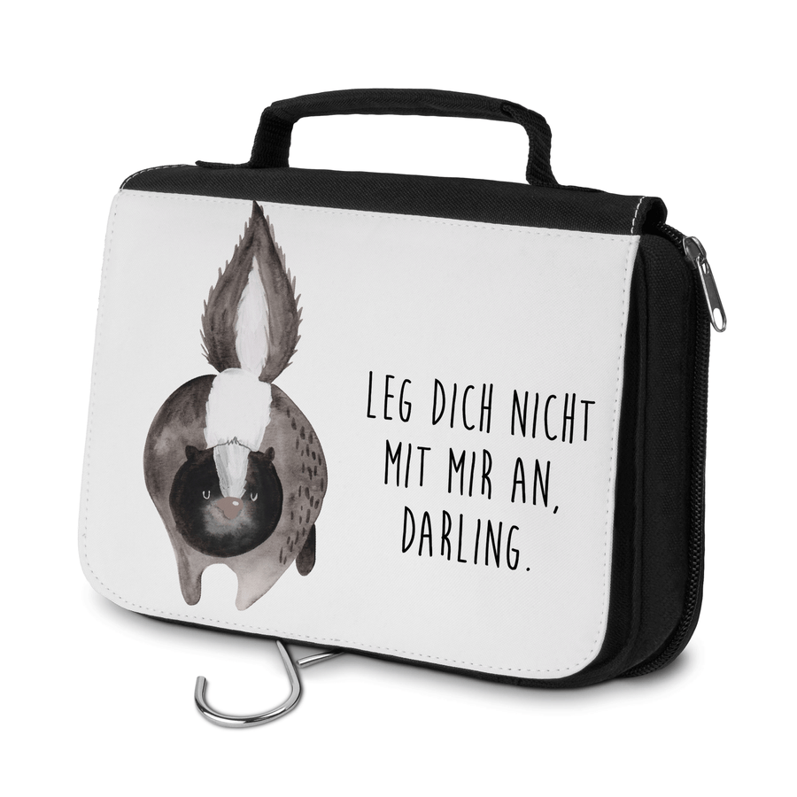 Kulturbeutel Stinktier Angriff - mit Spruch - Weiß
