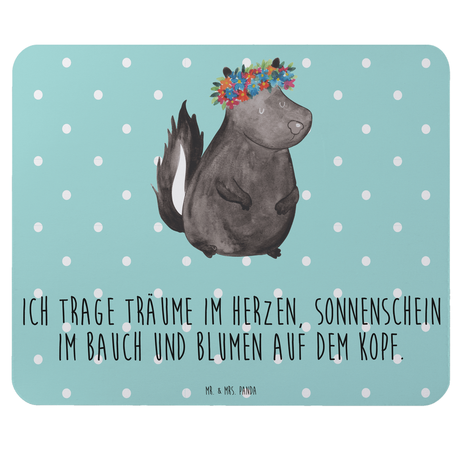 Mauspad Stinktier Blumenmaedchen - mit Spruch - Türkis Pastell