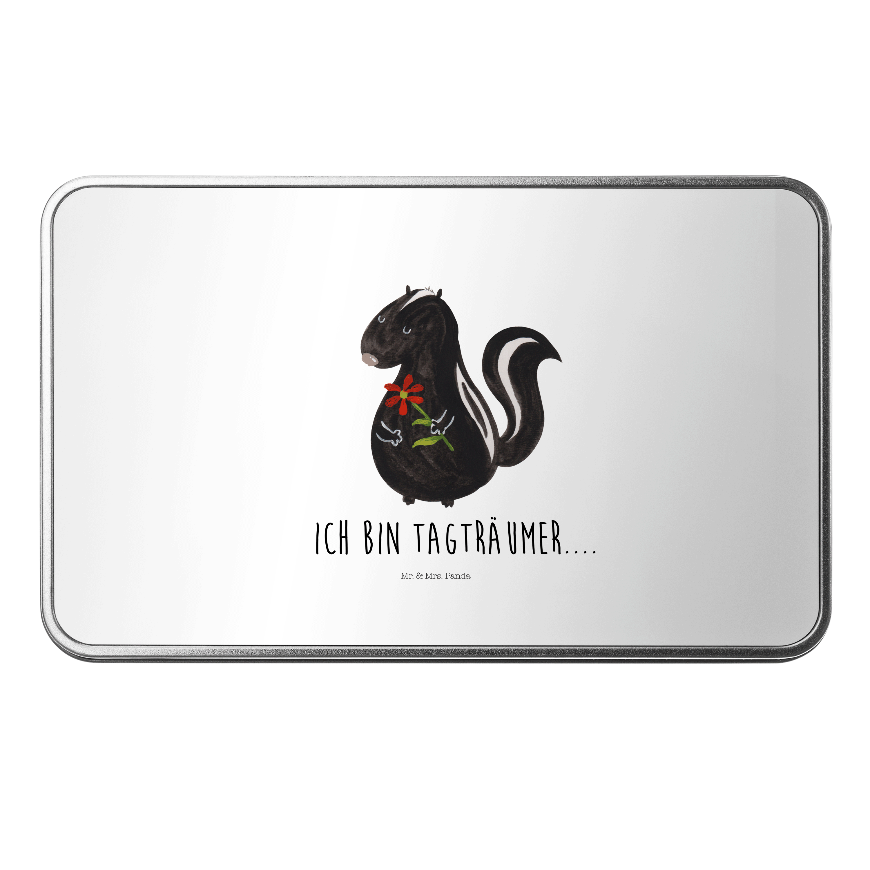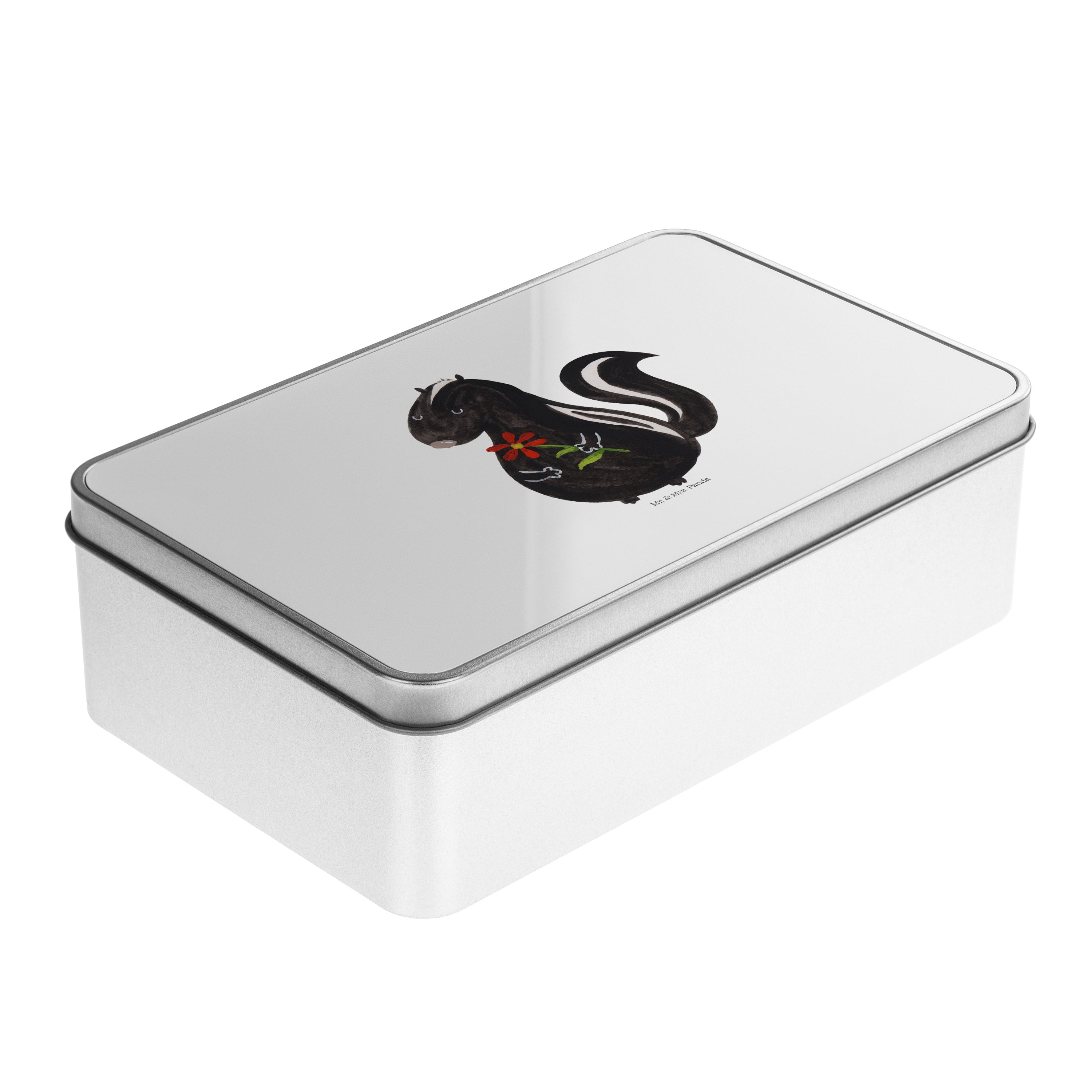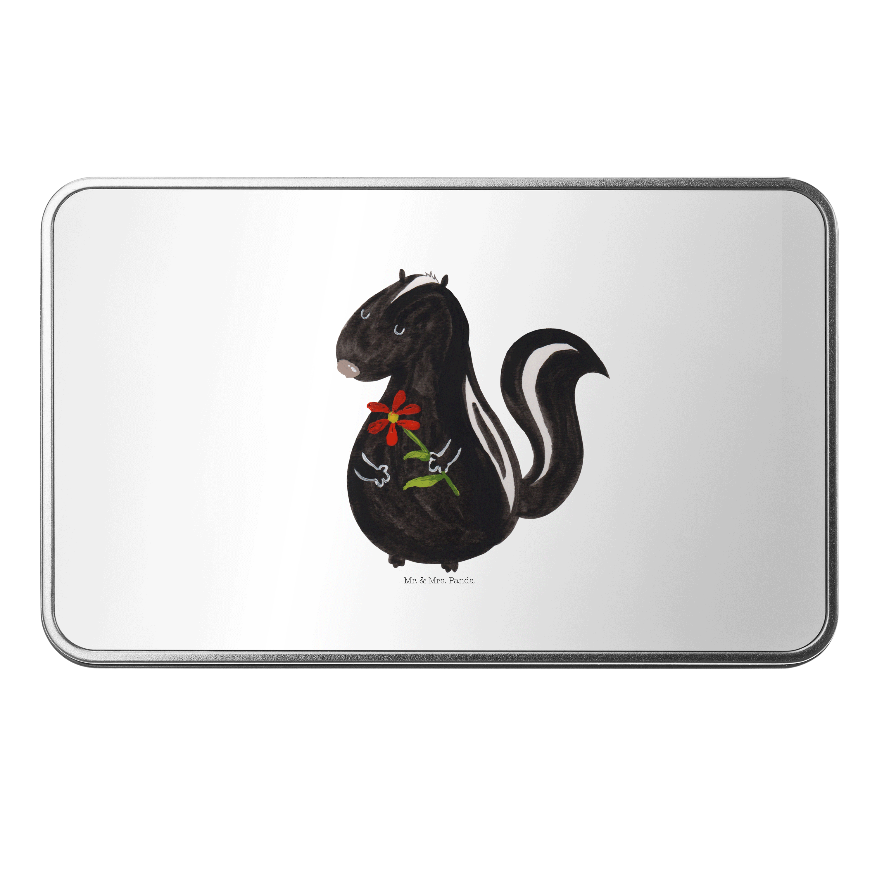 Metalldose rechteckig Stinktier Blume - mit Spruch - Weiß