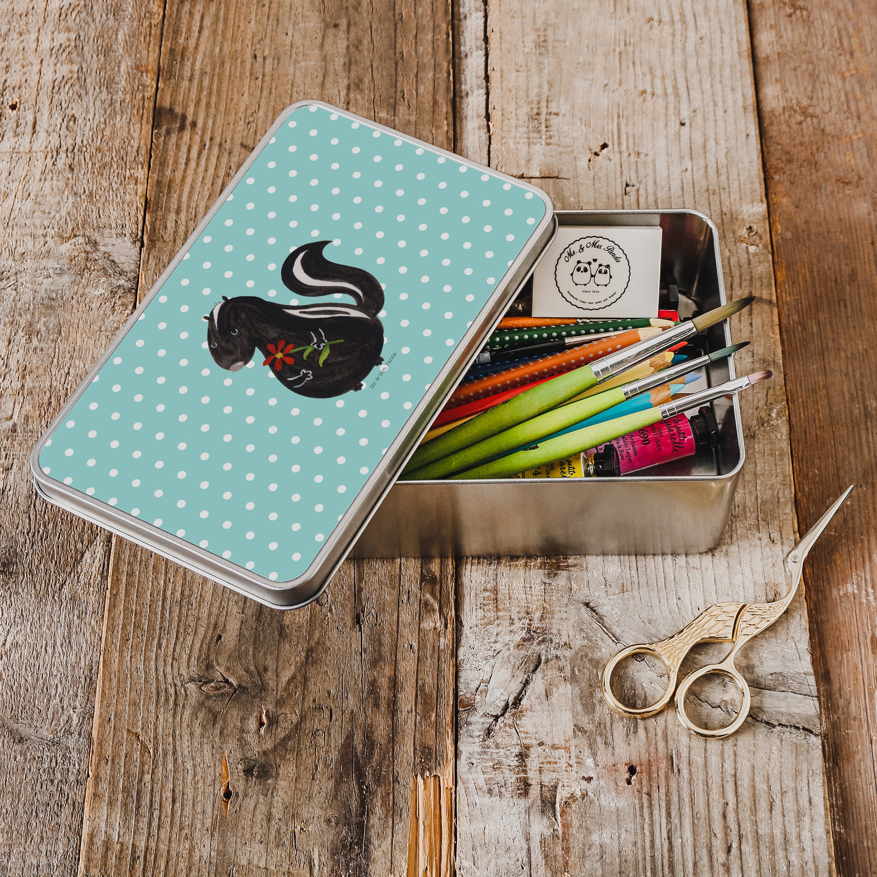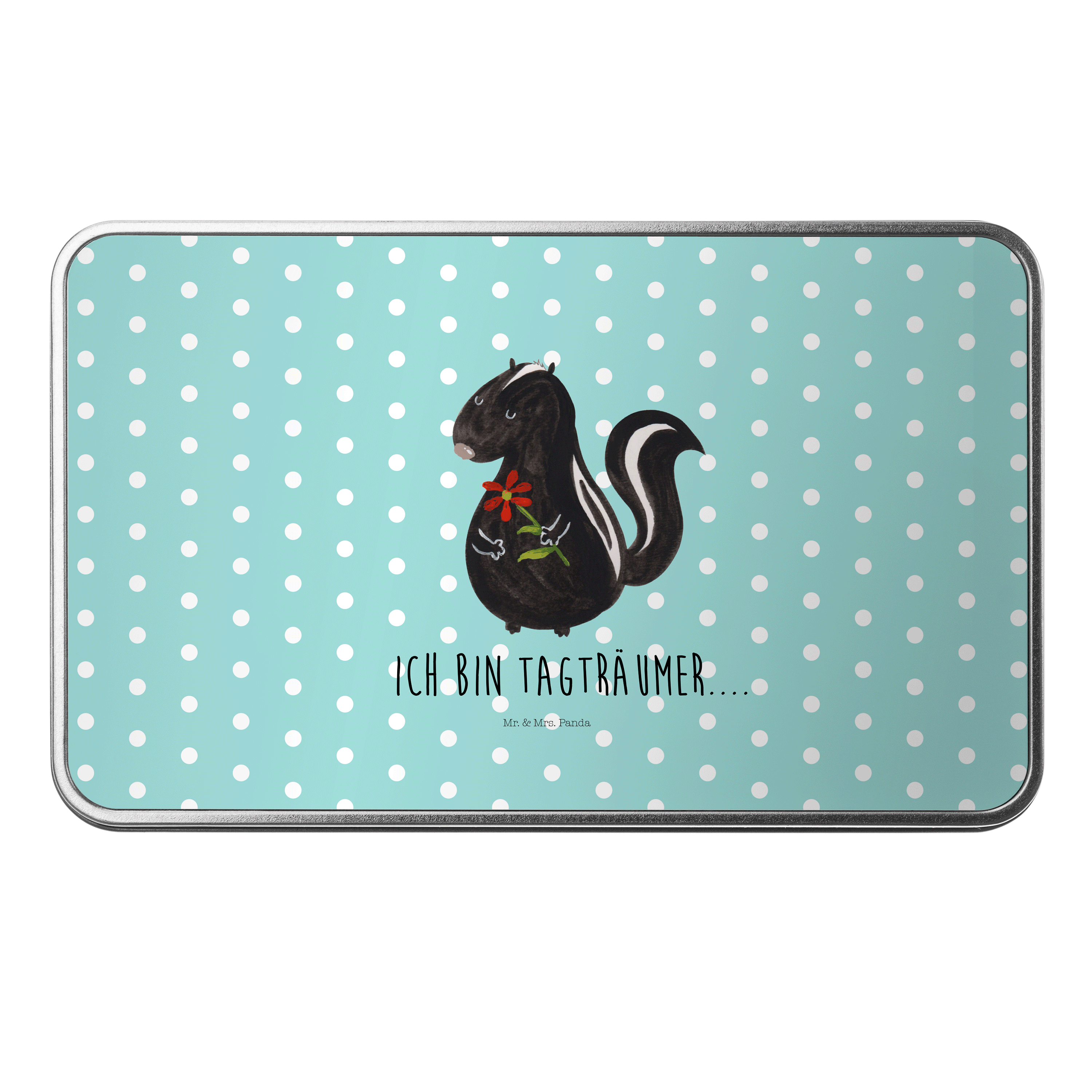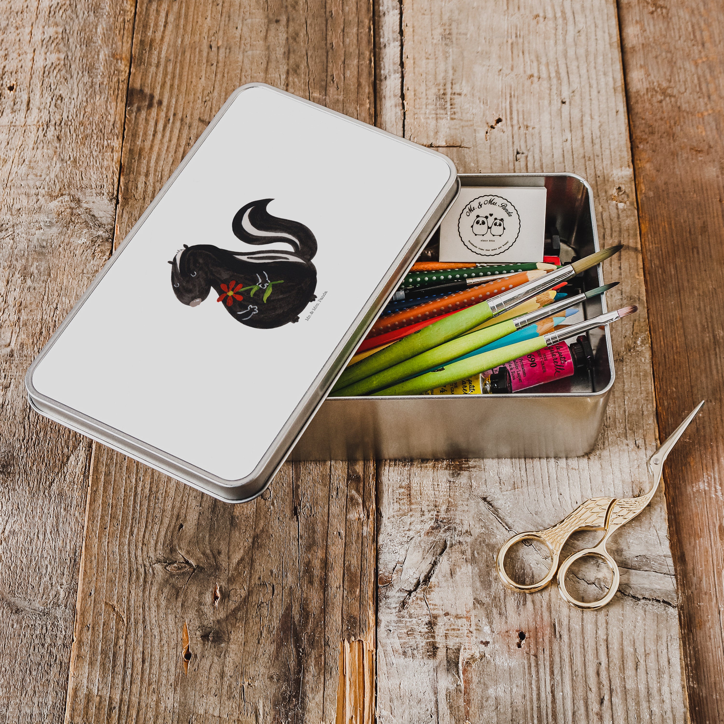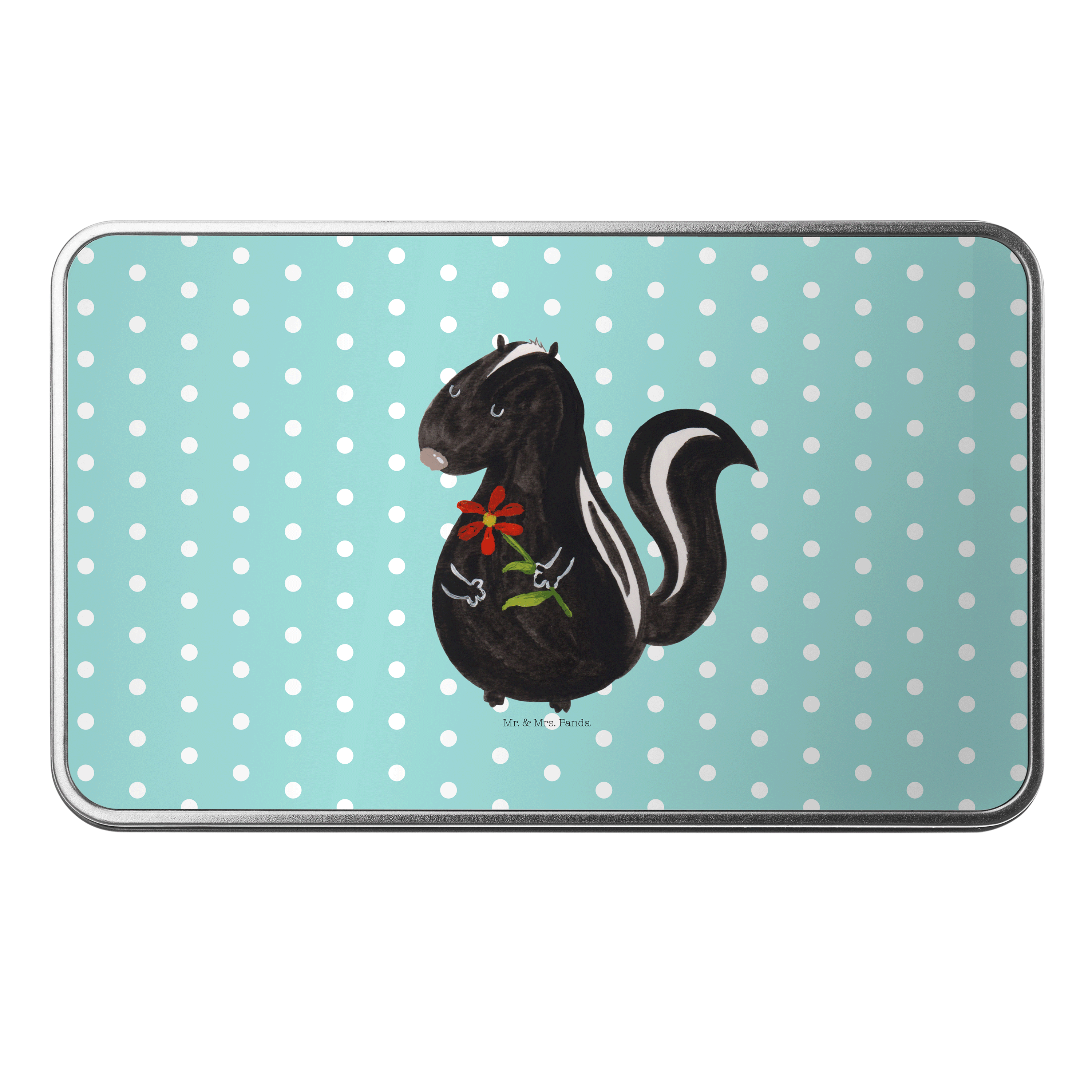 Metalldose rechteckig Stinktier Blume - mit Spruch - Weiß
