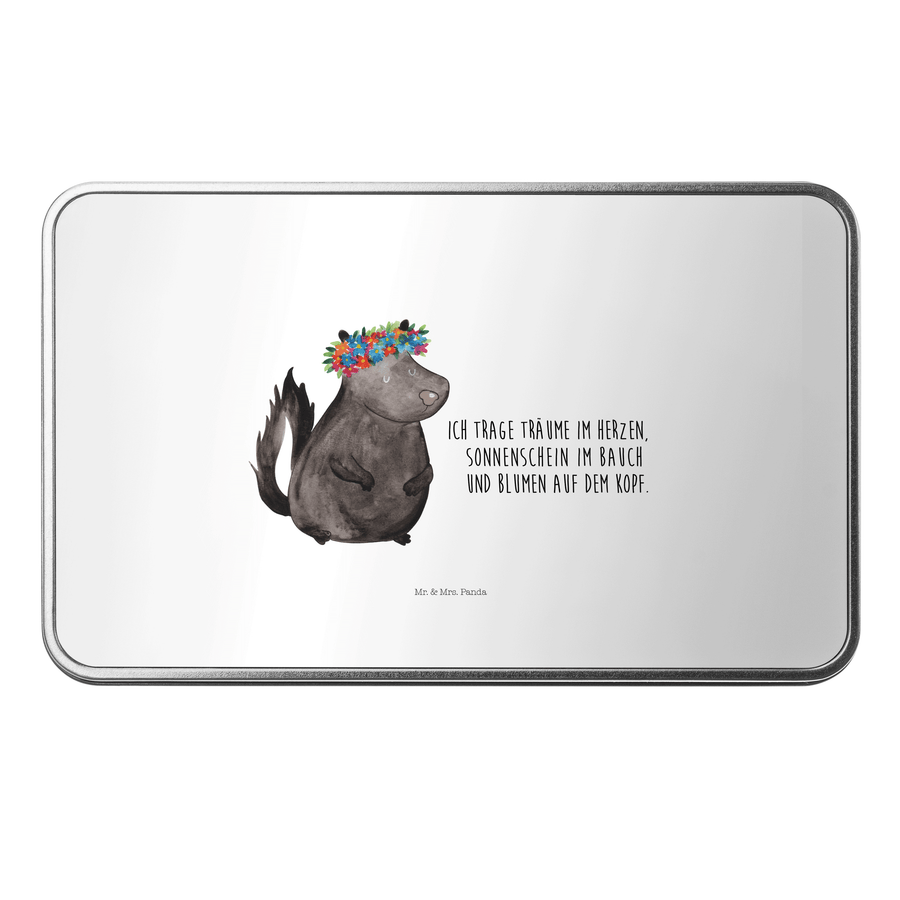 Metalldose rechteckig Stinktier Blumenmaedchen - mit Spruch - Weiß