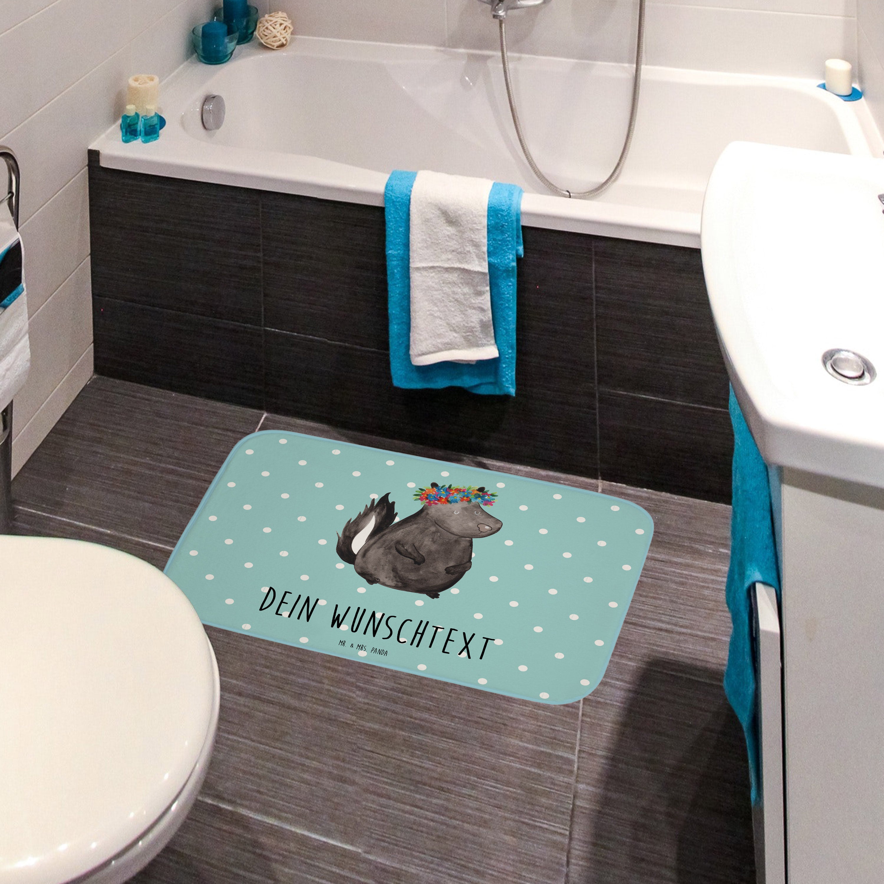 Personalisierter Badvorleger Stinktier Blumenmaedchen