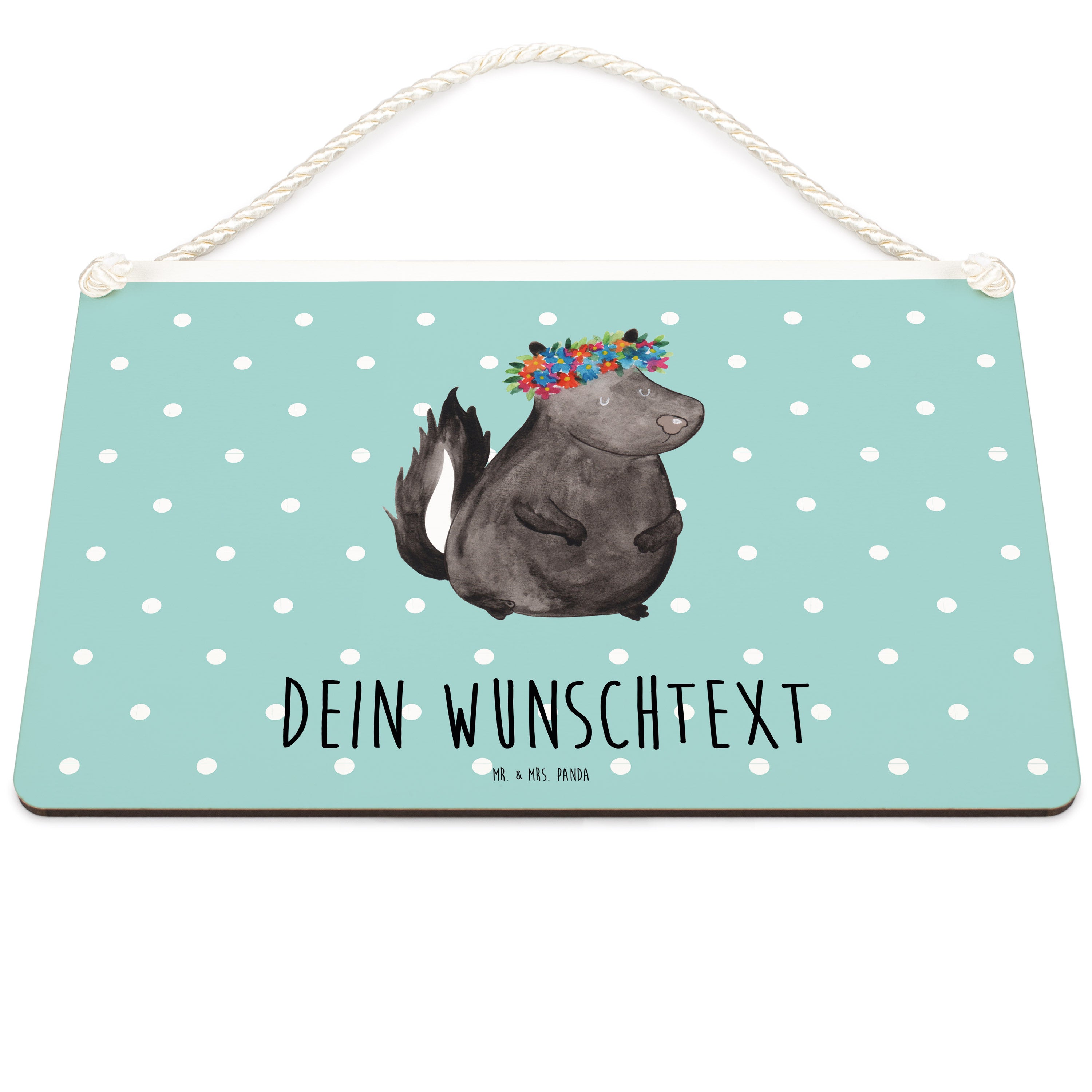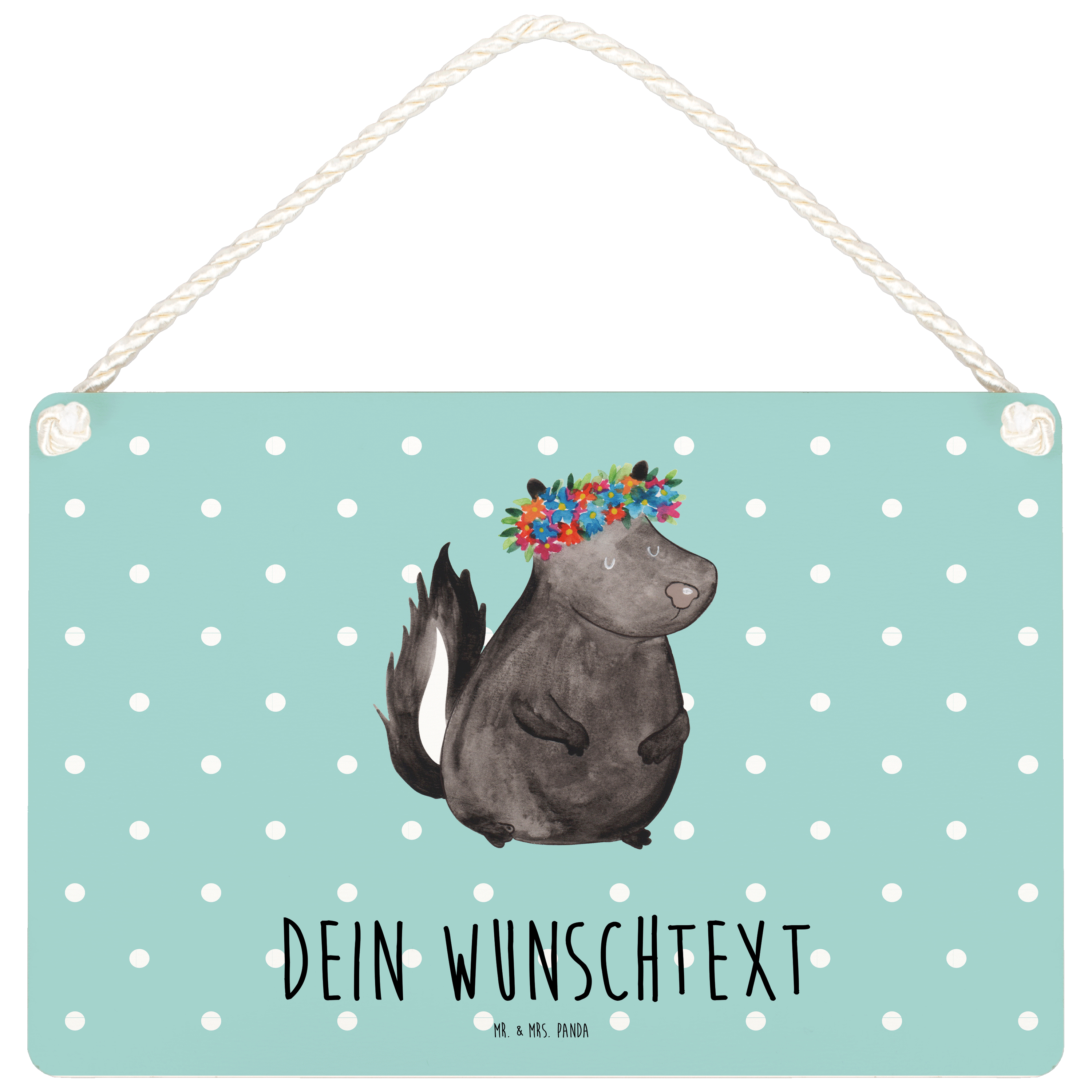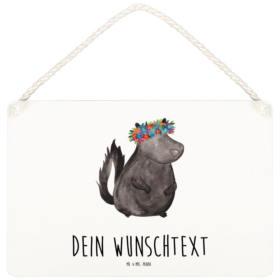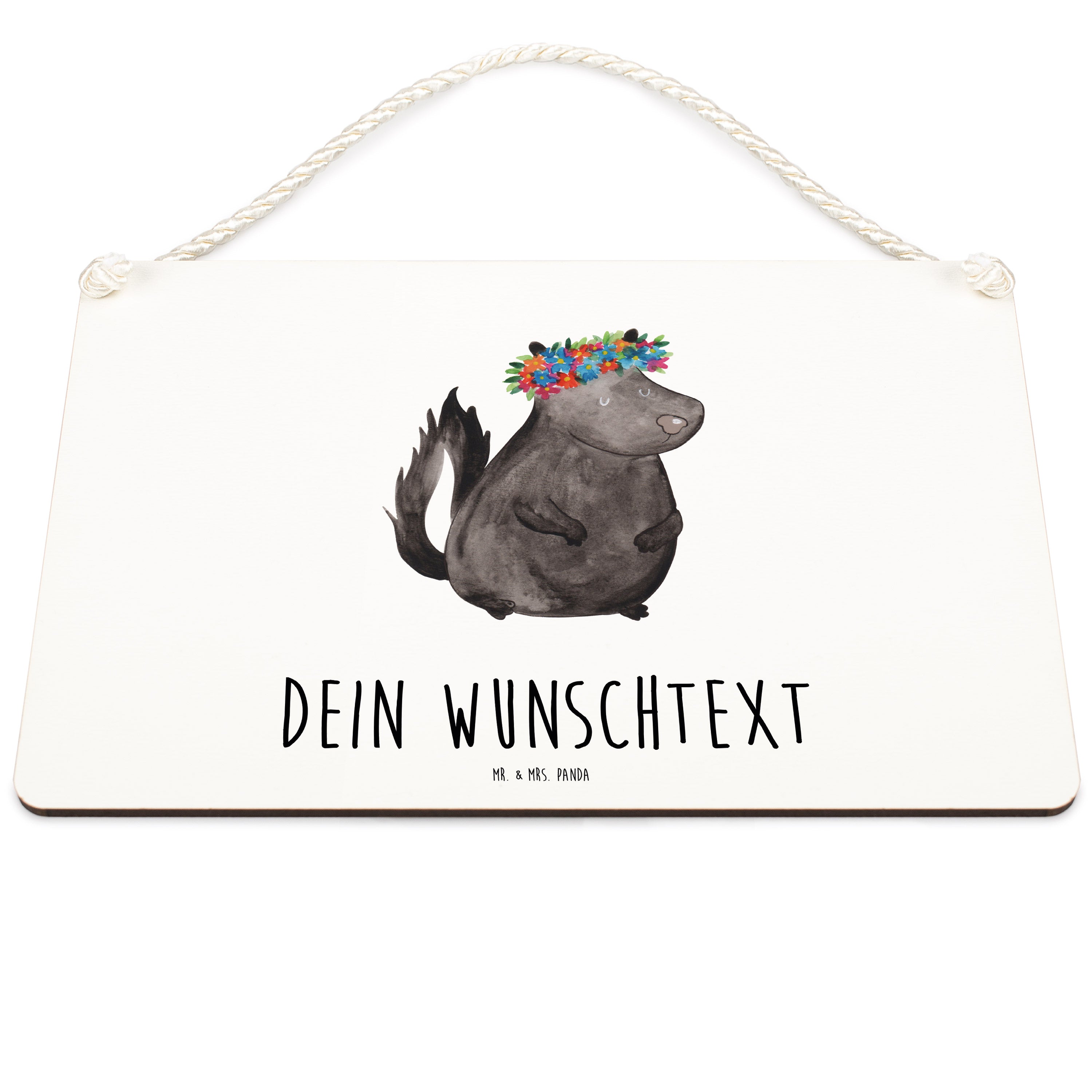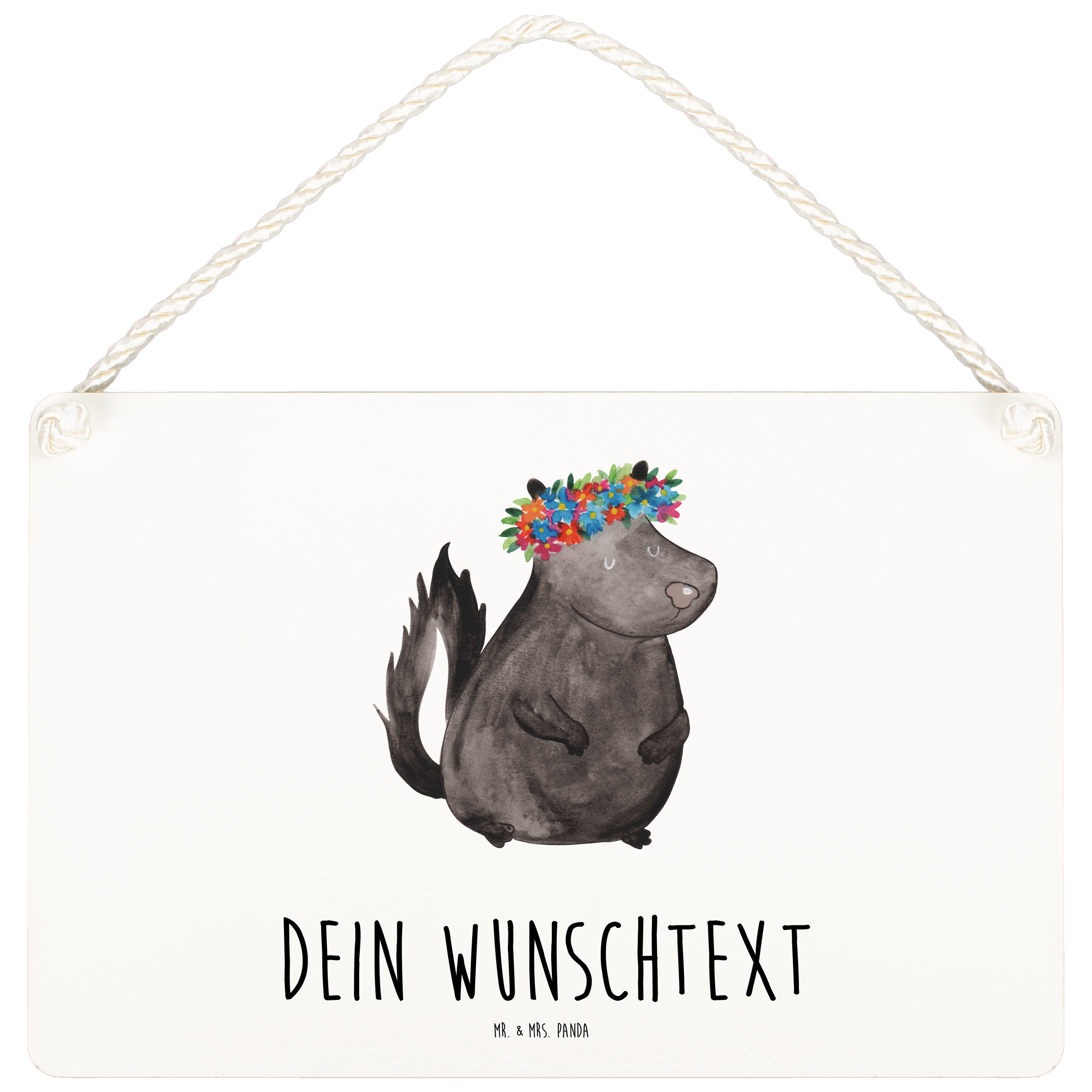 Personalisiertes Deko Schild Stinktier Blumenmaedchen - Weiß - DIN A5