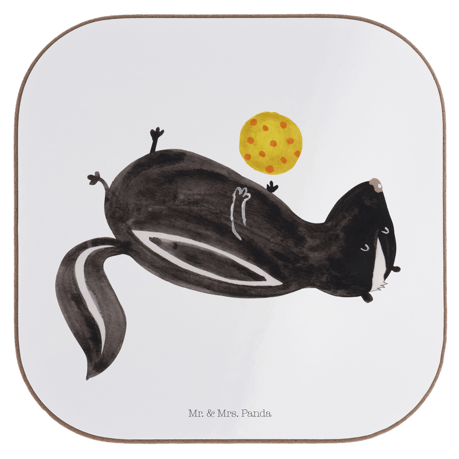 Quadratische Untersetzer Stinktier Ball - ohne Spruch - Weiß