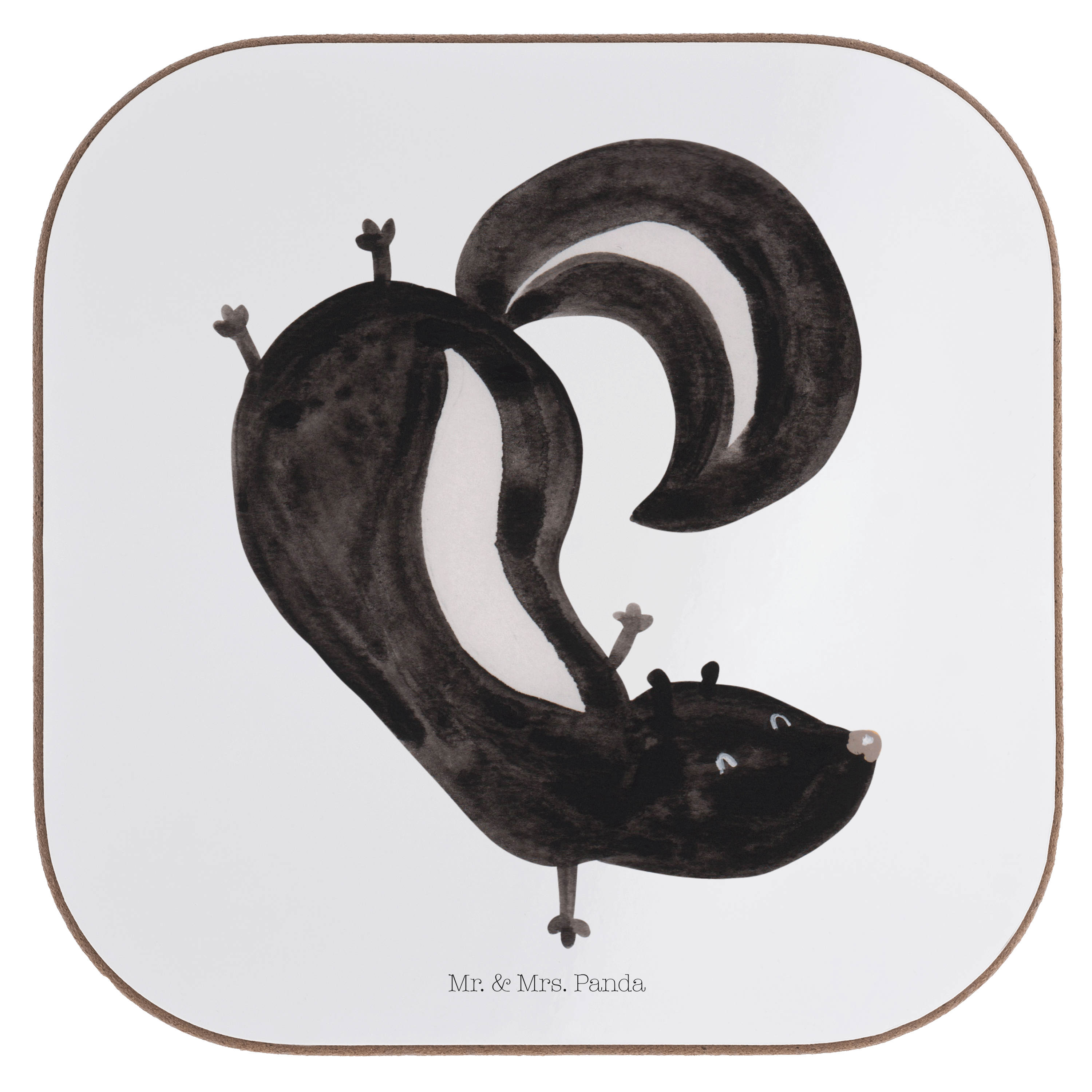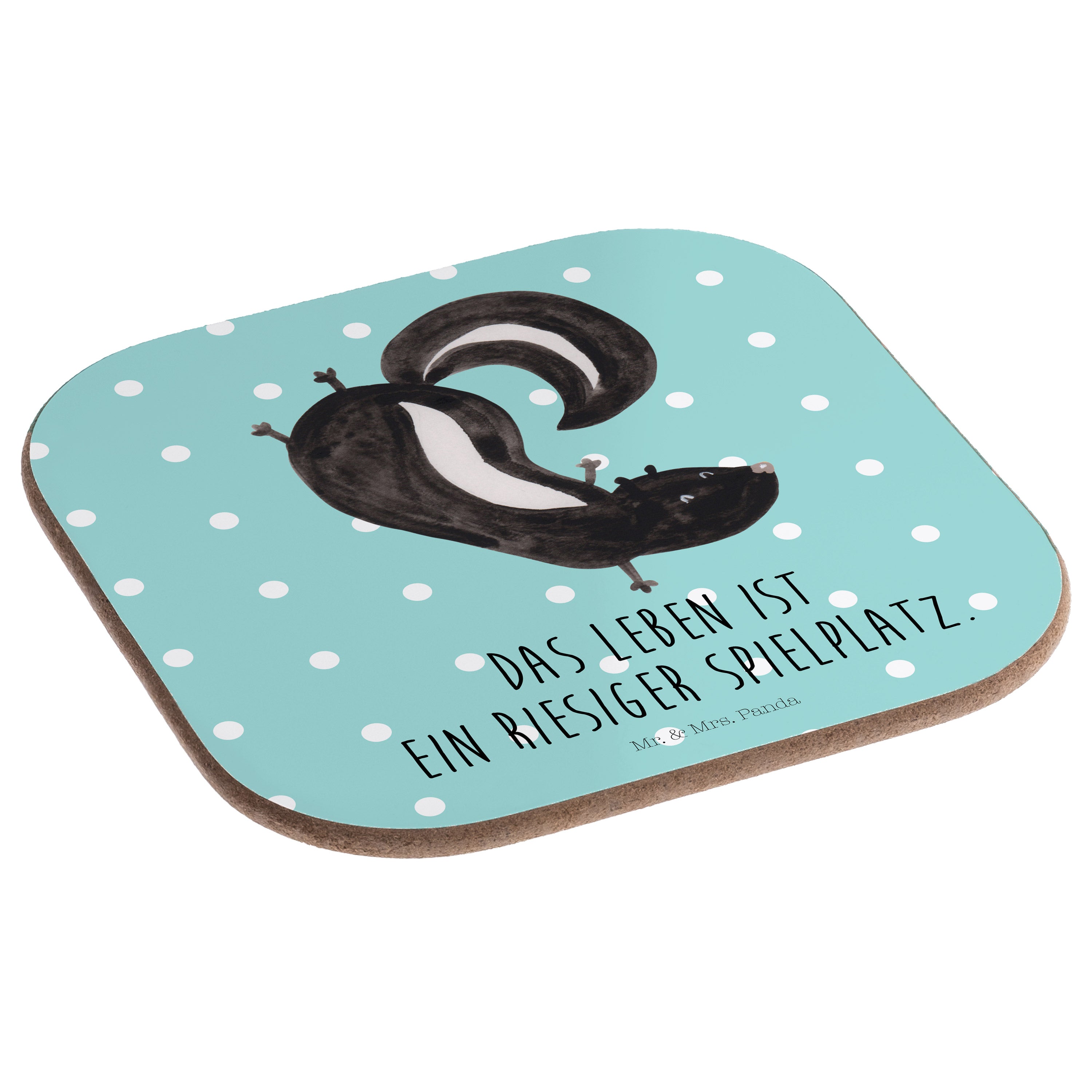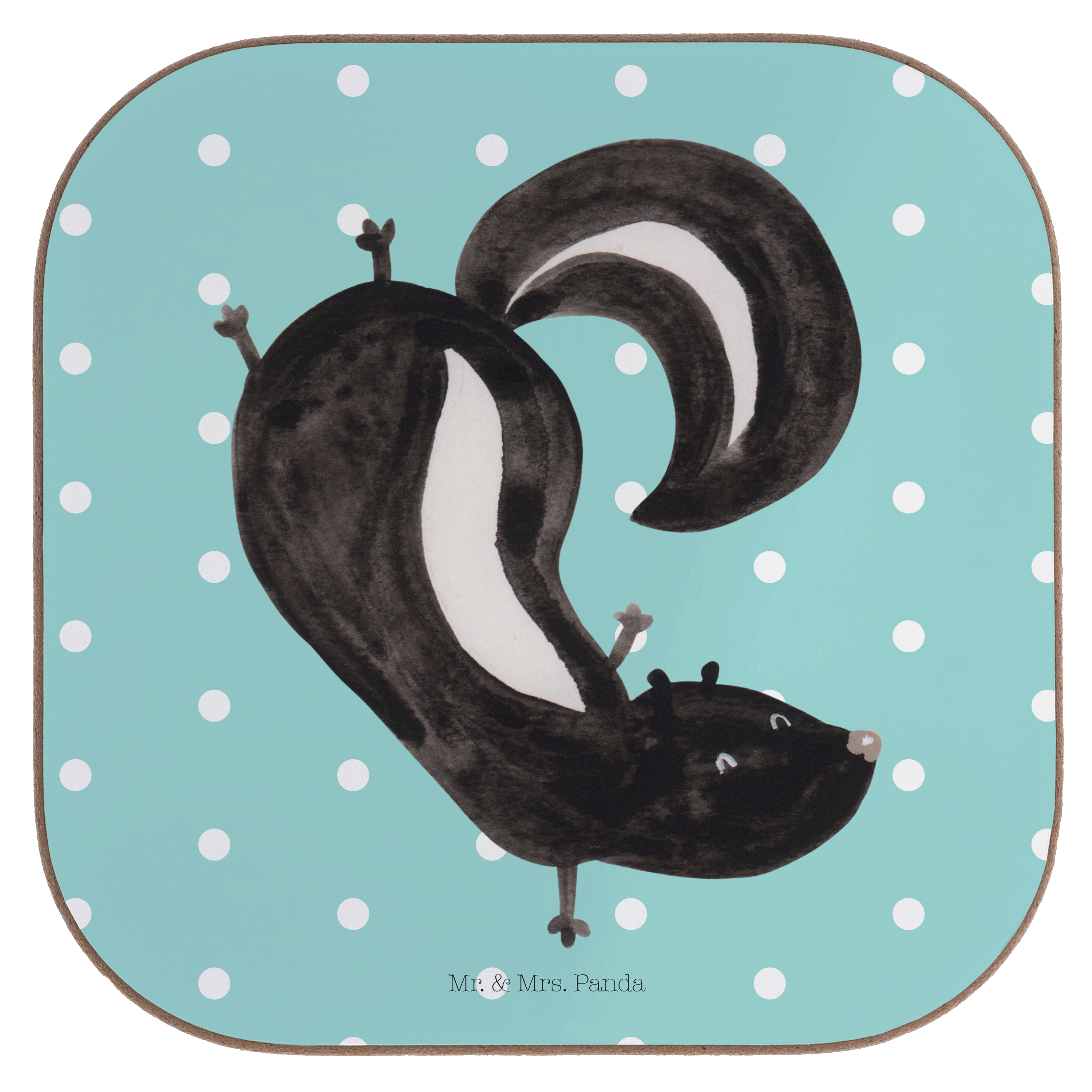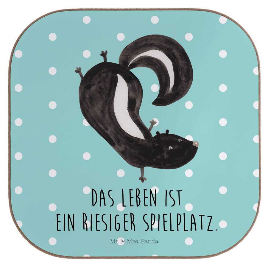 Quadratische Untersetzer Stinktier Handstand - mit Spruch - Türkis Pastell