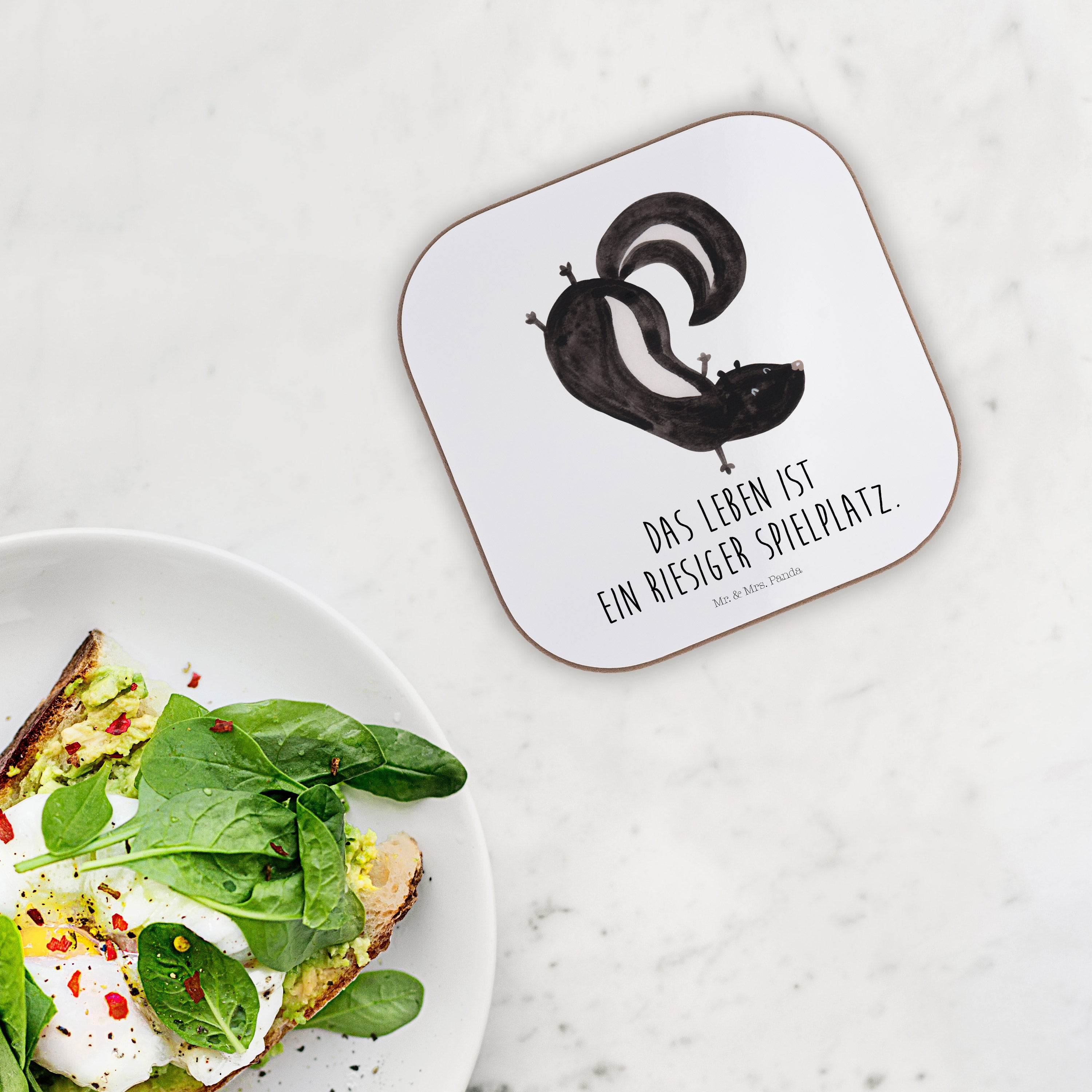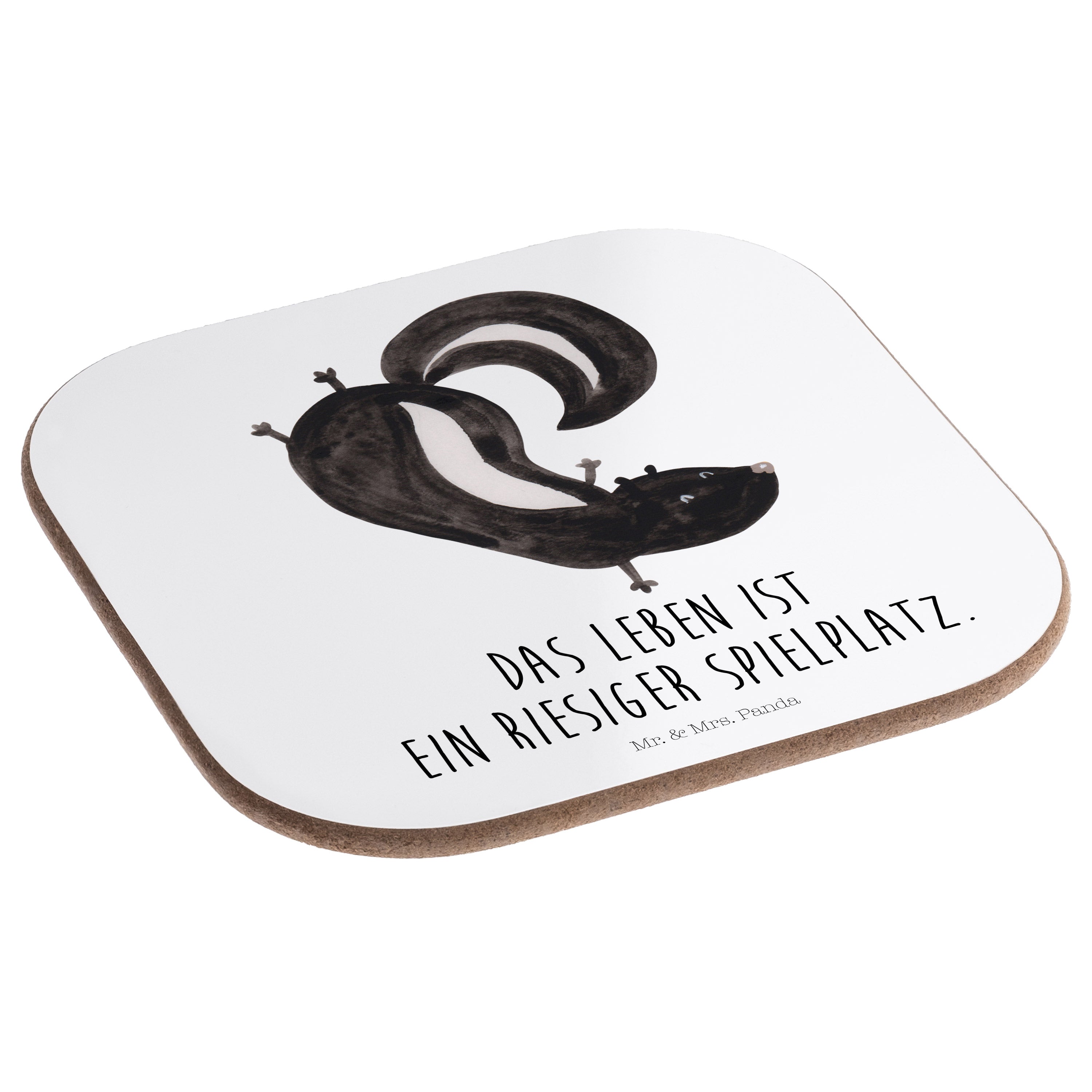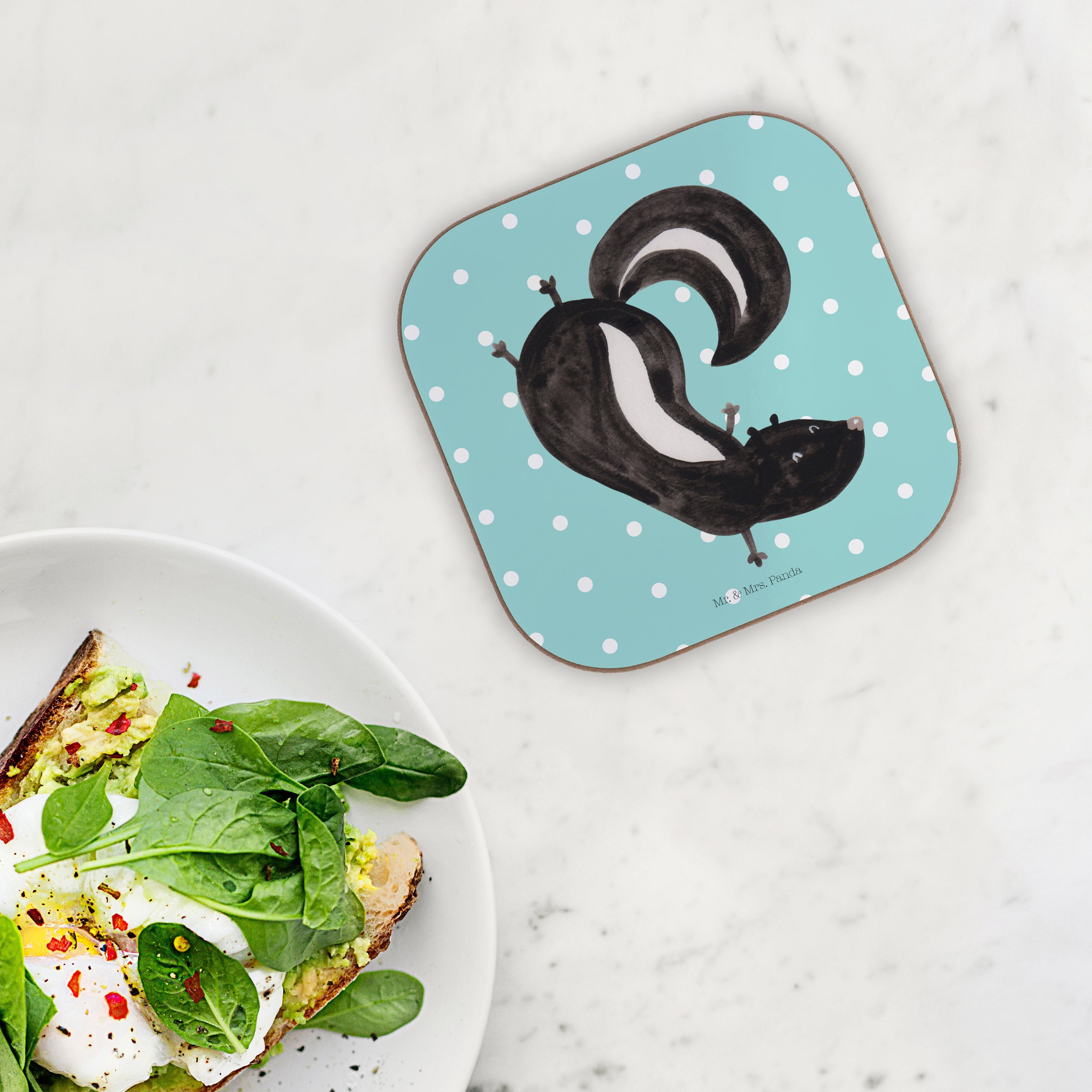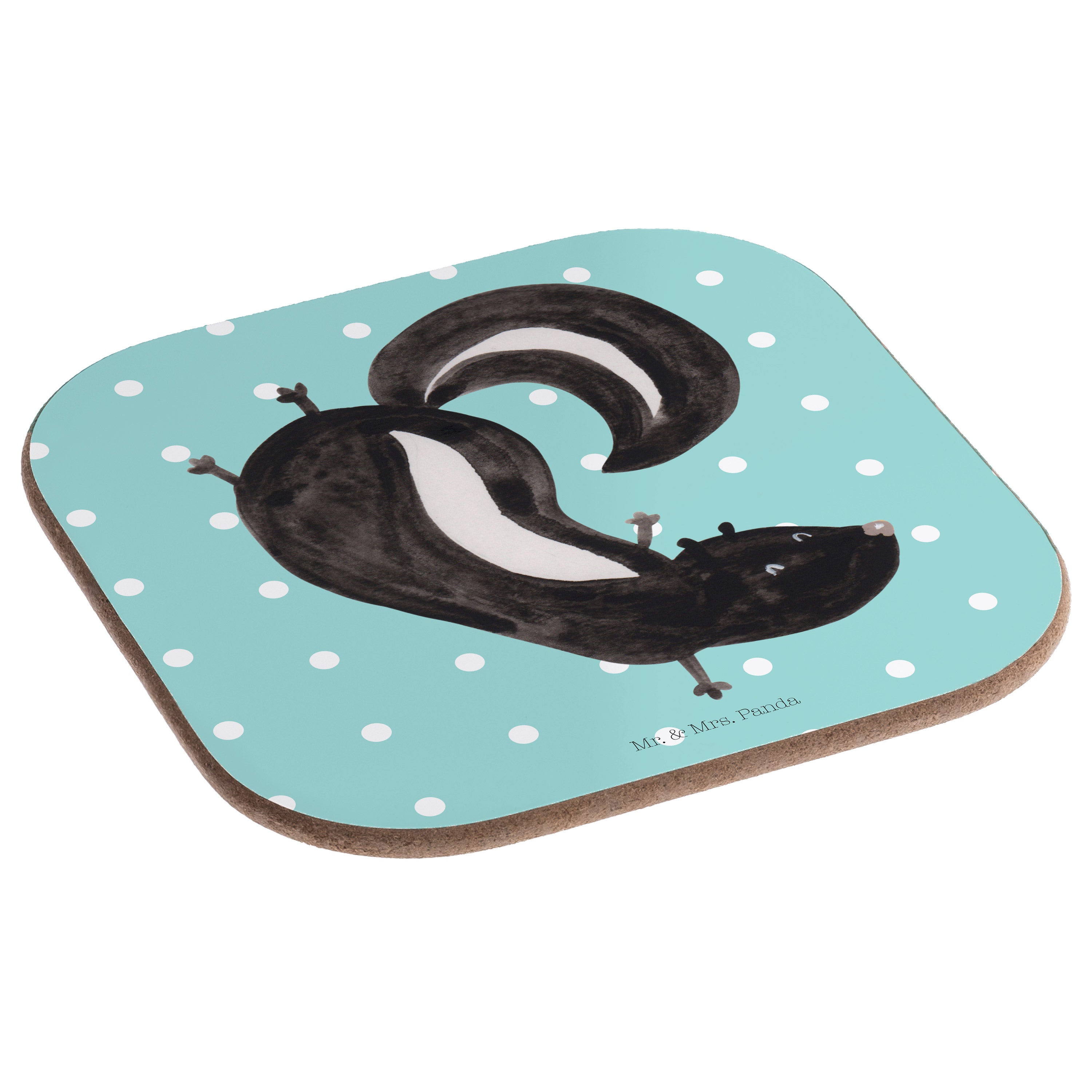 Quadratische Untersetzer Stinktier Handstand - mit Spruch - Türkis Pastell