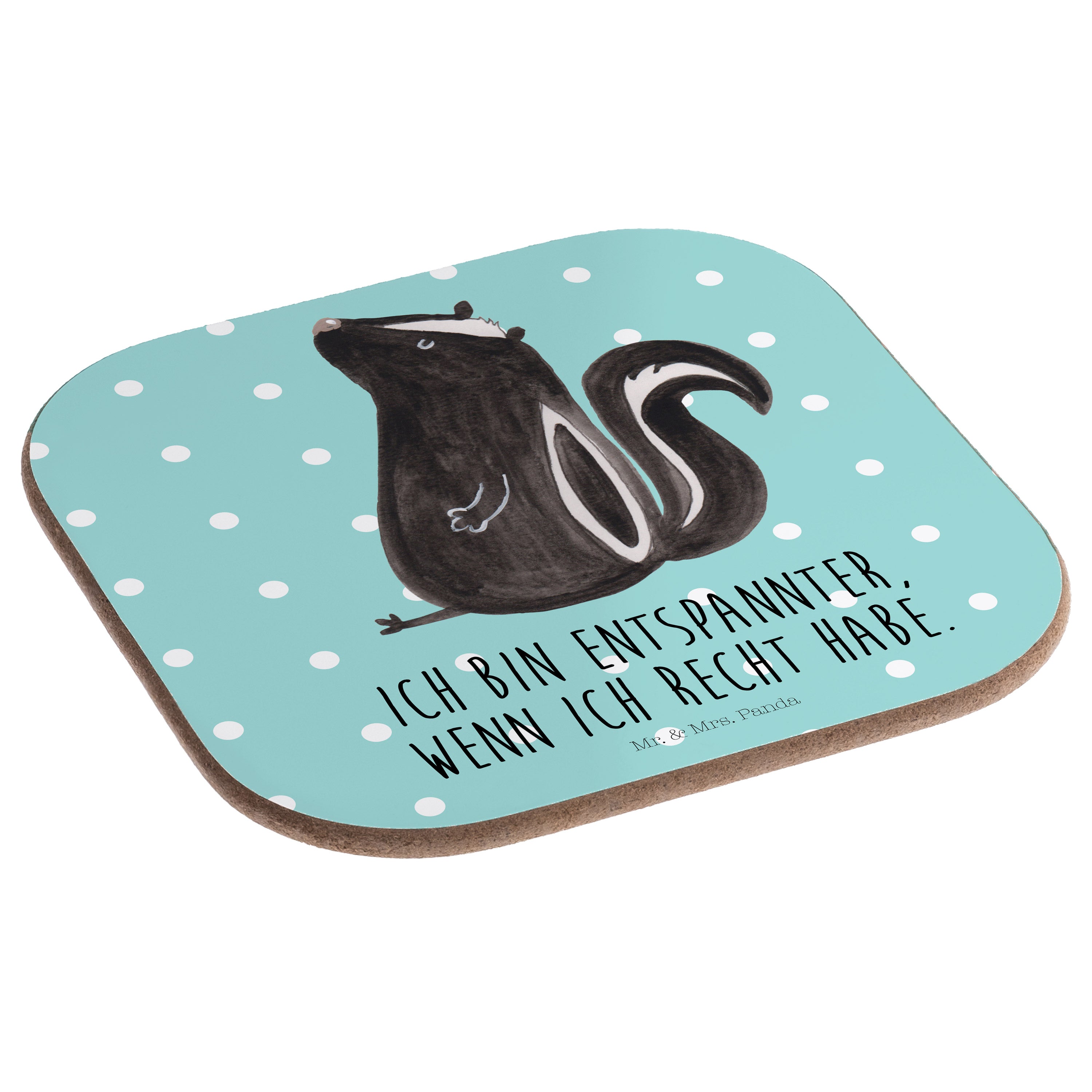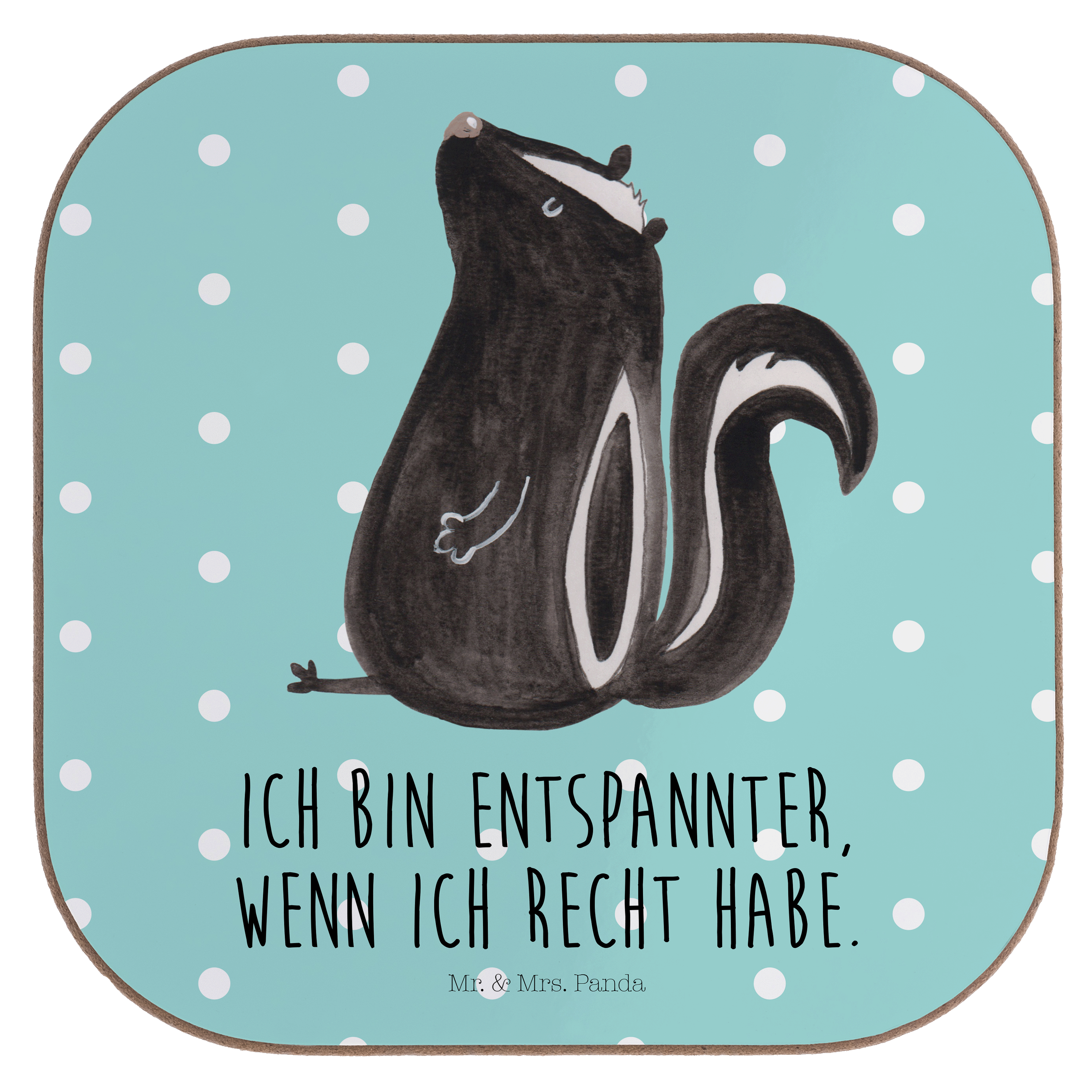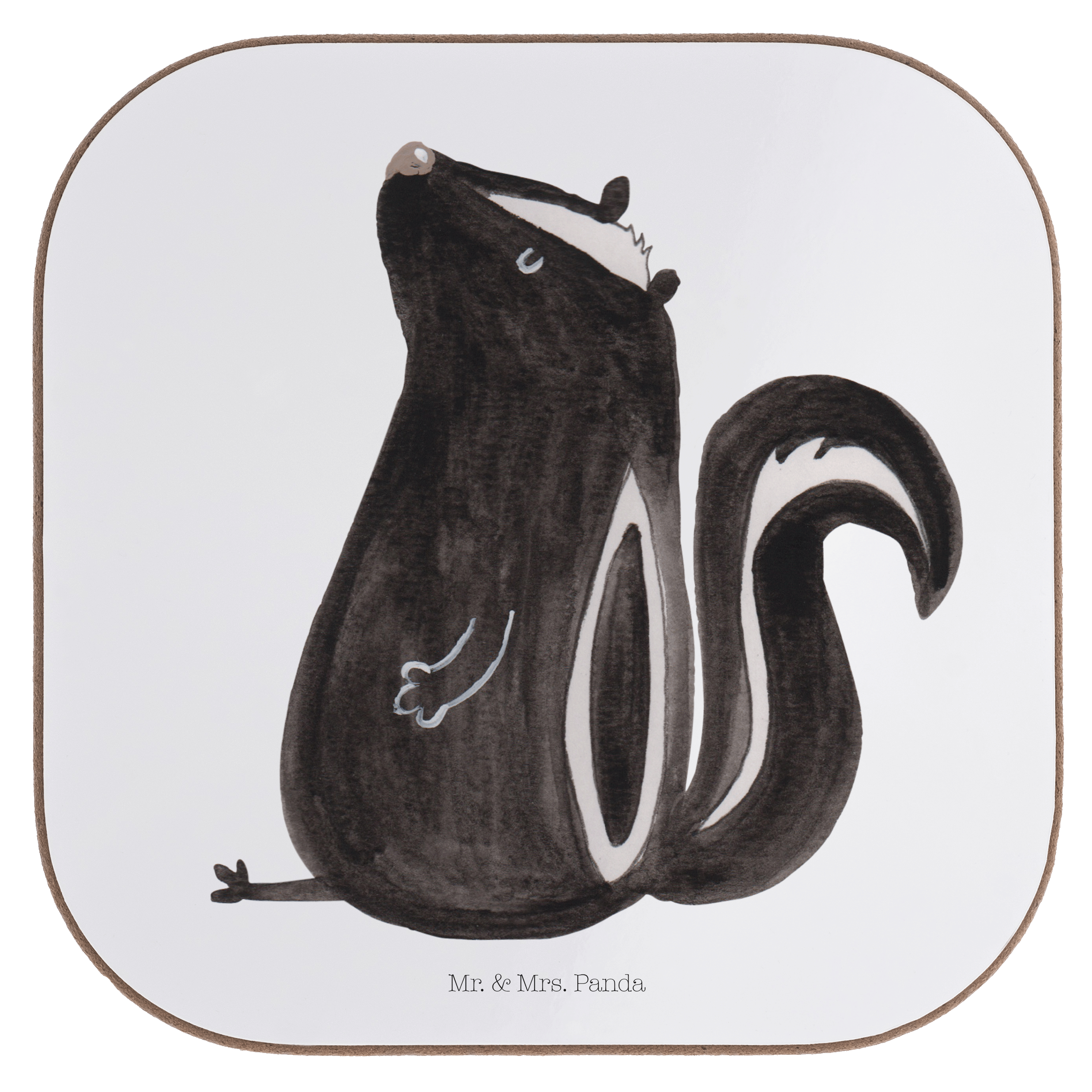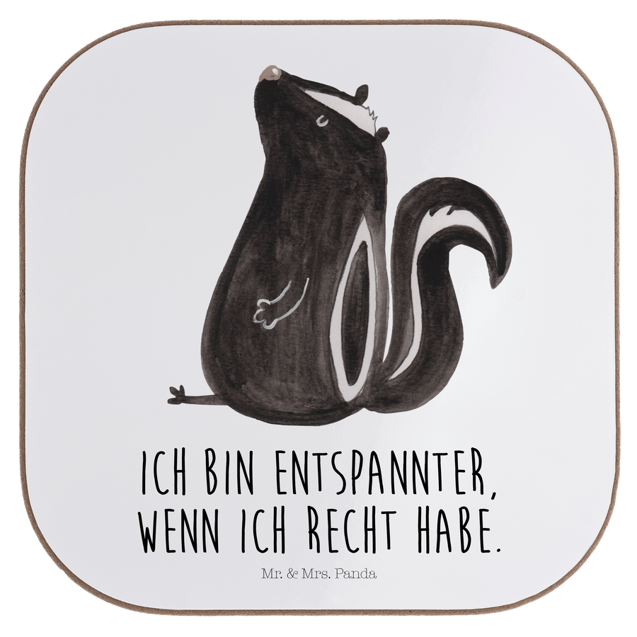 Quadratische Untersetzer Stinktier sitzend - mit Spruch - Weiß