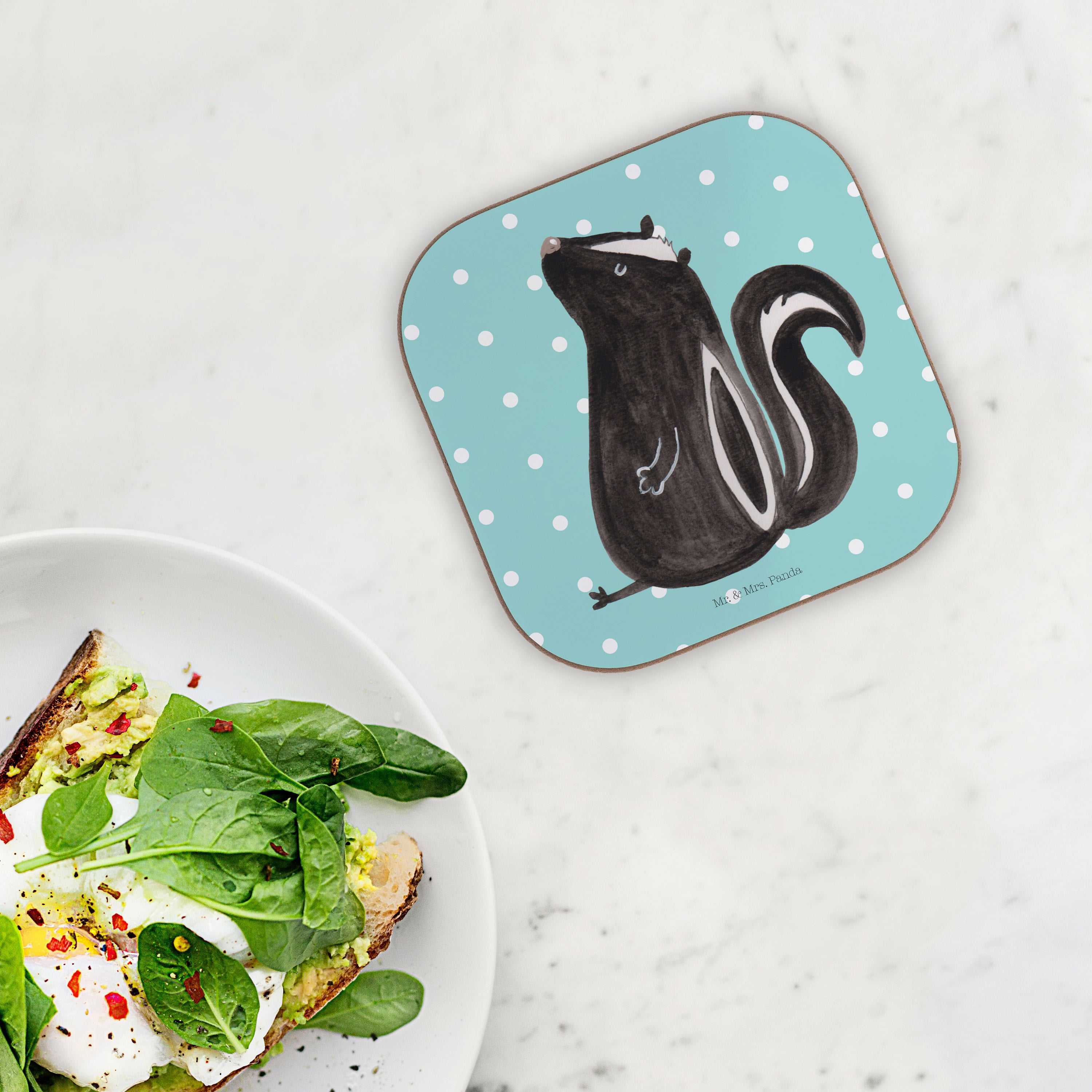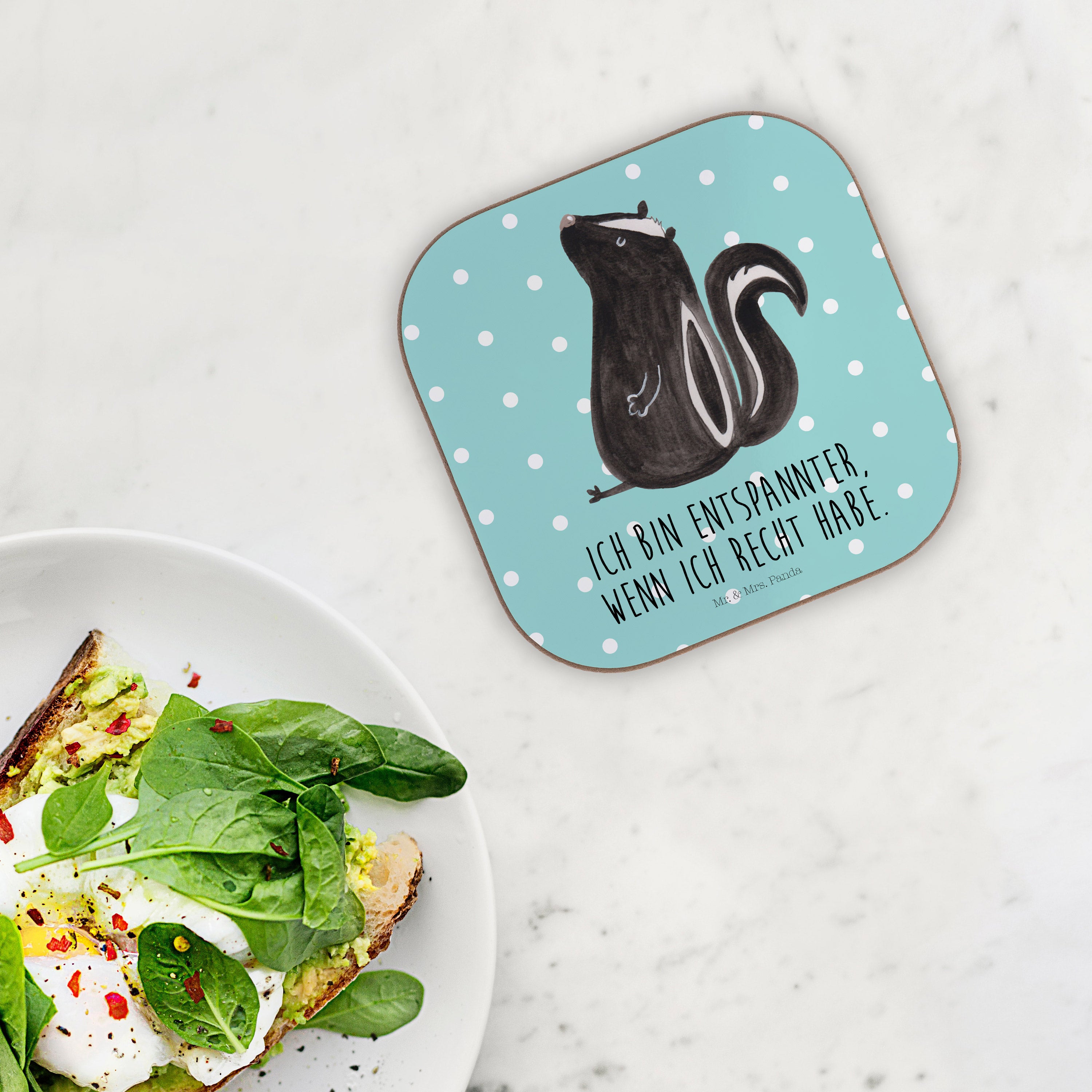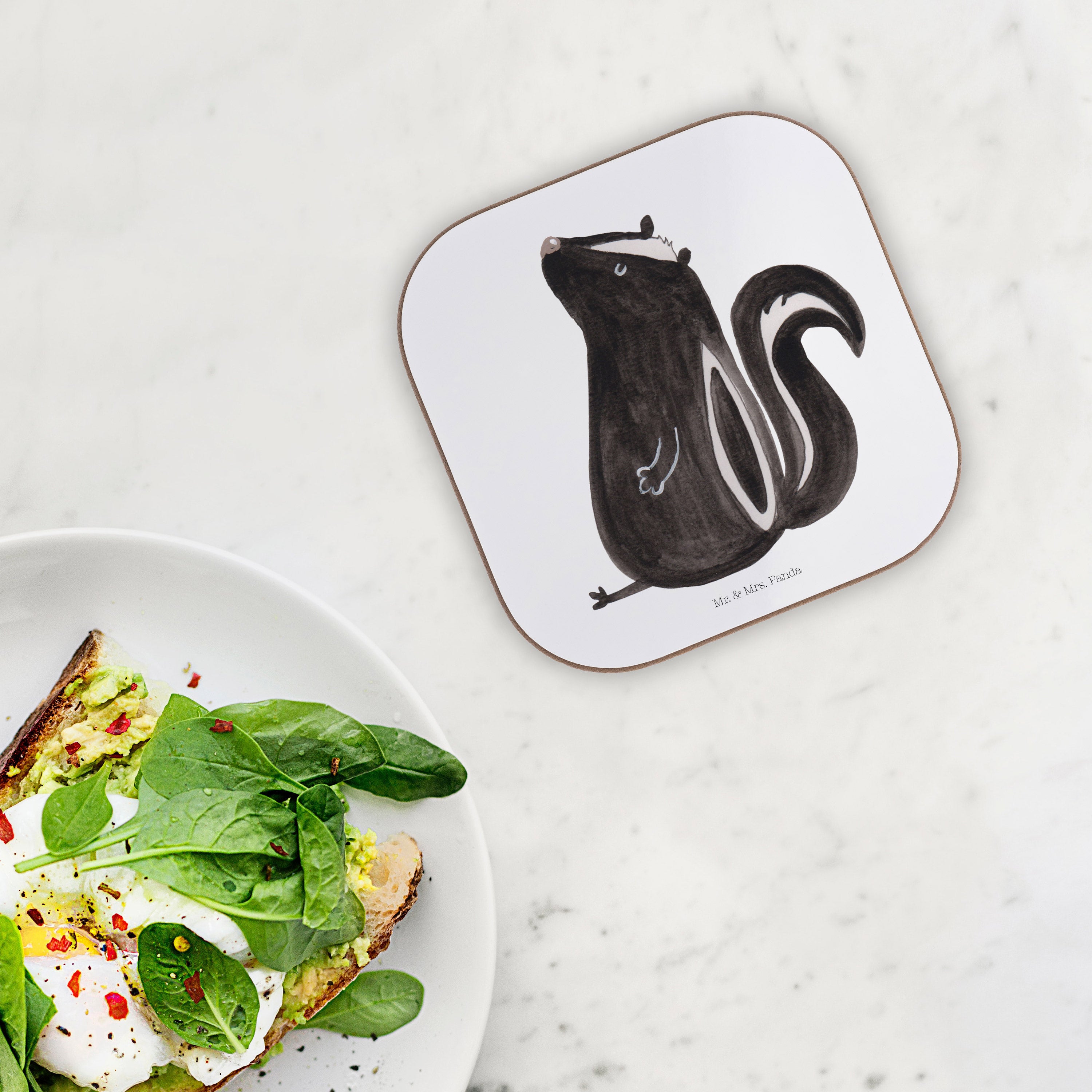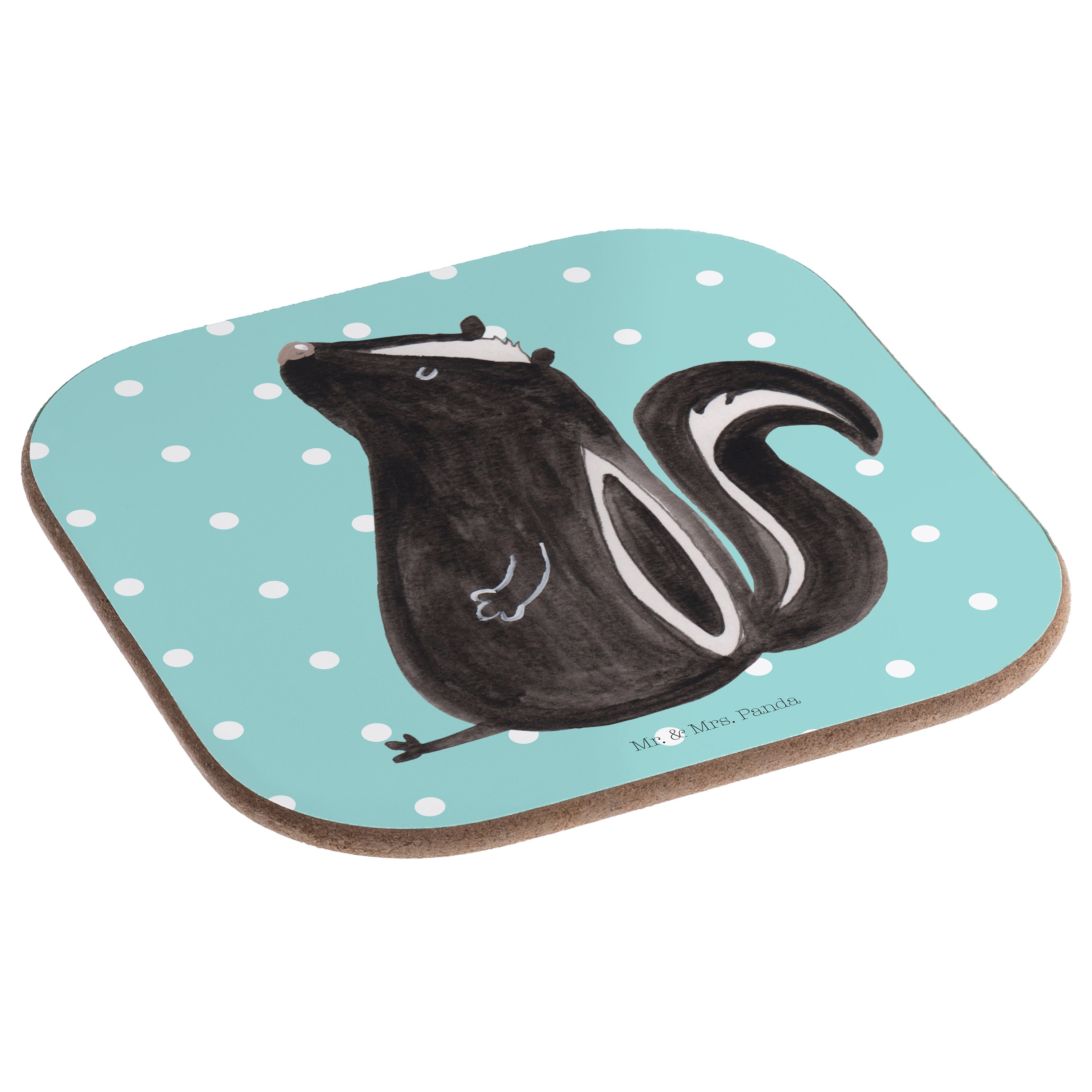Quadratische Untersetzer Stinktier sitzend - mit Spruch - Weiß