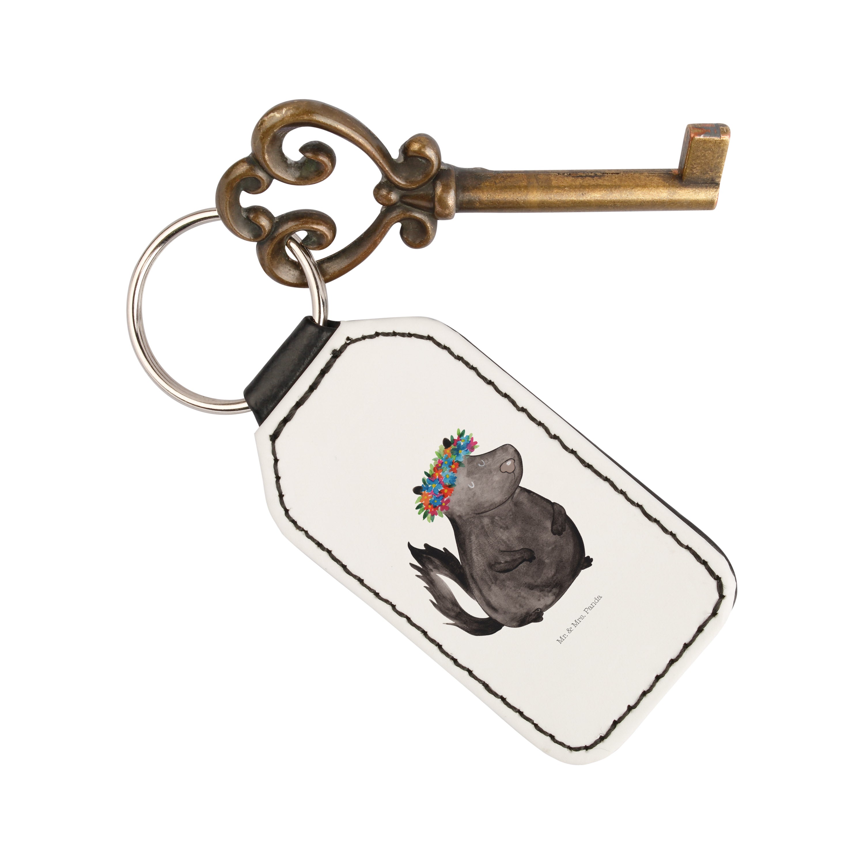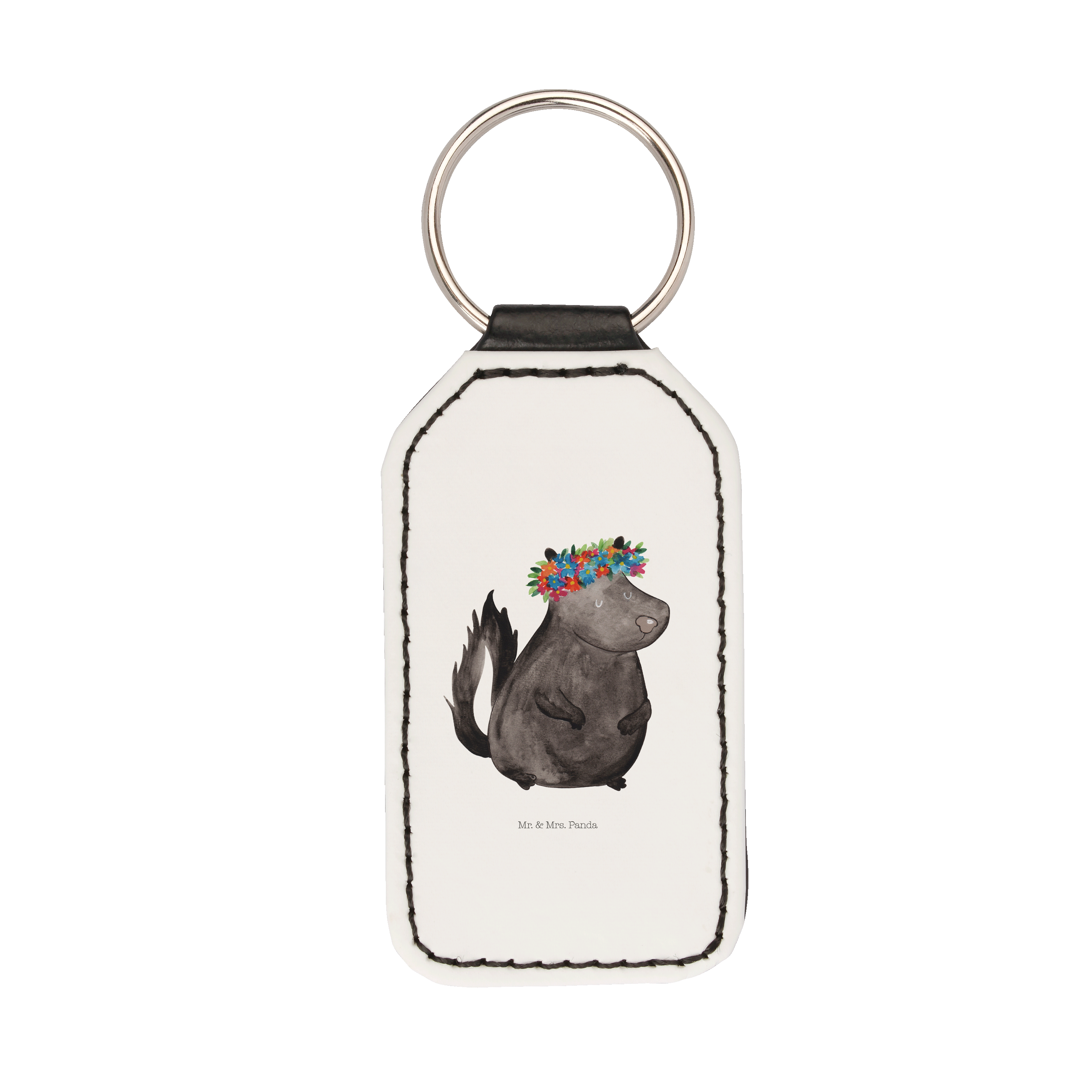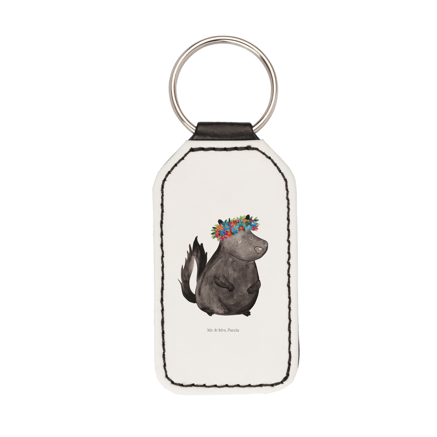 Rechteckig Schlüsselanhänger Stinktier Blumenmaedchen - Weiß