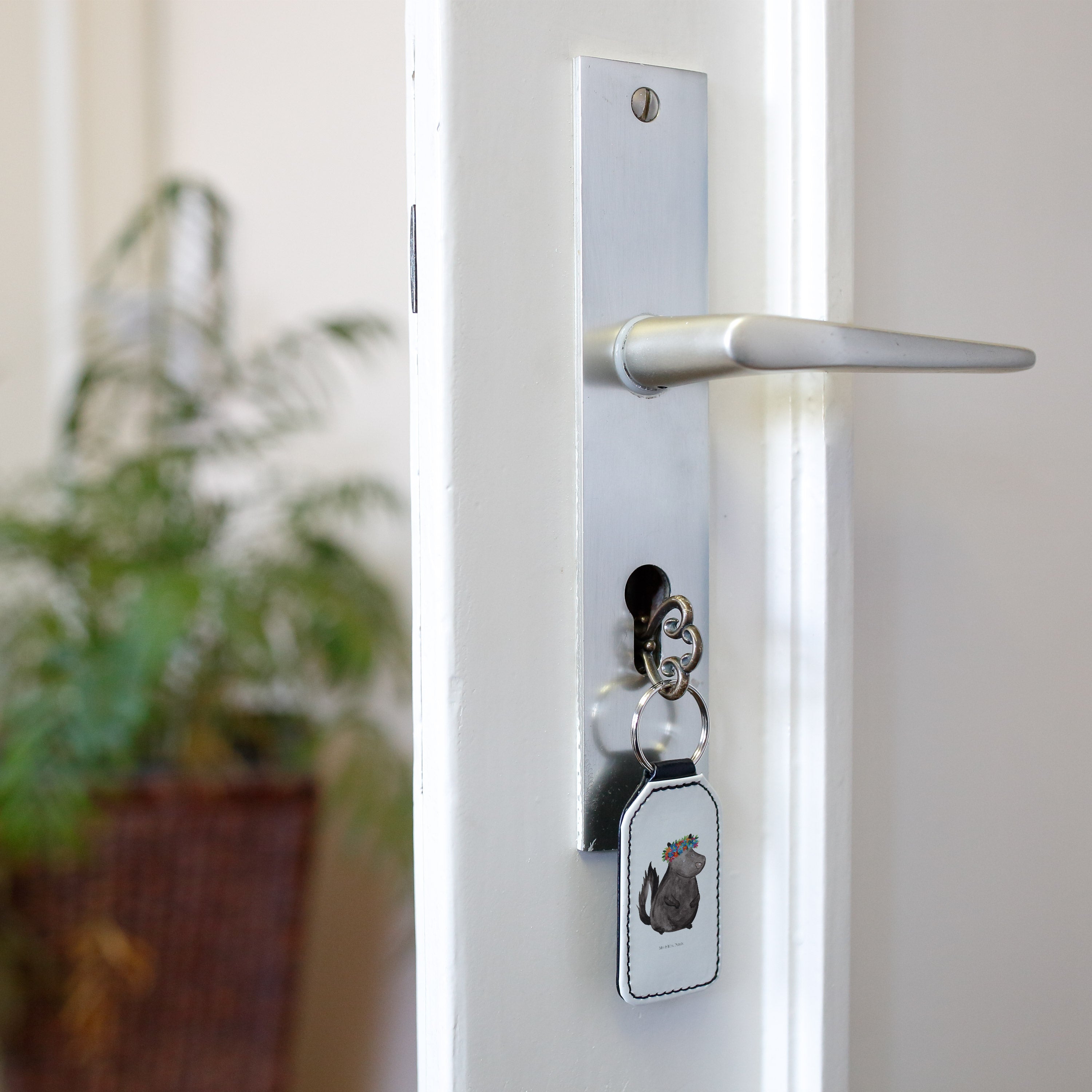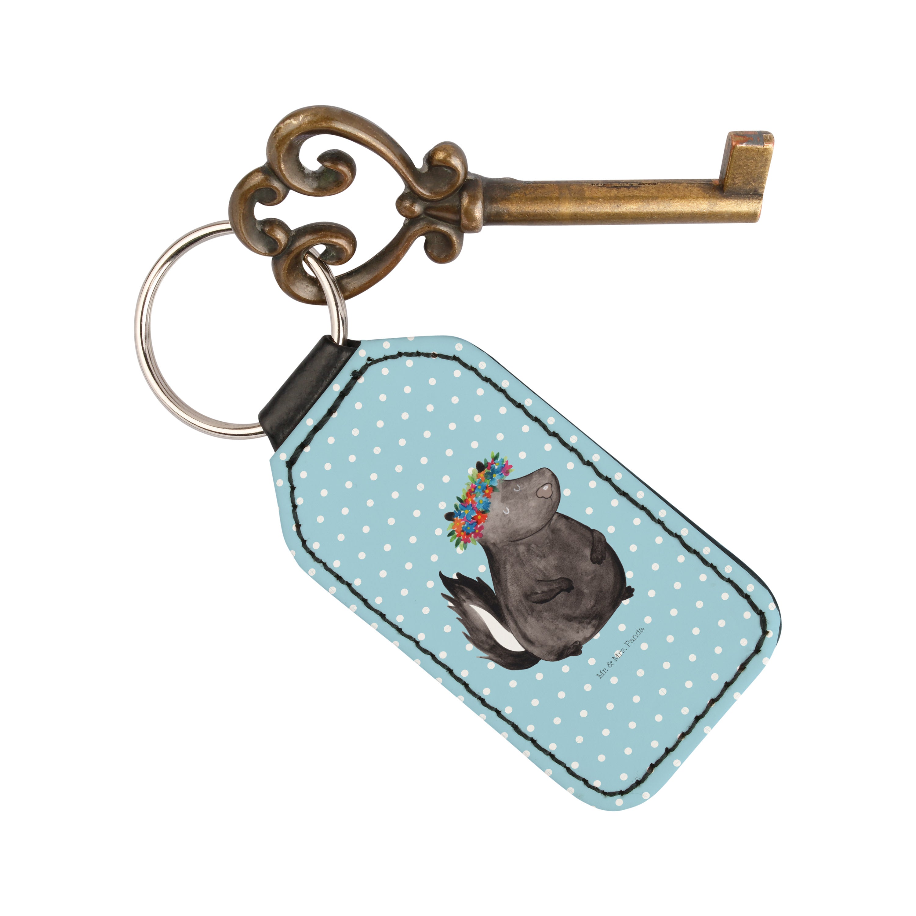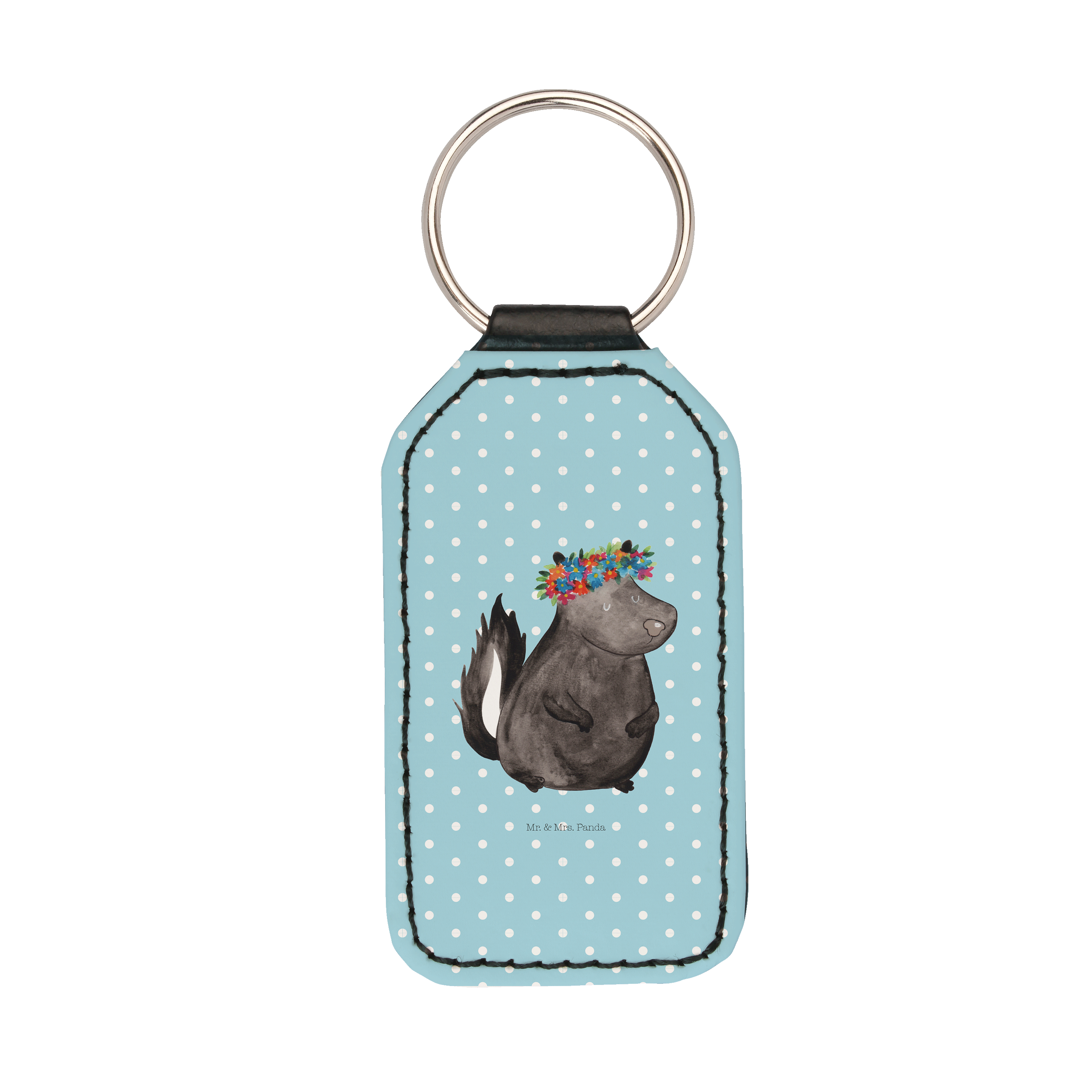 Rechteckig Schlüsselanhänger Stinktier Blumenmaedchen - Weiß