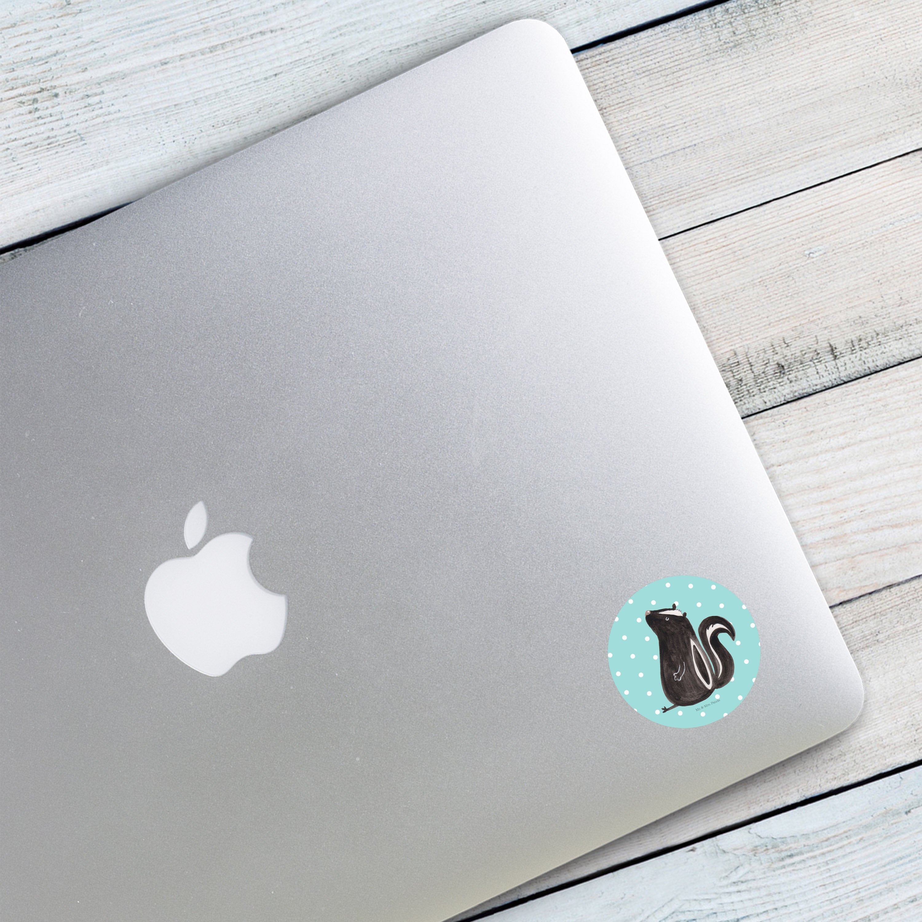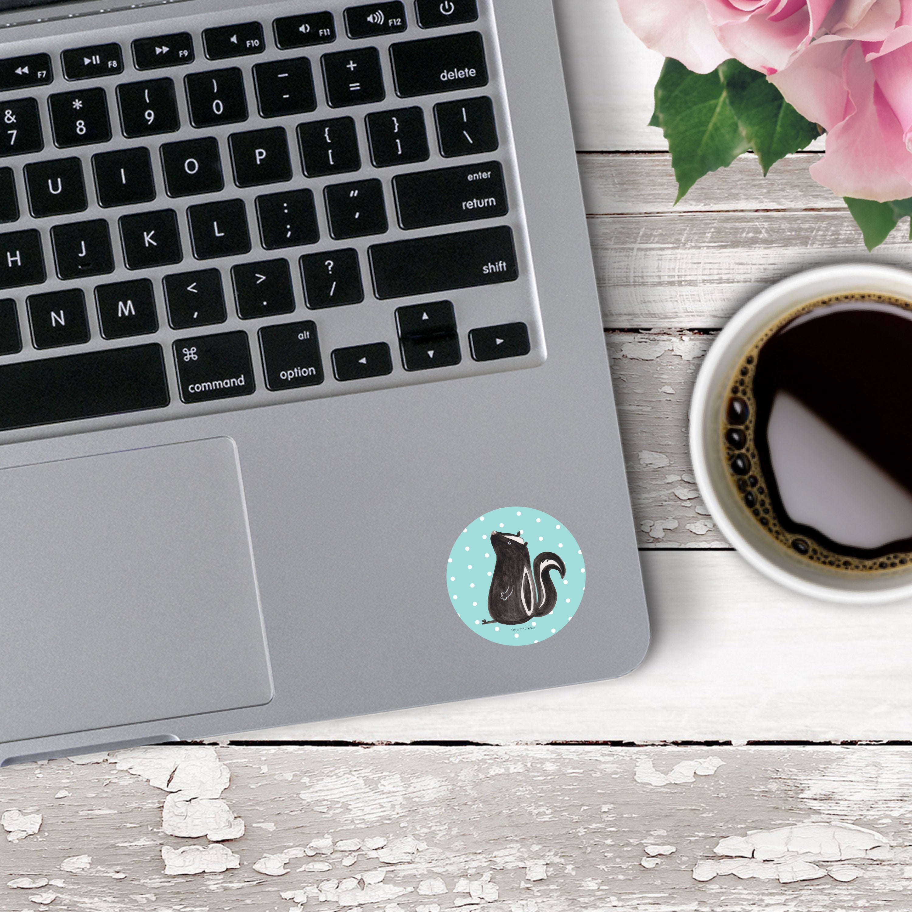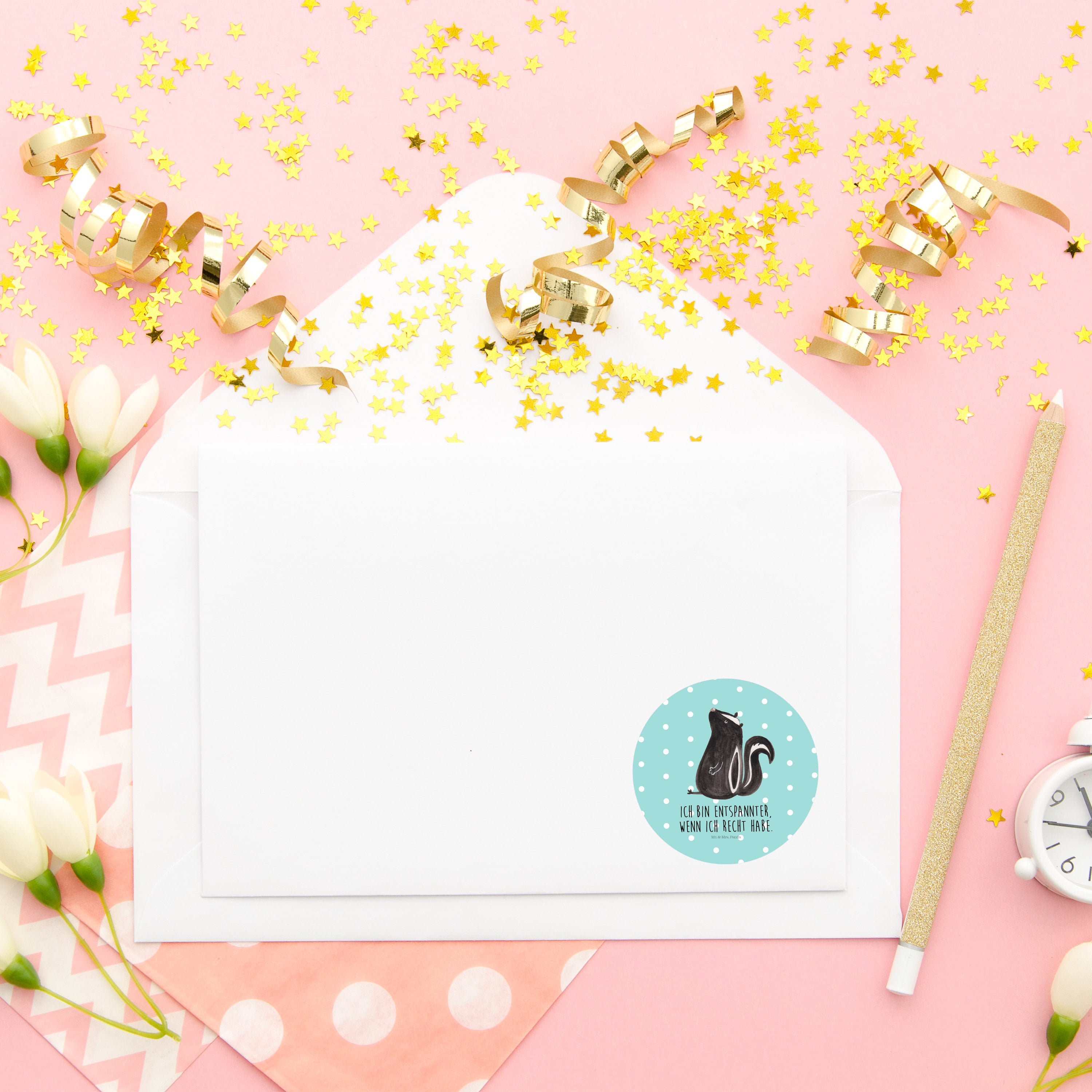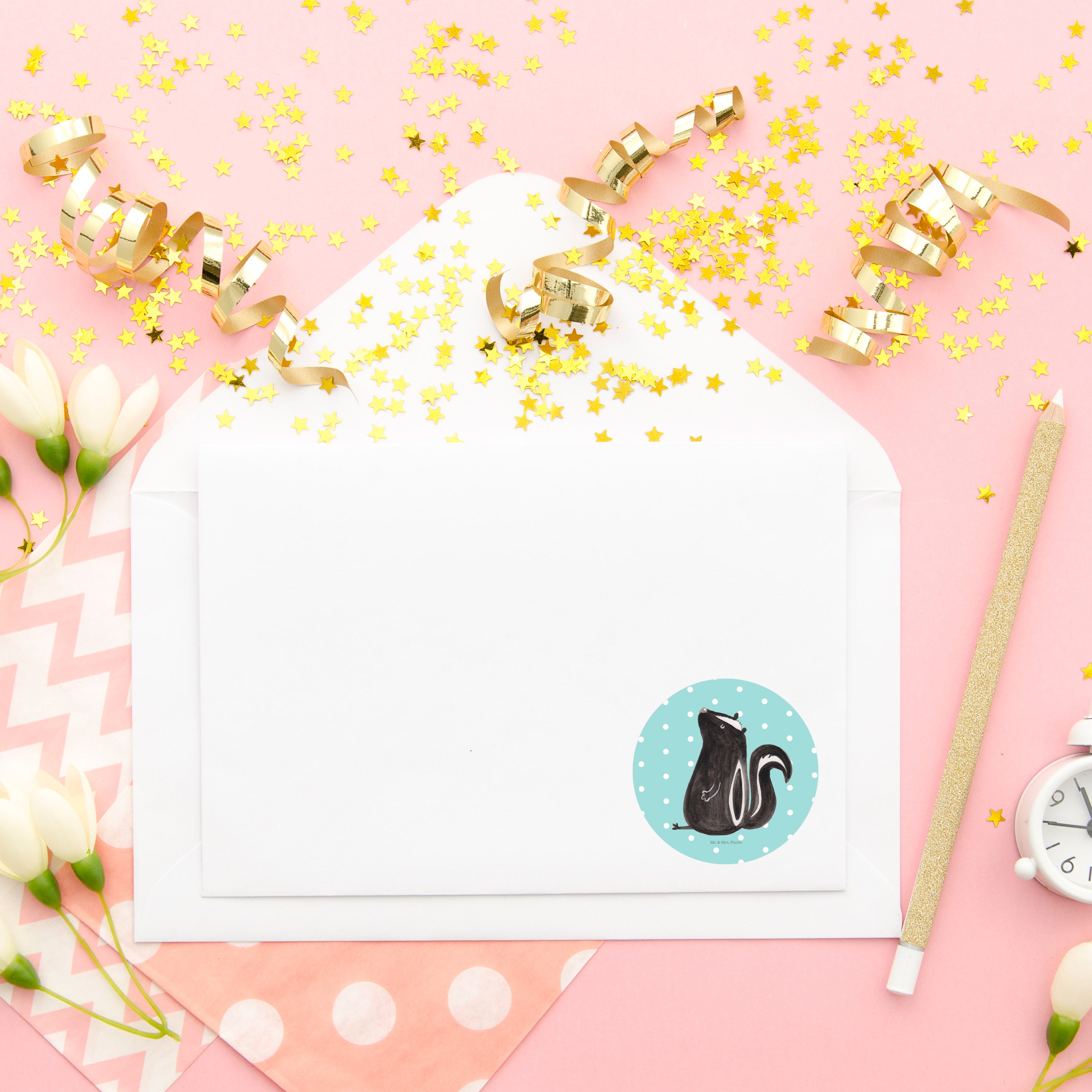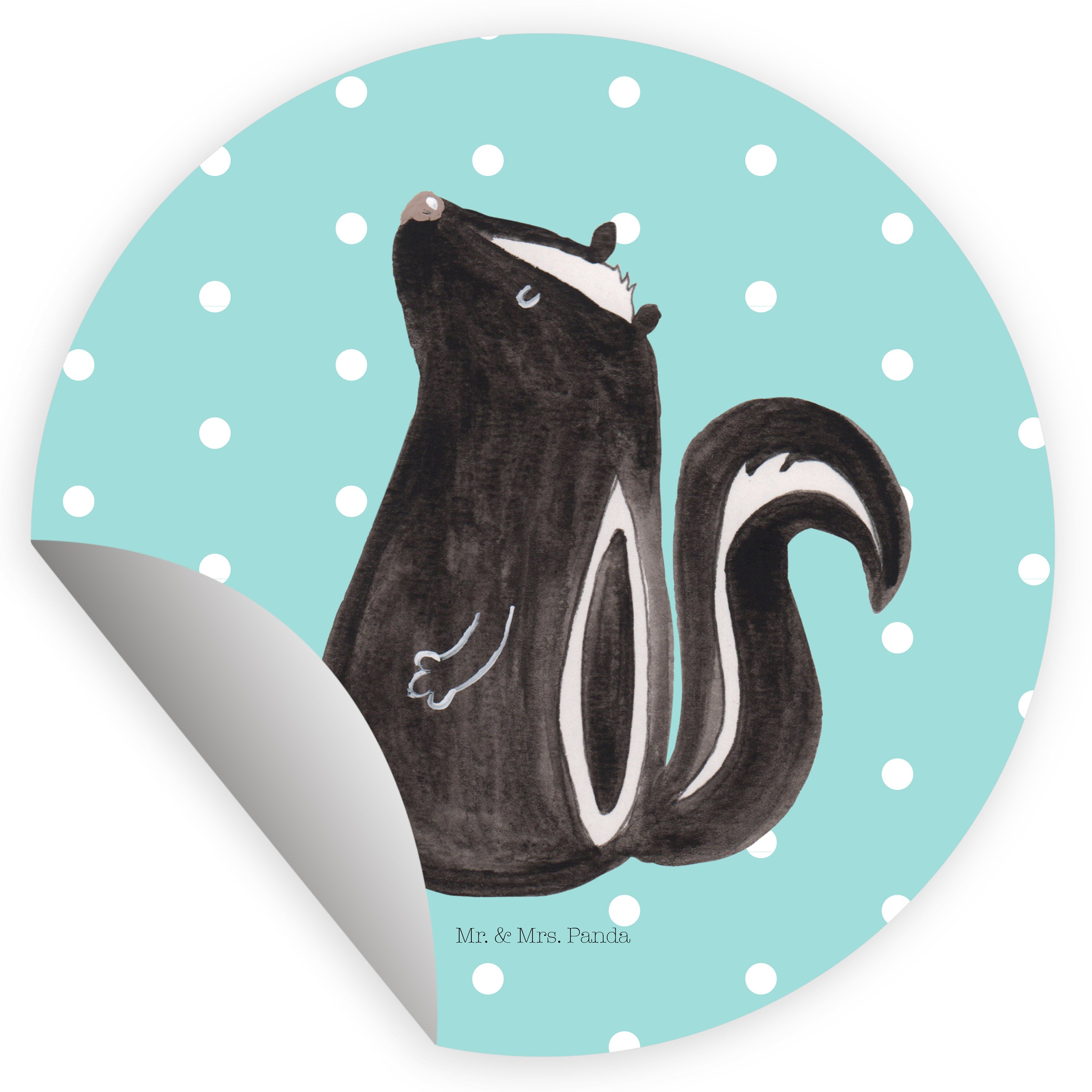 40mm Rund Aufkleber Stinktier sitzend - mit Spruch - Türkis Pastell